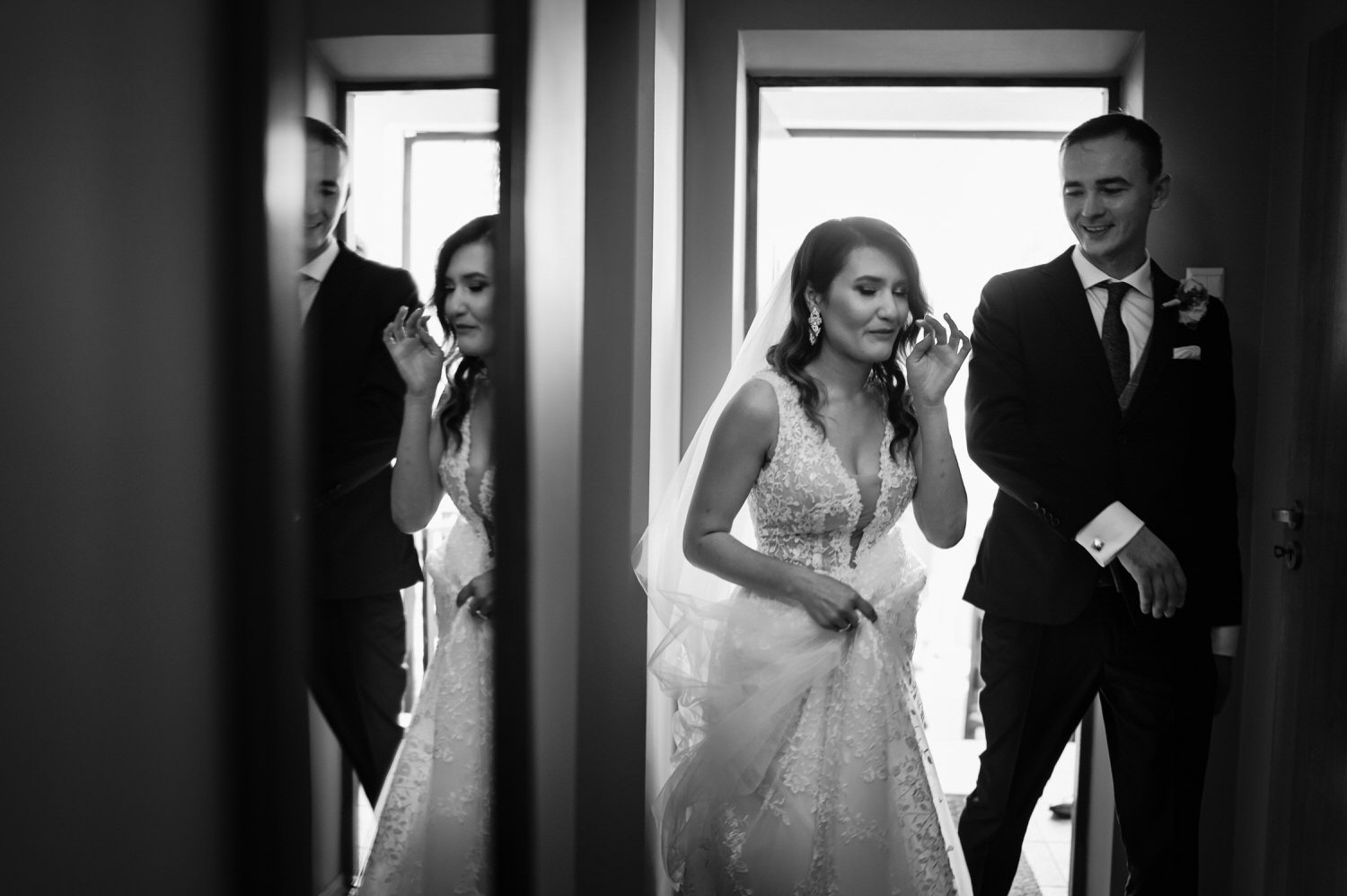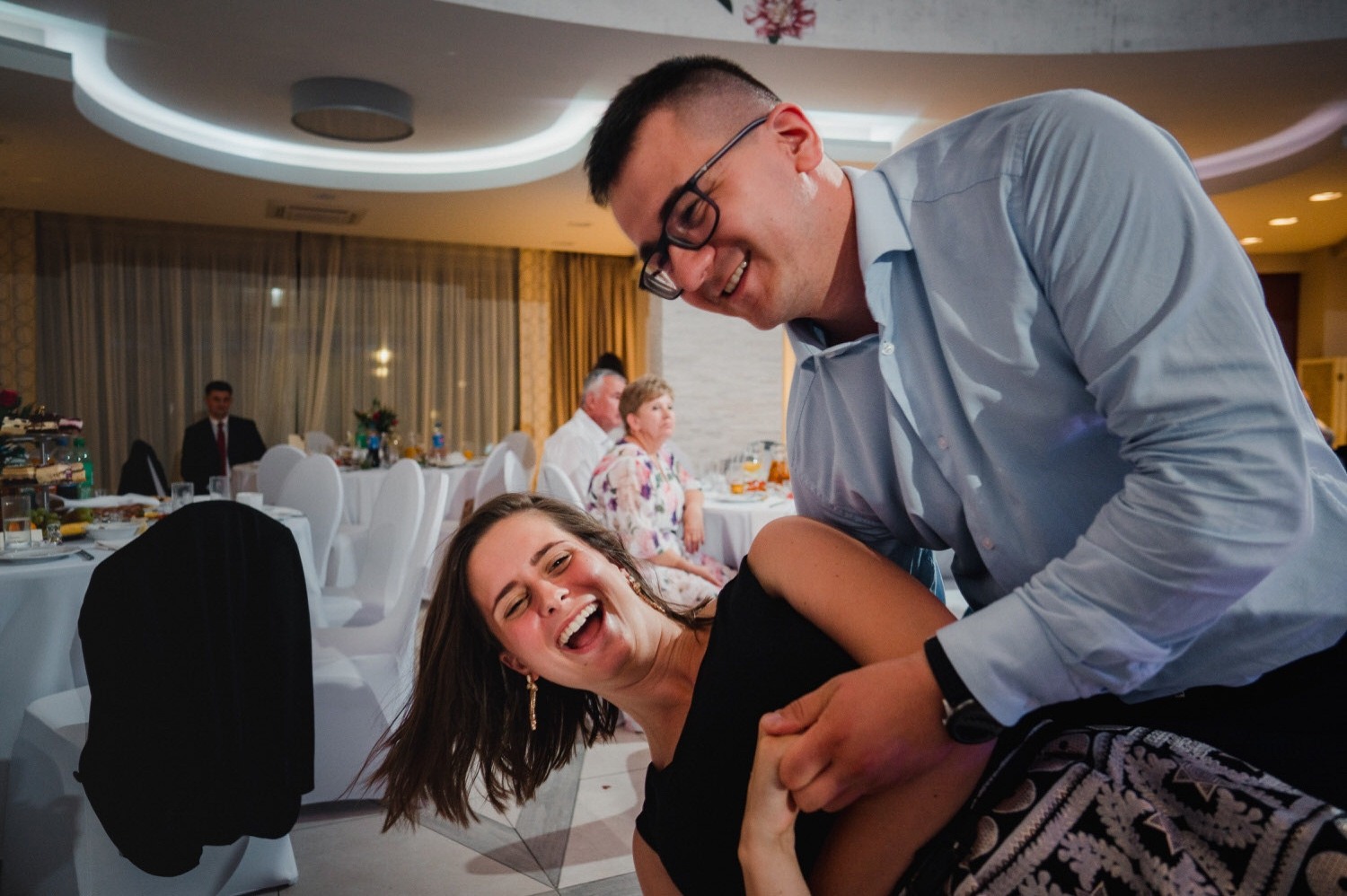 Czy można sobie wyobrazić imiona bardziej pasujące do siebie niż Kamila i Kamil? Nie wydaje mie się :) W tym wypadku równie ciężko znaleźć lepiej dobraną parę niż główni bohaterowie tego wpisu. Kamila jest jedną z tych osób od których miałem najbardziej pozytywny feedback po każdej publikacji. Chwaliła, że fajny fotograf, ciekawe zdjęcia itp. (nie przesadzam!). Niestety jak zapytała o termin swojego ślubu miałem już zajęte. Szczęśliwym trafem termin się zwolnił, Kamila zobaczyła na mój post na fb i nie wahała się ani chwilę żebym to ja uwiecznił jeden z najważniejszych dni w ich życiu. Zaufała w 100% i dała pełną swobodę. Czy można sobie wyobrazić (tak, wiem powtarzam się) lepszy początek? Jeśli jesteśmy przy początku to dzień wesela rozpocząłem od wizyty w domu Kamila. A tam makijaże (nie Kamila!), rozmowy, bieganina, szukanie (nieudane), a później drukowanie i wycinanie winietek. Czyli chaos, który bardzo lubię. Krótkie ubieranie i Kamil "zrobiony" na bóstwo. Następnie w drogę do Kamili. Napisać, że mieszka na końcu krętej drogi to... niedopisać. Dodajcie do tego jeszcze budowę obwodnicy i macie gotową mapkę dojazdu. Na miejscu napotkałem uśmiechniętą Kamilę, rodziców, babcię, dzieciaki i cały zwierzyniec (żyć jak pies z kotem nabrało dla mnie innego znaczenia). Miałem co robić. Mnóstwo rozmów, śmiechów, biegania i wraz z przyjazdem Kamila zaczęła się moc wzruszeń Kamil. Zarówno przy first looku, jak i błogosławieństwie. Jeszcze tylko kilka rodzinnych zdjęć i przyszedł czas na najważniejszy punkt tego dnia czyli ceremonię, która odbyła się w parafii Miłosierdzia Bożego w Kraśniku. Tam sporo dzieciaków, spojrzeń, gestów, miejscami ciekawe, ostre światło. Zacne warunki! Gpsy wylądowały na palcach, mnóstwo życzeń i w drogę na imprezę, która odbyła się w Rezydencja Sosnowa w Janowie Lubelskim (polecam!), a o dobrą imprezę zadbał Zespół Eventis (polecam!). Państwo młodzi zamiast samochodu wybrali chyba teleport. Jak tylko zajechałem na miejsce to oni już rzucali kieliszkami. Na szczęście udało się to uchwycić (uff). Jak była impreza? Naszpikowana atrakcjami! Było wszystko, łącznie z fajerwerkami! Zobaczcie zresztą sami! Miłego oglądania!