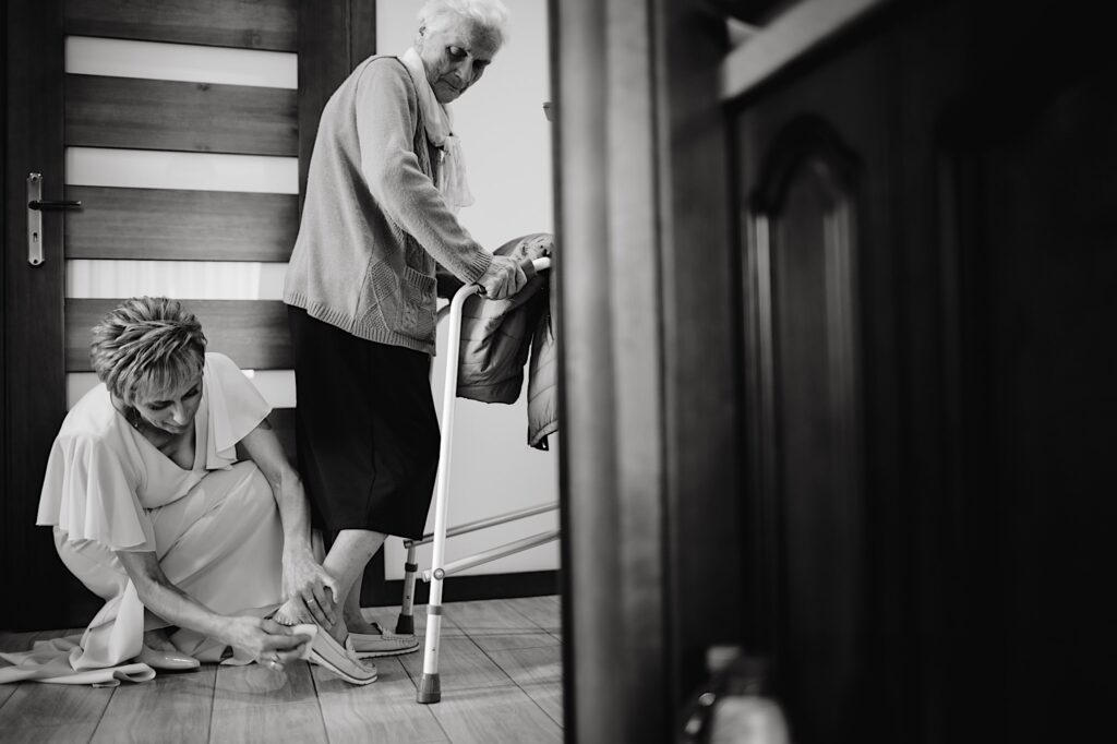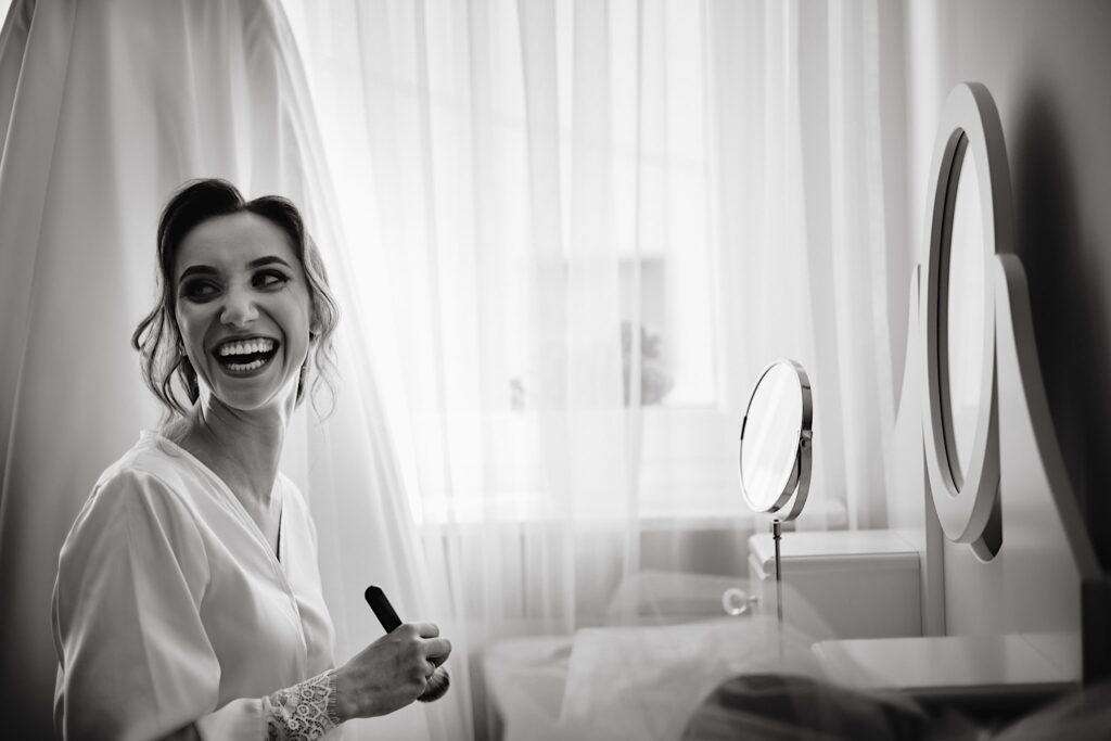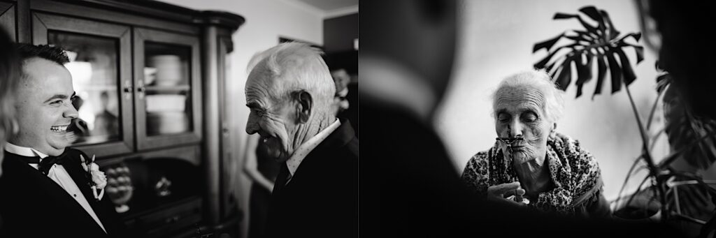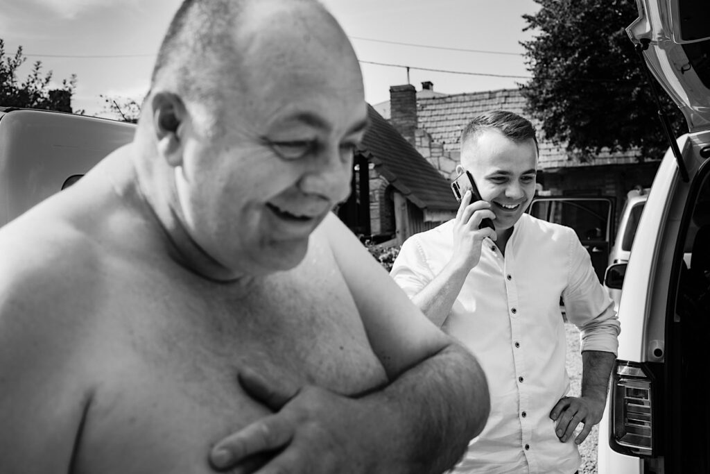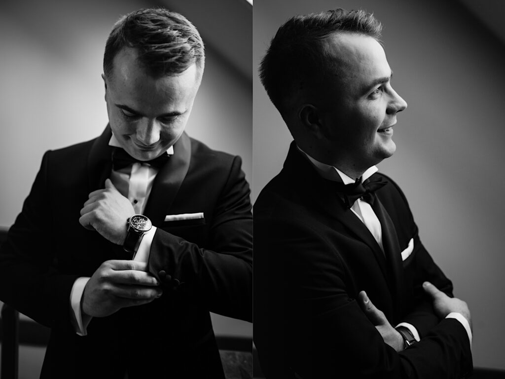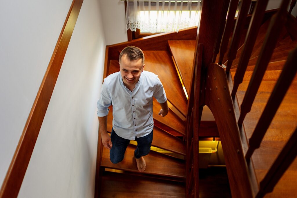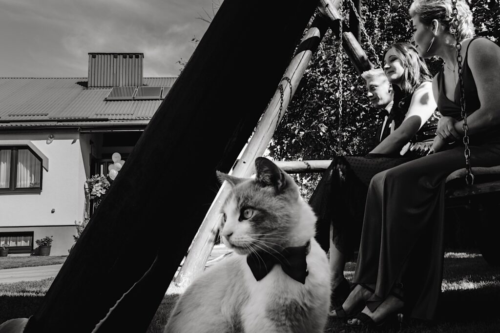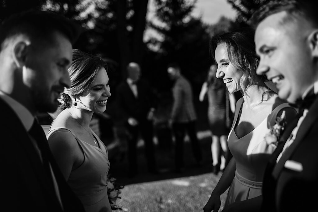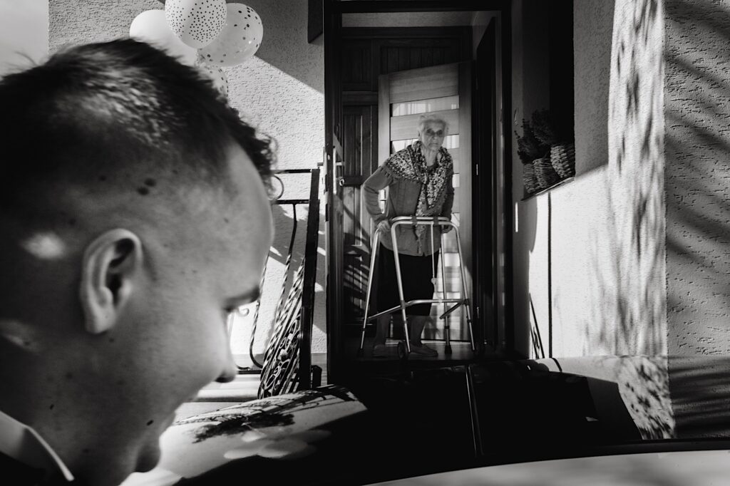 Dzień ślubu rozpocząłem razem z zaprzyjaźnioną ekipą BM Studio w posiadłości państwa Mazurów. Na miejscu więcej drewna niż w niejednym tartaku. Ba! Nawet w lesie bywa mniej 🙂 Na szczęście mam na myśli to prawdziwe! Jeśli chodzi o ludzi, to zero “drewna”. Wszyscy mega uśmiechnięci i ekspresyjni. Oczywiście najpierw usłyszałem, a dopiero później zobaczyłem Pana Młodego. Trochę żartów, oglądanie pojazdu rodem z ghostridera, lekkie kosztowanie dobrych trunków, krótkie ubieranie, kilka portretów i w drogę do Agaty. Przywitała nas oczywiście… uśmiechem od ucha do ucha. Jaka Agata, taka rodzinka. Od przeuroczej Babci po wnuki – wszyscy uśmiechnięci. Nawet pająki były w dobrym humorze. Ganianie za kotem, papierosek z Dziadziem, kilka toastów, szybkie ubieranko, portrety i przybył Mateusz, z całą bandą! Targowania zdawać by się nie było końca. Ale jak już skończyli to nasi zakochańce mogli wpaść w swoje ramiona. Błogosławieństwo, sesja rodzinna i czas na ceremonię, która odbyła się w Parafii pw. App Piotra i Pawła w Tarnawatce.