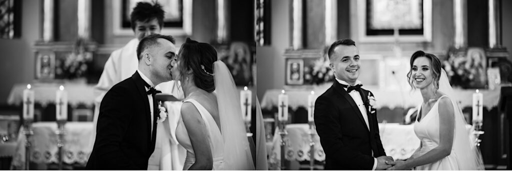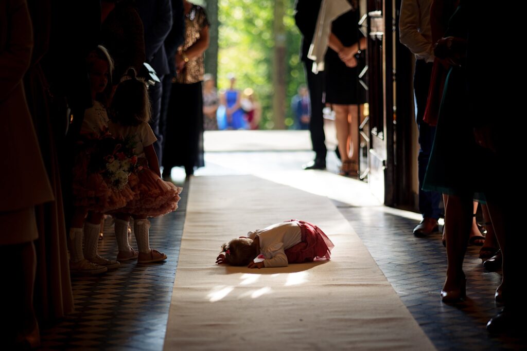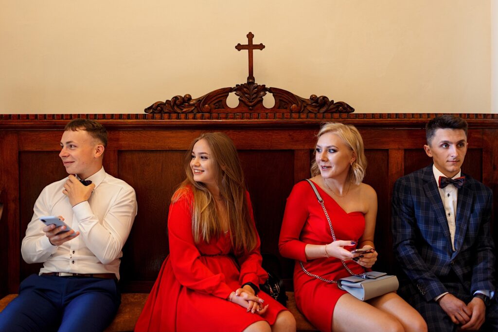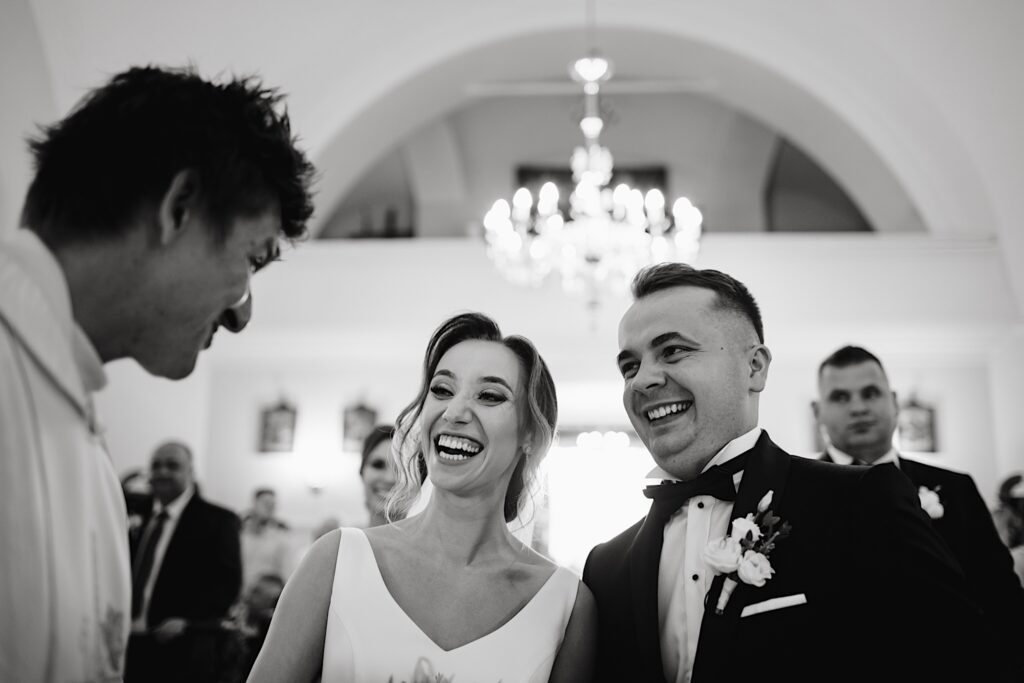 Wycieczki dzieciaków pod ołtarz, świetne kazanie zaprzyjaźnionego księdza, przewracanie lampionów, łzy wzruszenia, leżakowanie na środku kościoła, emocjonalna przysięga… jeszcze tylko selfiaczki z… księdzem, wystrzały, życzenia i czas na imprezę!