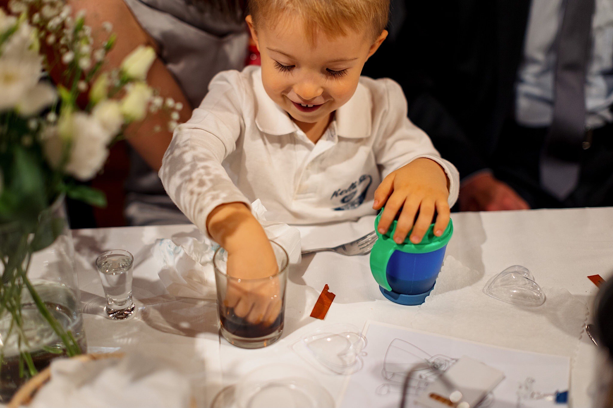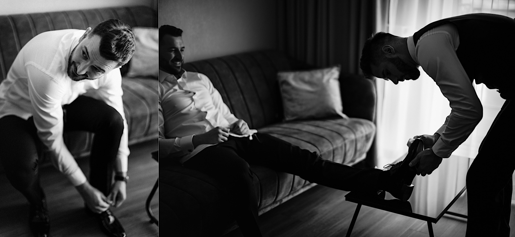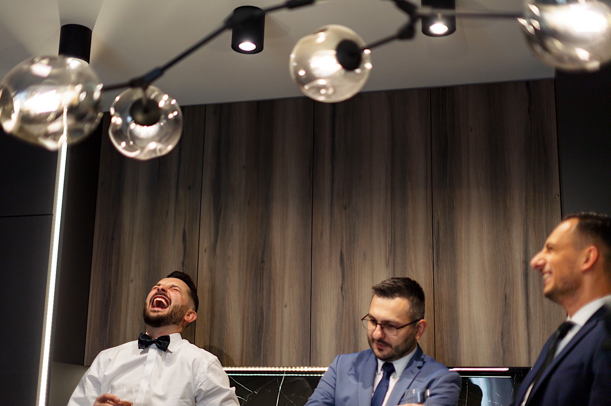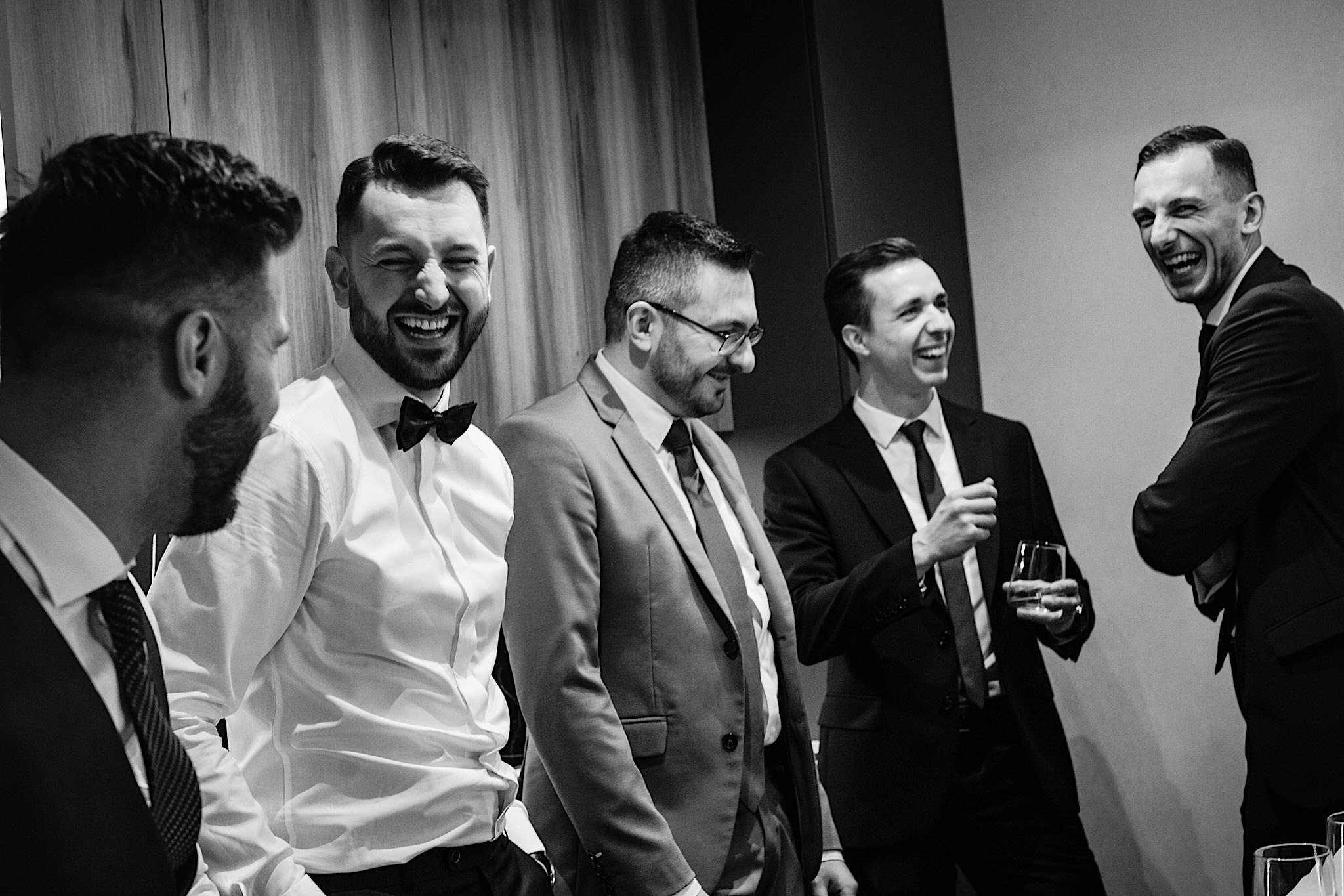 Dzień wesela rozpocząłem od podróży do Rzeszowa. Tam wysoko, wysoko w chmurach czekał na mnie Mariusz. To zapewne symbolizowało jego niebiański nastrój tego dnia. Krótkie czesanie i zaczęli się zjeżdżać kumple. Mnóstwo żartów, testy szwów w spodniach, przeglądanie się w bucie, wojna na megapixele, kilka drinków, wspominanie kawalerskiego, oficjalnie ubieranie butów i przyszedł czas na wizytę u Gosi. Na wstępie przywitały mnie…koty i jeszcze więcej Druhen. Wszystkie uśmiechnięte i rozbiegane. Sporo żartów, słuchania piosenek z panieńskiego, przenoszenia sukni z kąta w kąt, malowanie, ratowanie opasek, robienie nowego bukietu, kilka toastów, szybkie ubieranie, portrety i przybył Mariusz z bandą. Weszli z buta (dosłownie!). Uściski, całuski, błogosławieństwo, próba pierwszego tańca i czas na najważniejszy punkt tego dnia – Ceremonię.