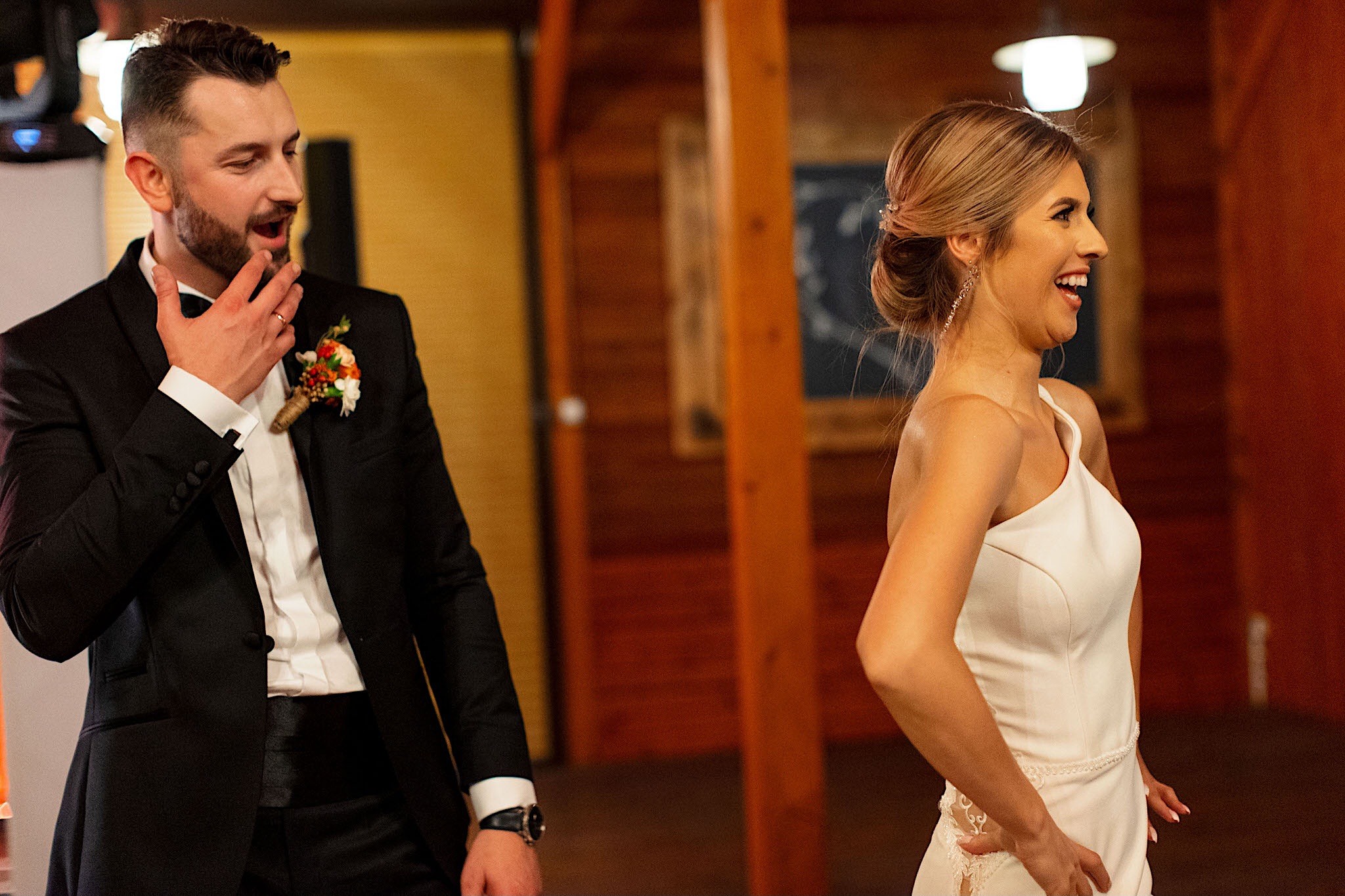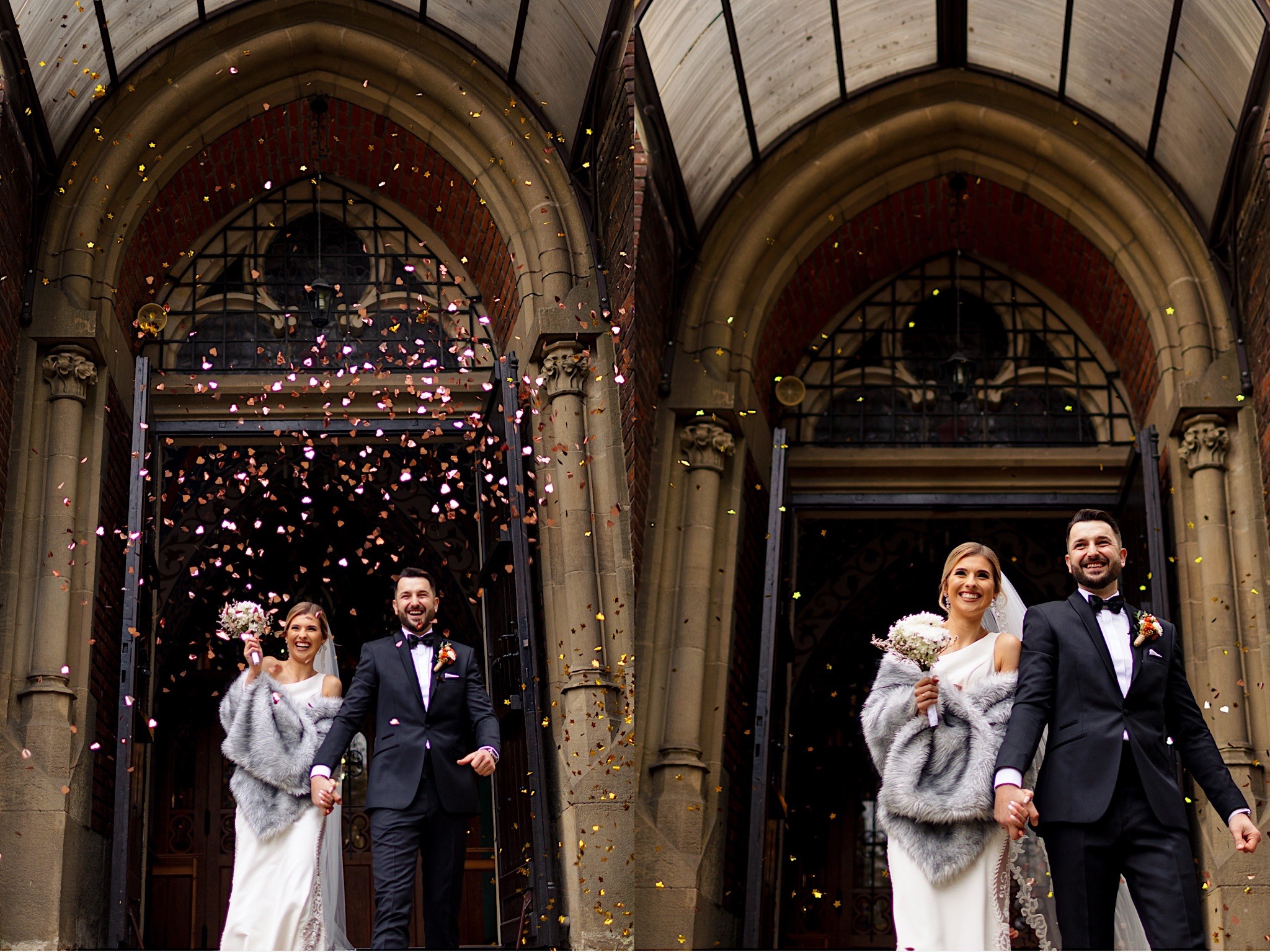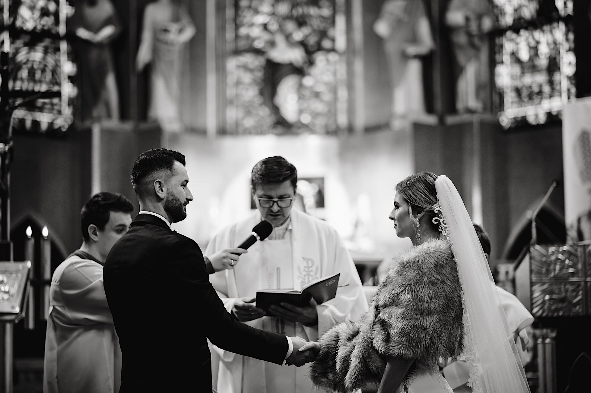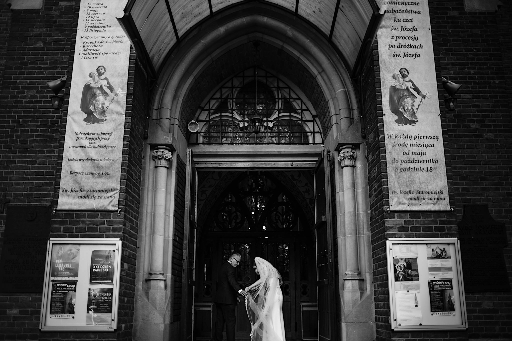 Ta odbyła się w Parafii św. Józefa w Rzeszowie. Spory przestrony kościół z ciekawą architekturą. A w środku mnóstwo uśmiechniętych twarzyczek. Na wstępie małe zamieszanie ze wstęgą, którą sam miałem okazję przeciąć 🙂 Msza skrojona na miarę naszych dzisiejszych bohaterów z wszechobecnymi emocjami i iście królewskim podaniu obrączek przez drużbę. Te wylądowały na właściwych paluszkach i po wystrzałach przyszedł czas na imprezę w Altanie Siwy Dym – Hotel Cztery Pory Roku.