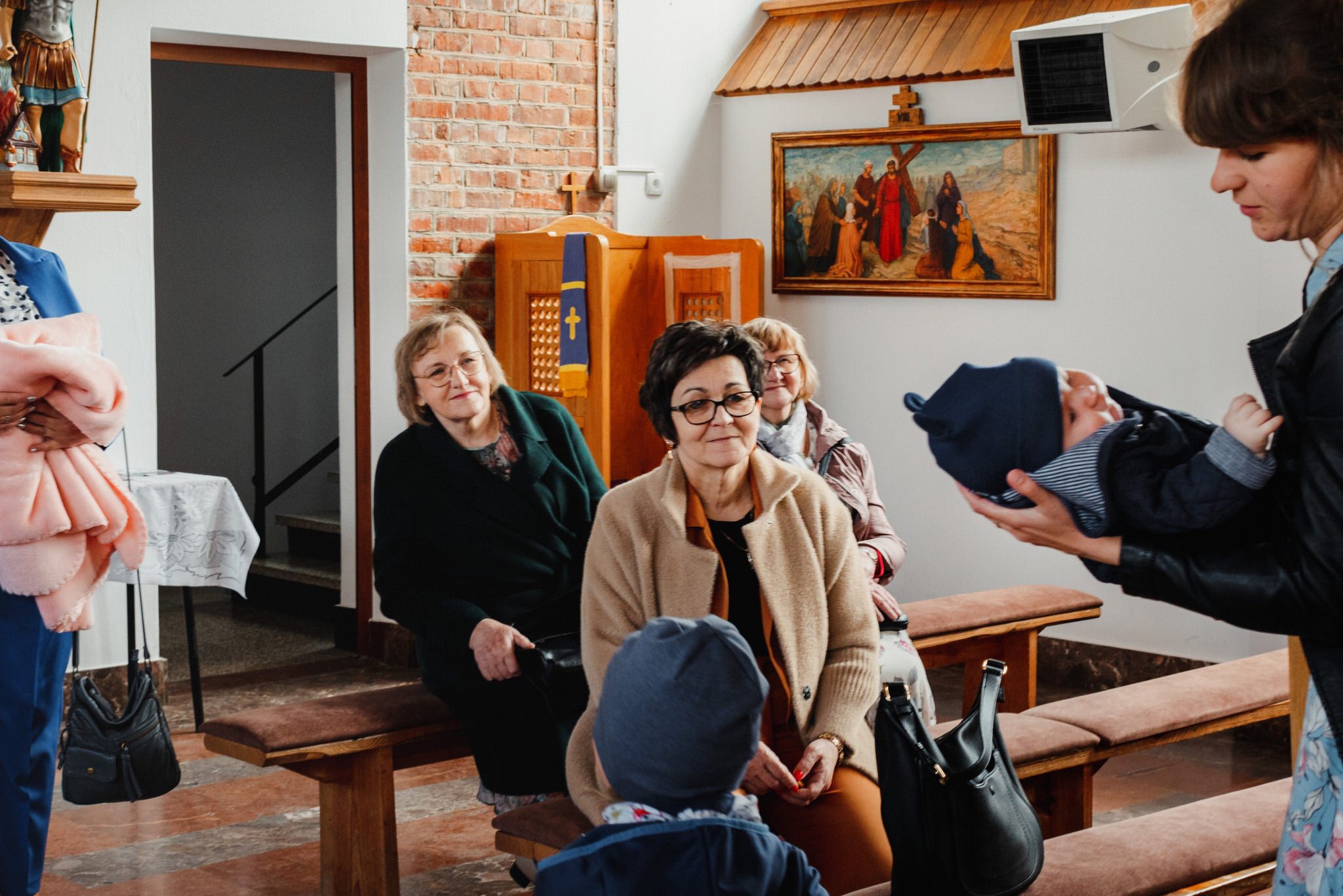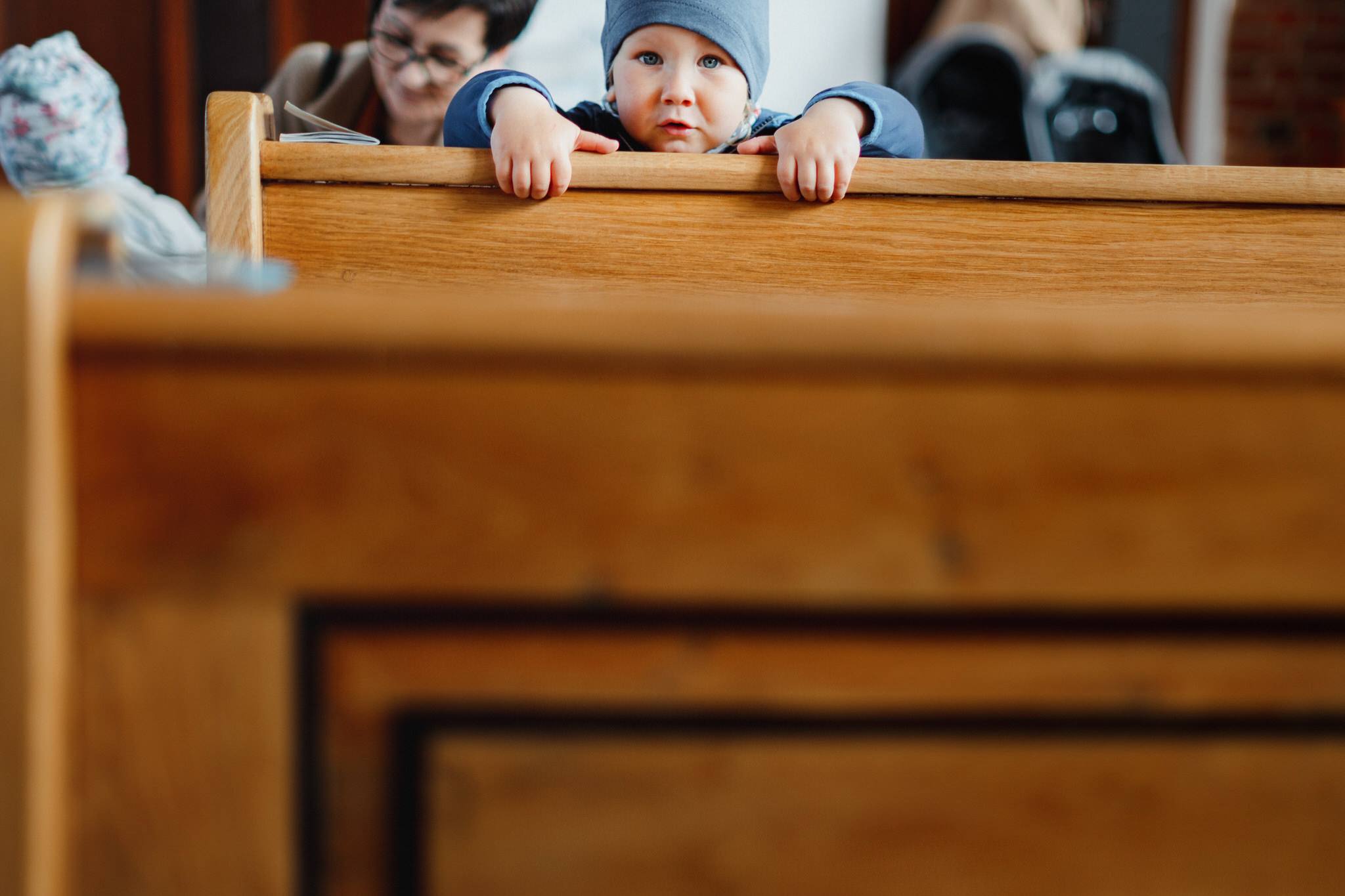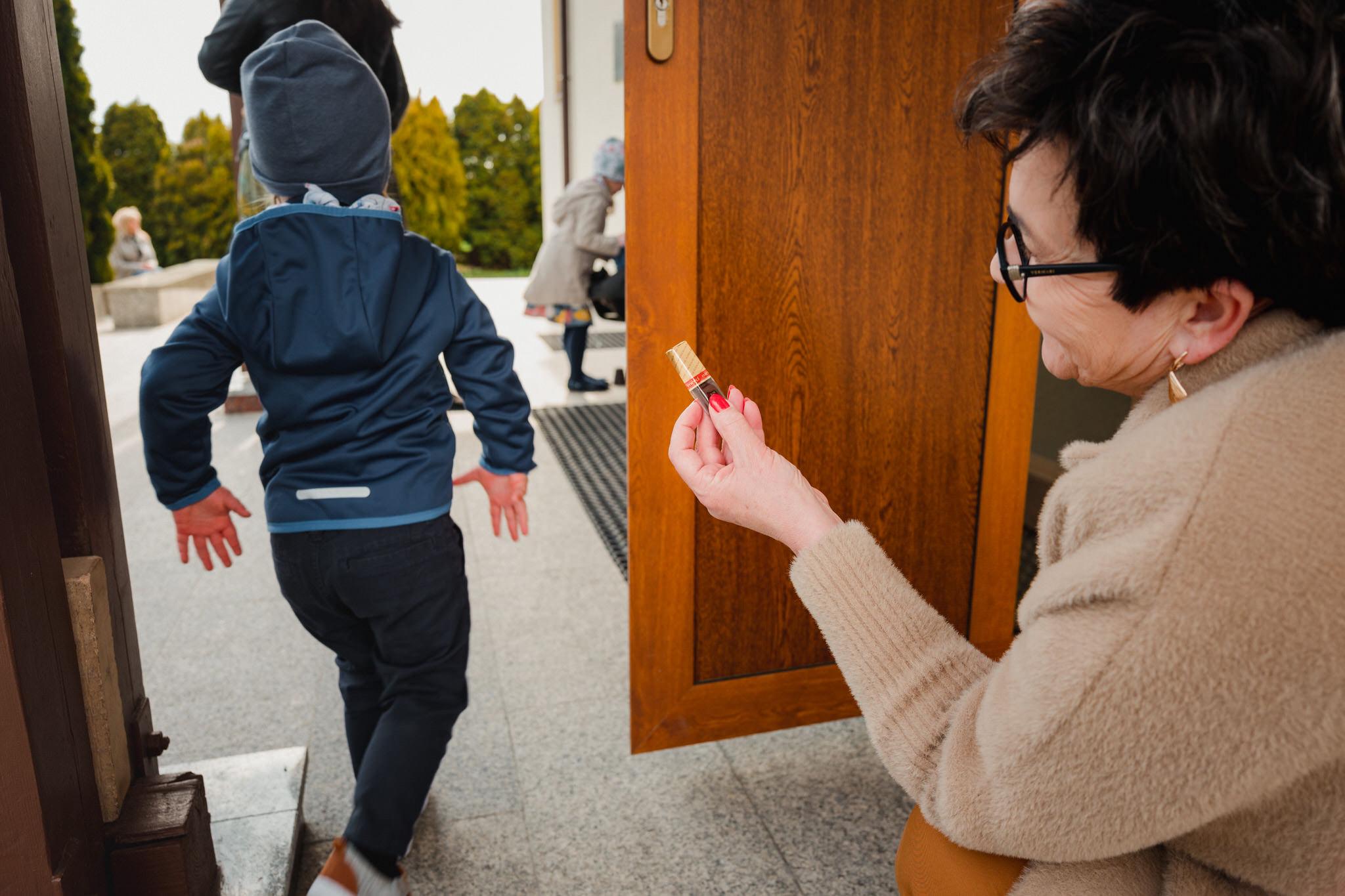 Po przygotowaniach przyszedł czas na ceremonię, która odbyła się w klimatycznym kościółku tuż obok. Tam również uśmiechy i dobry nastrój nie opuszczały tej rozśpiewanej rodzinki. Mały Henio przespał niemal całą mszę, a ruchliwością nadrabiało jego rodzeństwo.