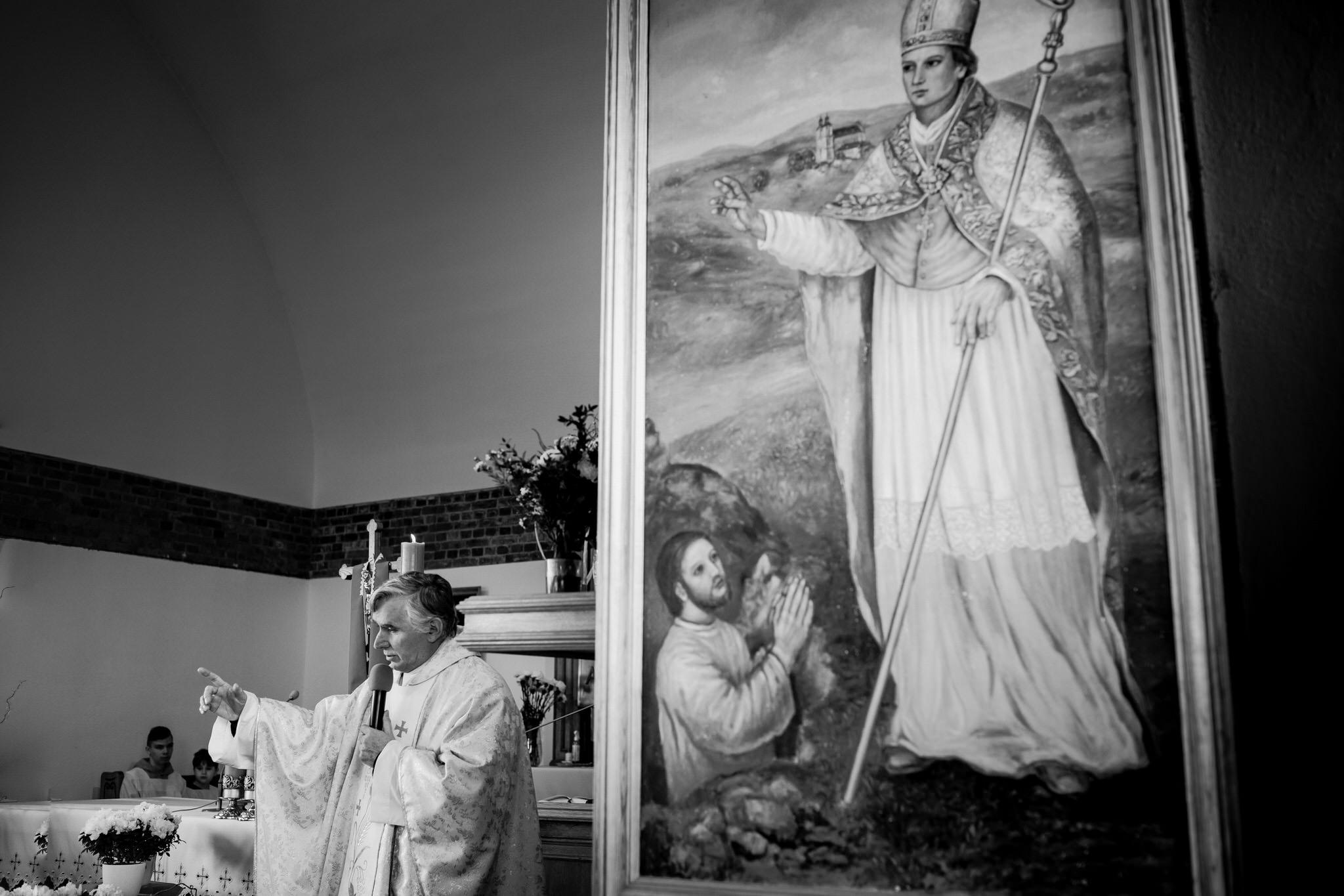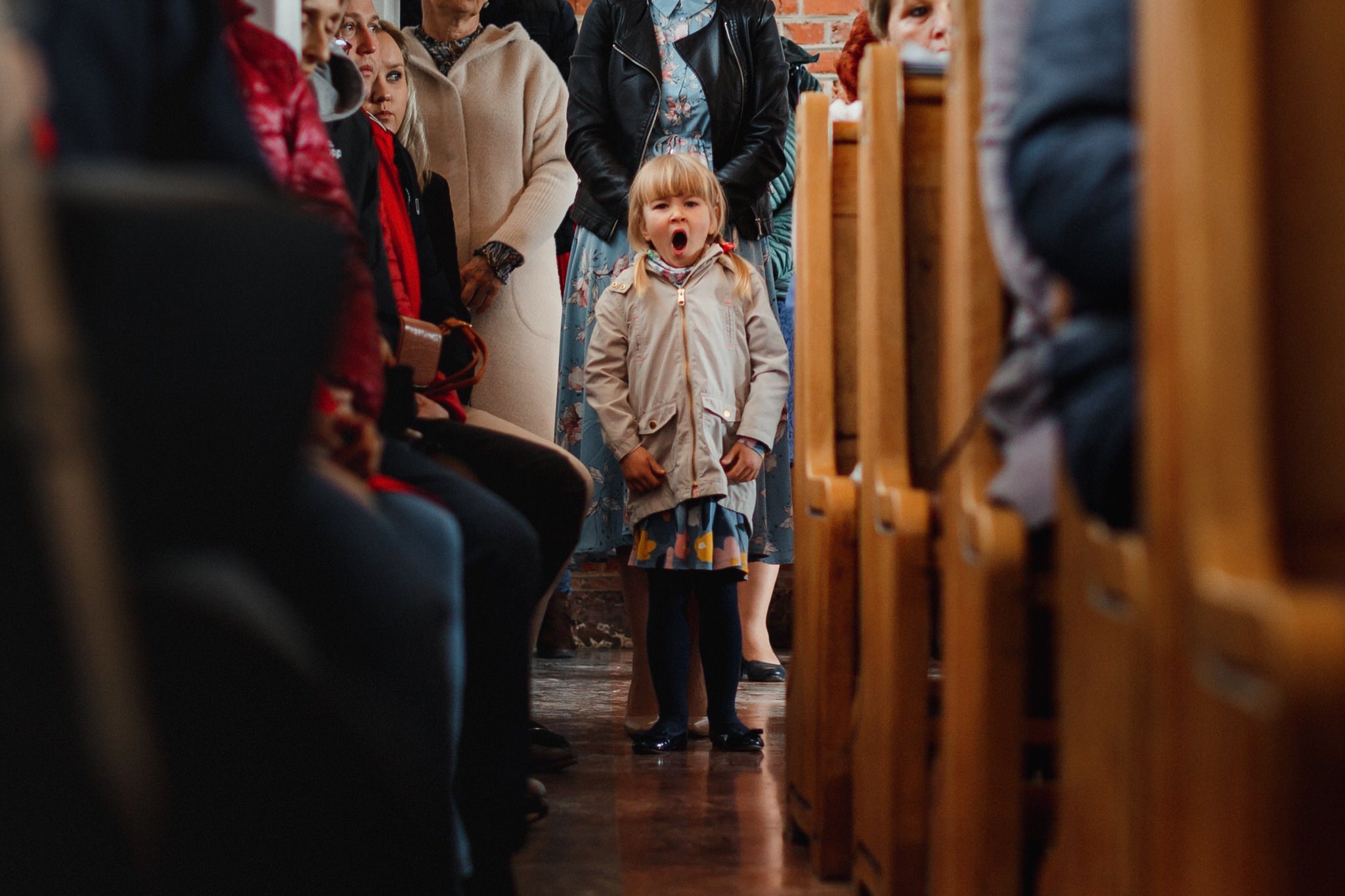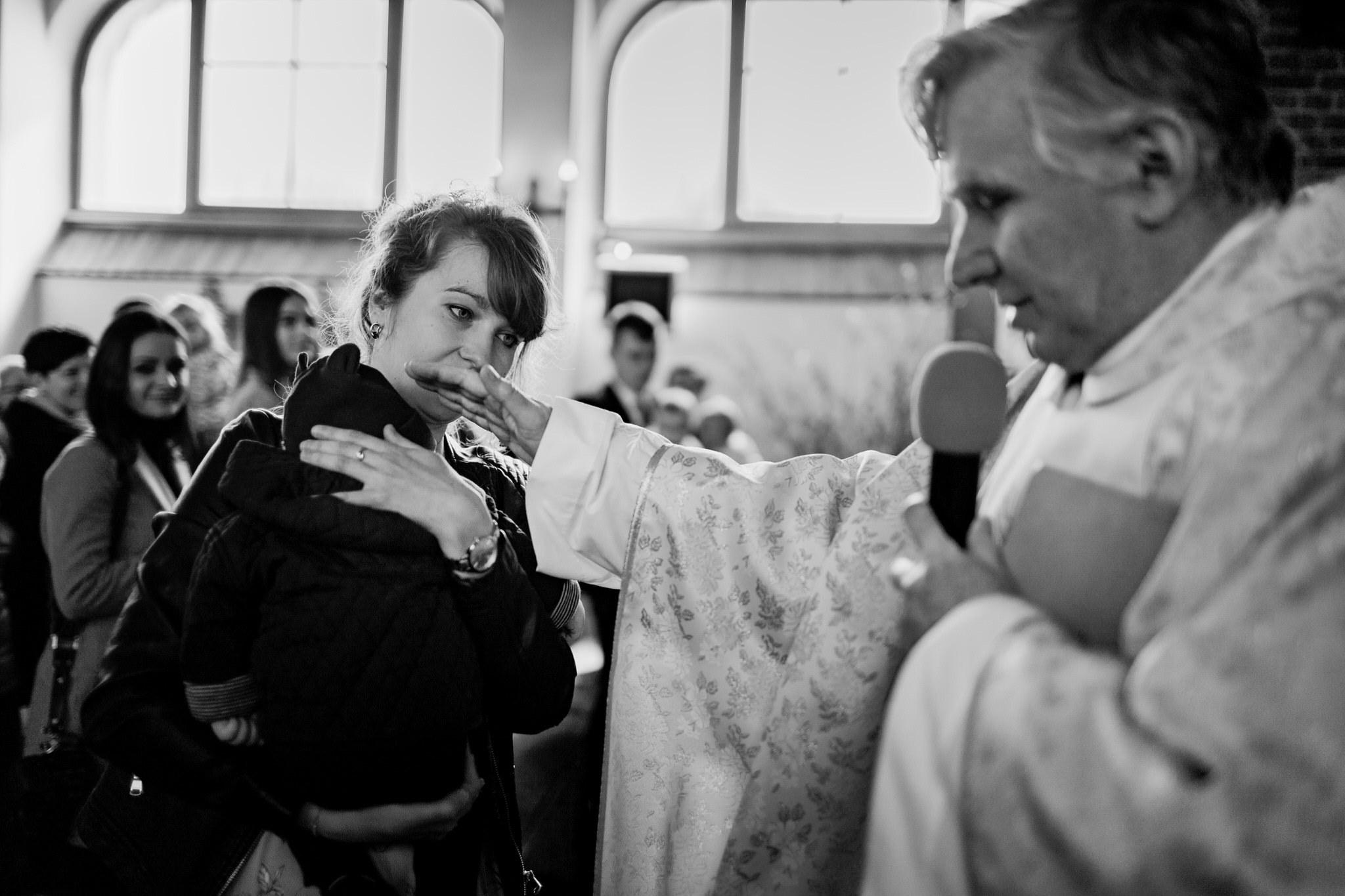 Po przygotowaniach przyszedł czas na ceremonię, która odbyła się w klimatycznym kościółku tuż obok. Tam również uśmiechy i dobry nastrój nie opuszczały tej rozśpiewanej rodzinki. Mały Henio przespał niemal całą mszę, a ruchliwością nadrabiało jego rodzeństwo.