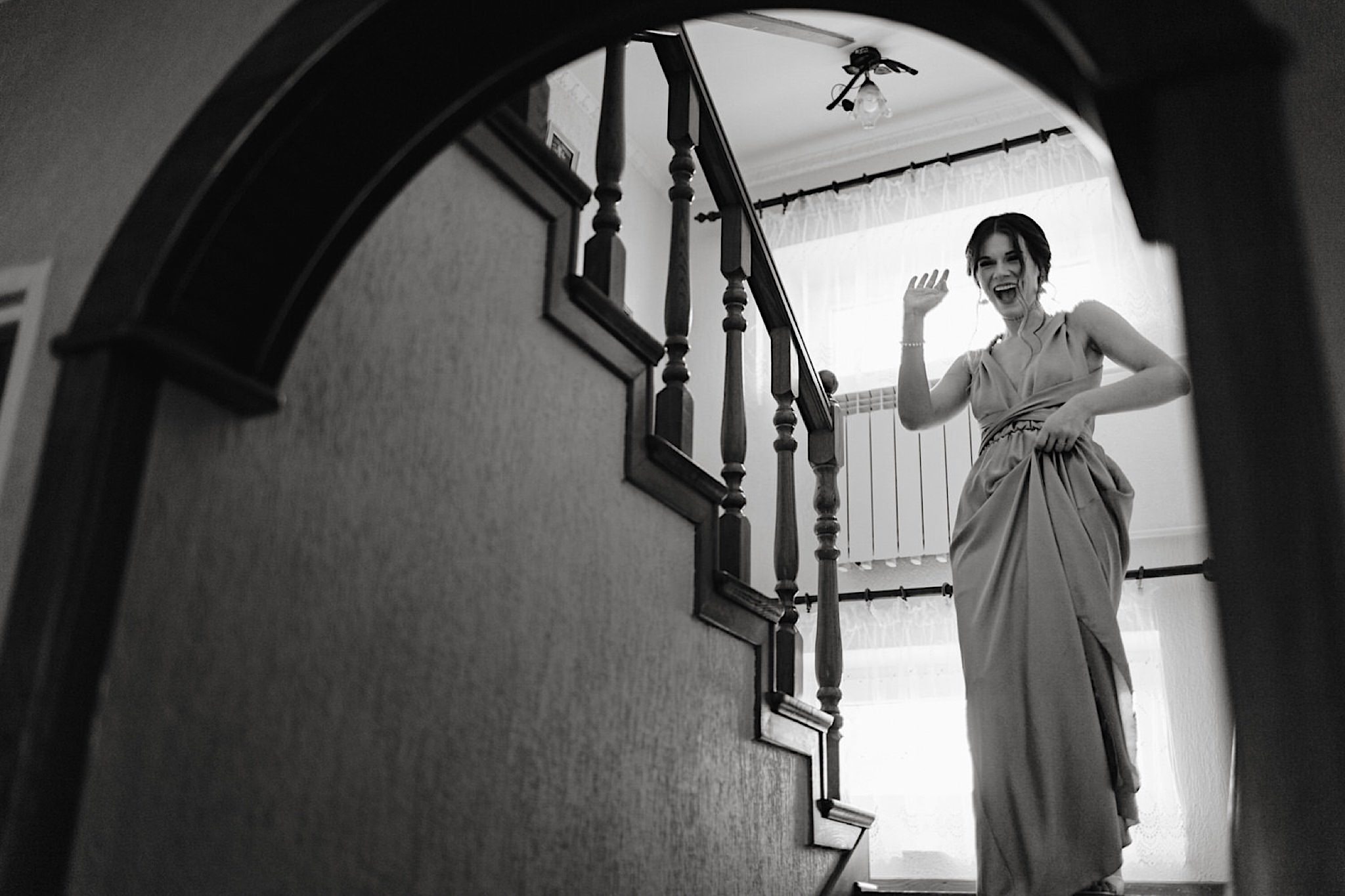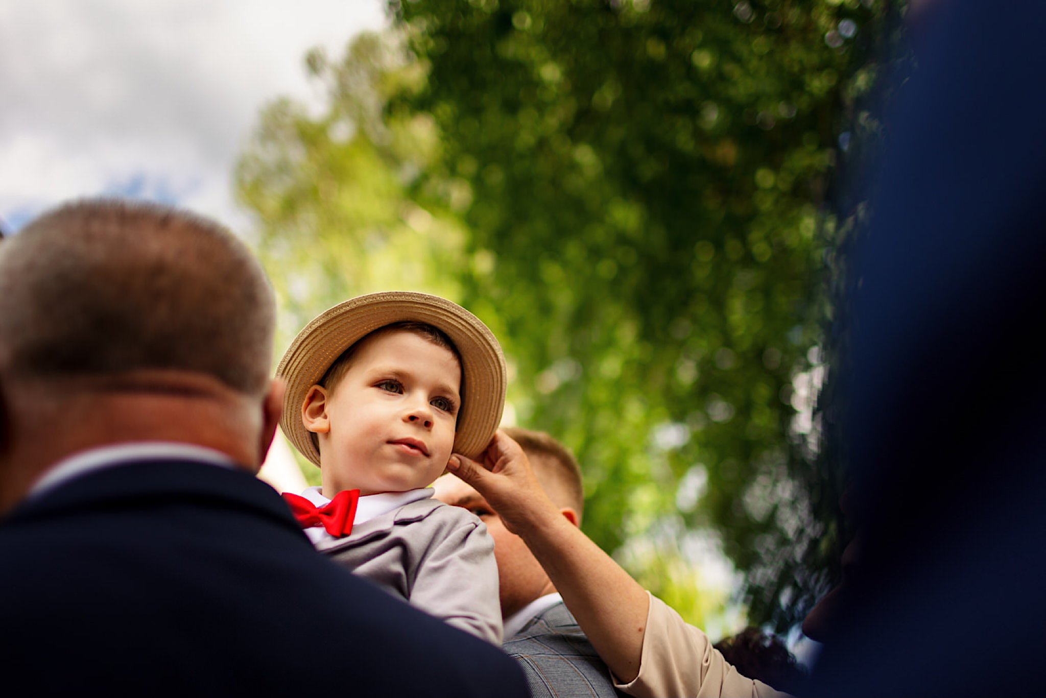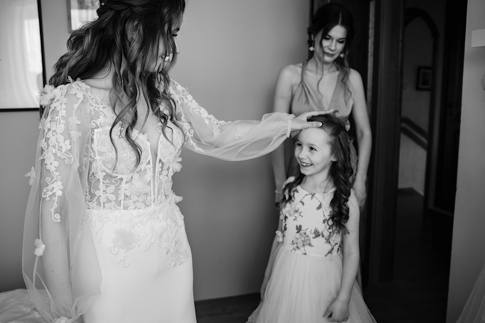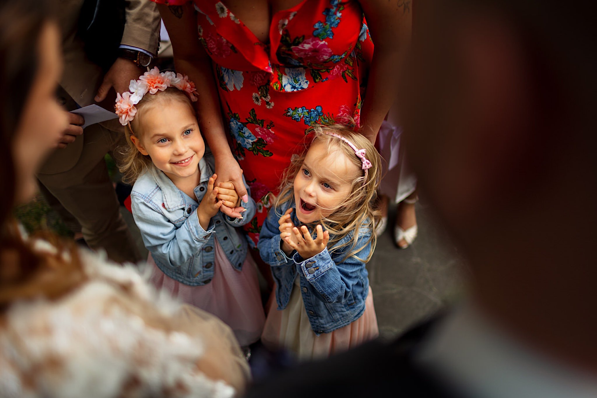 Panna Młoda chciała mieć wejście z przytupem i musieliśmy na nią troszkę poczekać. Na szczęście zadbała o to, abym się nie nudził i zostawiła dom pełen ludzi, uśmiechniętych ludzi 🙂 Jak już weszła to jak huragan, energii! A miała niemałą konkurencję bo wiało tego dnia okrutnie. Jedzenie kanapeczki, podziwianie sukni, wystrzały, spożywanie alkoholu, podziwianie nowego pierścionka zaręczynowego (tak, pierścionek Patrycja też zmieniła :)) tym razem była zmuszona bo pierwszy został zgnieciony ale było warto bo zrobił wielkie wrażenie), trochę krzaczkowych portretów, spacery na wietrze i przyjechał Kondzio. First Look z efektem wow! błogosławieństwo i czas na ceremonię.
