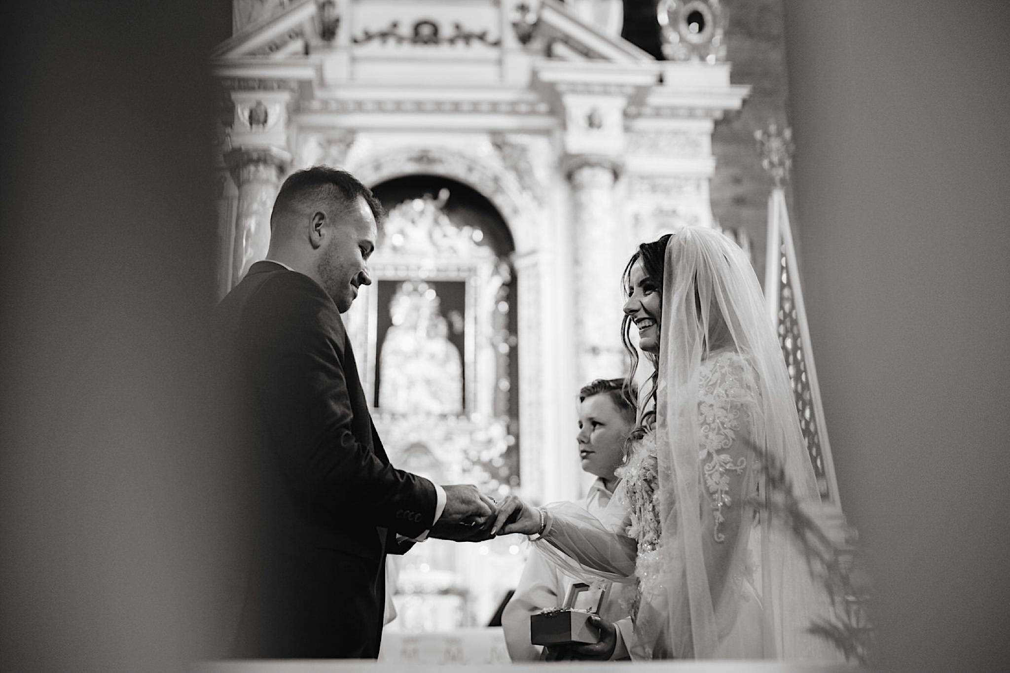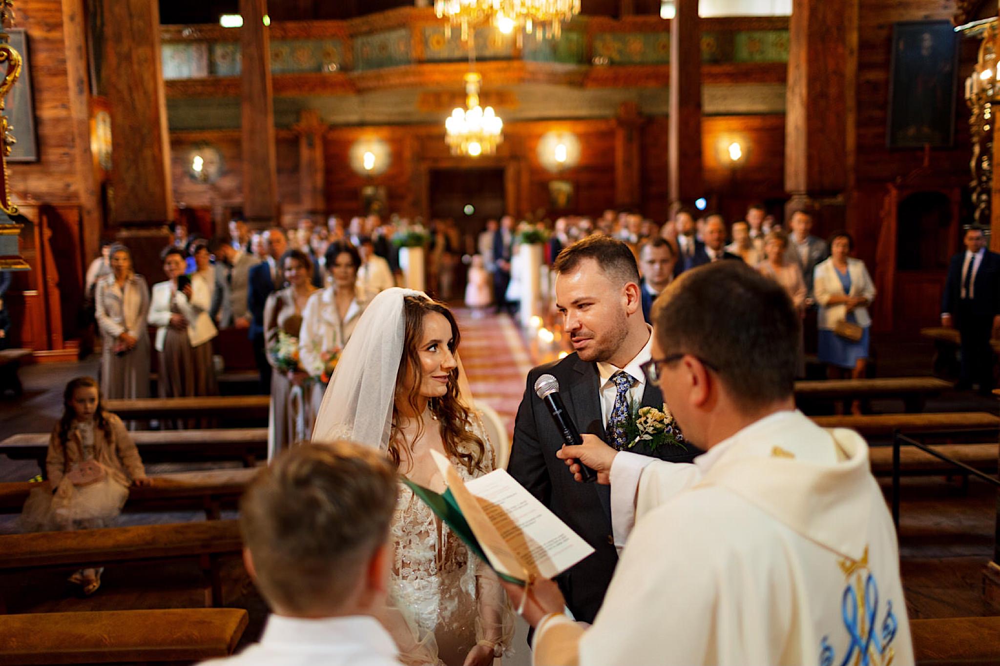 Która odbyła się w Parafii zwiastowania NMP w Tomaszowie Lubelskim. Pięknie udekorowanym przez “moją” pannę młodą – Rumieńce – sprawdźcie twórczość tej przezdolnej dziewczyny! A jaka była sama ceremonia? Oczywiście bardzo emocjonalna! Uśmiechy znikały z twarzy tylko na chwile wzruszenia:) Jeszcze tylko wystrzały, zdjęcie grupowe, życzenia i czas na IMPREZĘ!