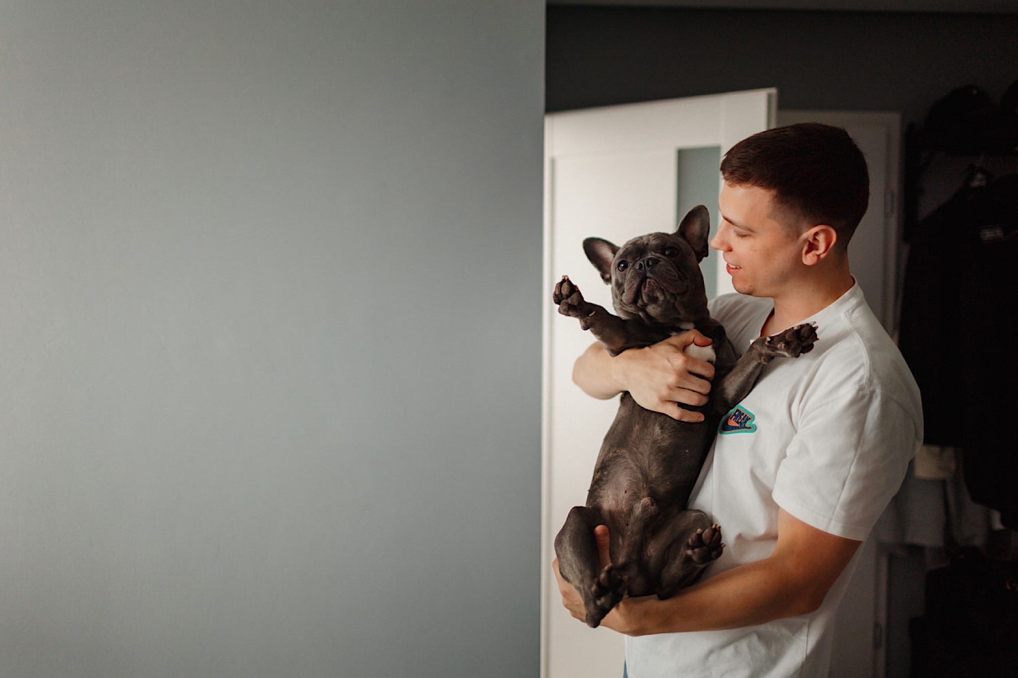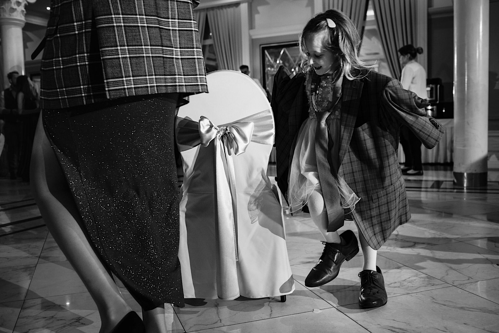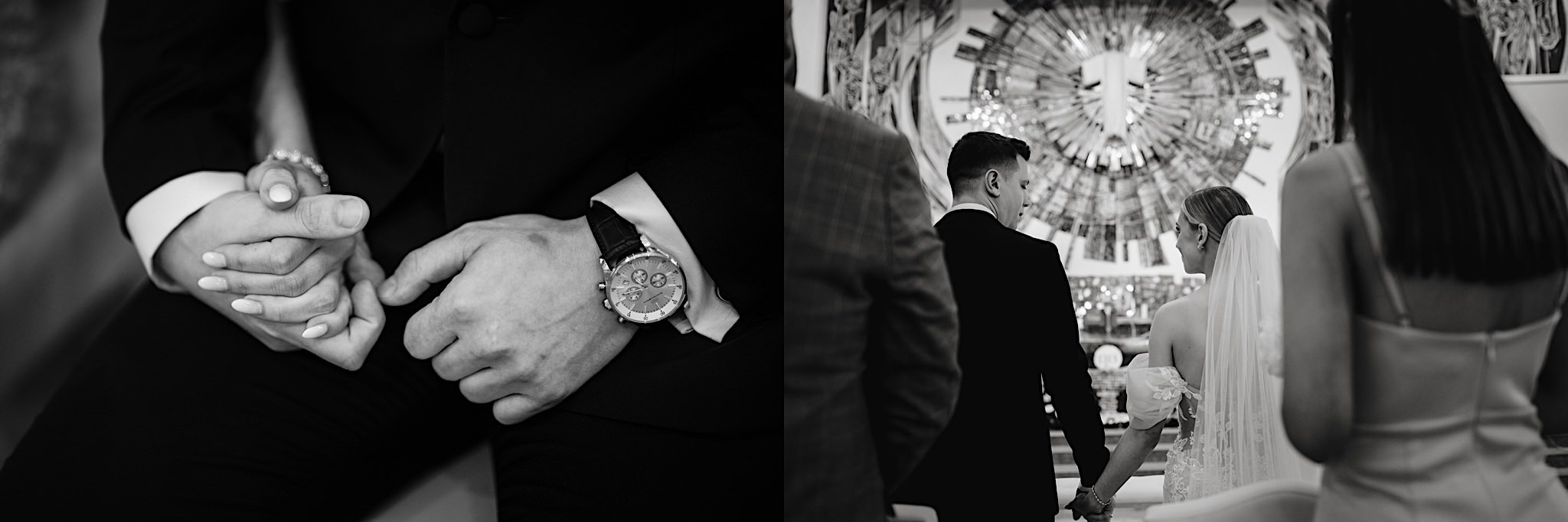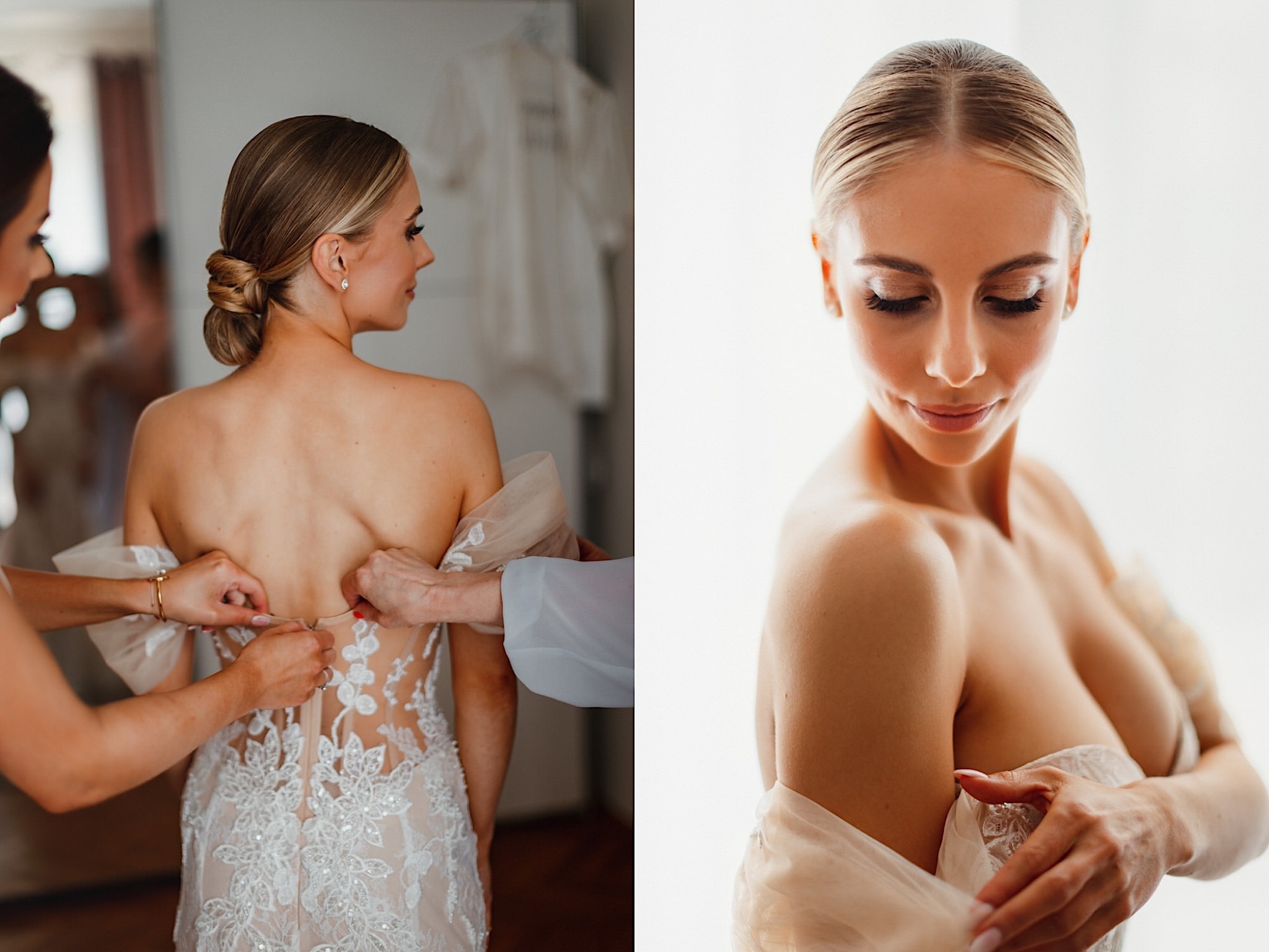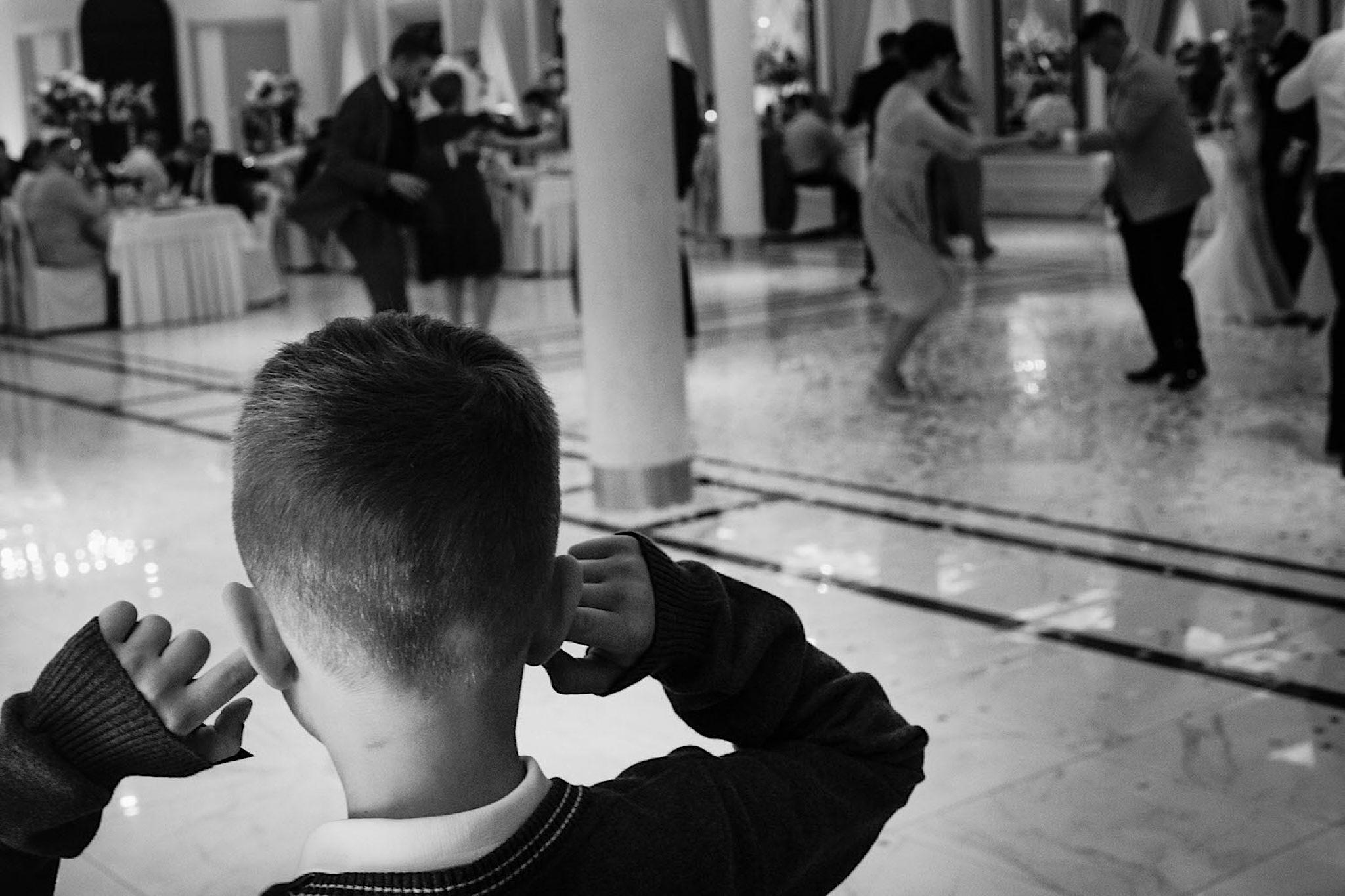 Dzień wesela rozpocząłem od przygotowań w mieszkaniu Pawła. Najbliższa rodzina z “synkiem” Dustinem na czele. Trochę wspominania starych, piłkarskich czasów, oglądanie kolekcji koszulek, prasowanko, latanie po schodach w tę i we w tę. Wszystko w luźnej i przyjaznej atmosferze. A o to żebyśmy mieli wystarczająco dużo czasu zadbał drużba, który się LEKKO spóźnił 😉 Jak już przyszedł to tak szybko ubierał Pana Młodego, że guzik w marynarce tego nie wytrzymał. Następnie przyszedł czas na wizytę w domu rodzinnym Natalii. Trzy pokolenia serdeczności i uśmiechu 🙂 Makijaż babci, historie z panieńskiego, małe problemy przy otwieraniu szampana, selfie dziewczyn z suknią w tle (szacun za kadrowanie!), konsumowanie szampejna, rapsy przy ubieraniu, kilka portretow i przyjechał Paweł. Chwile oczekiwania i przyszedł czas na jeden z najbardziej emocjonalnych first look’ow jakie widziałem (a było ich całkiem sporo). Mówią, że piłkarze to łobuzy, a wiadomo kto kocha najmocniej 🙂 Pawła na widok Natalii w sukni ślubnej rozwaliło całkowicie. Wzrusz totalny. Nie spokojniej było na błogosławieństwie.