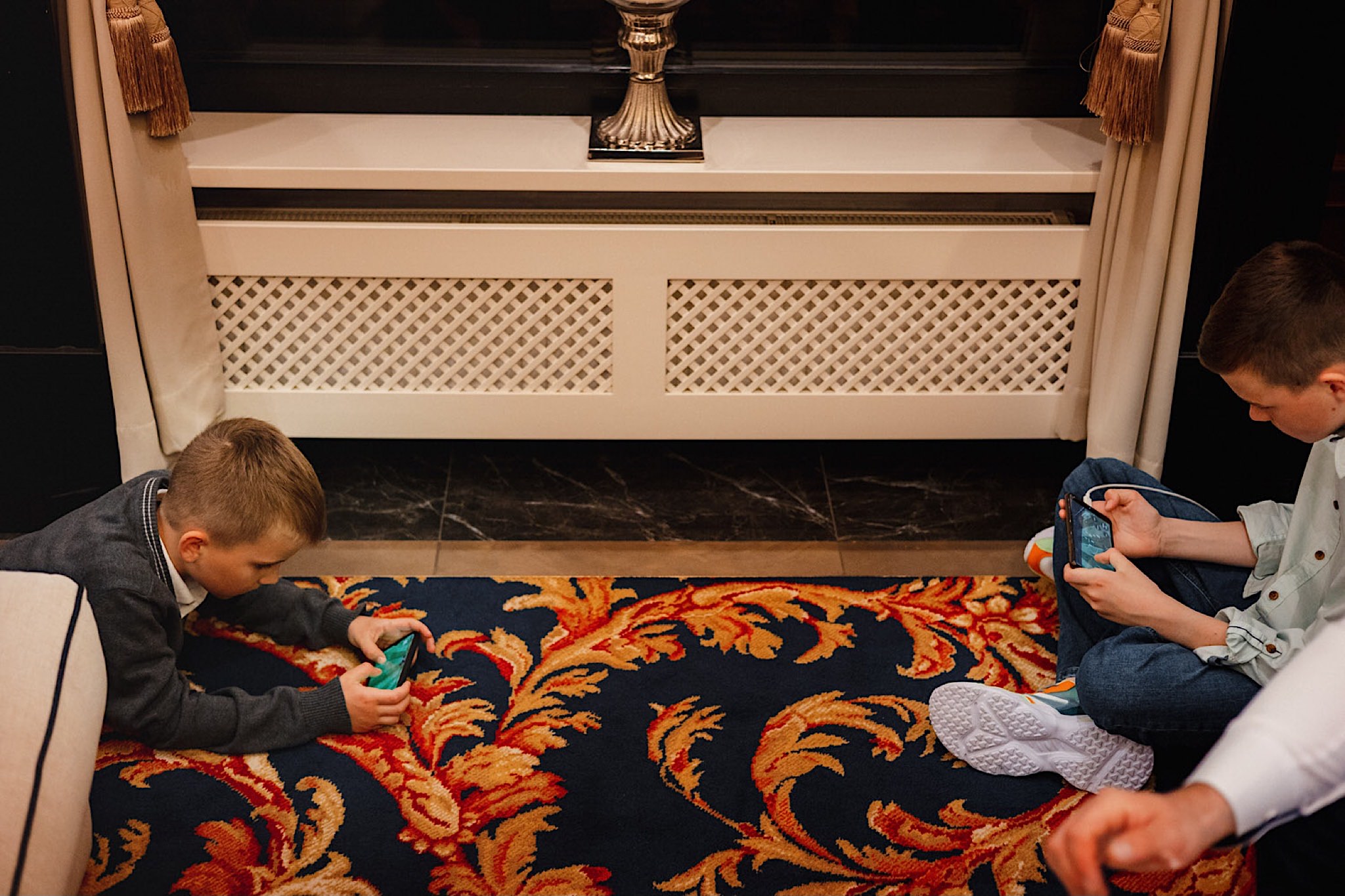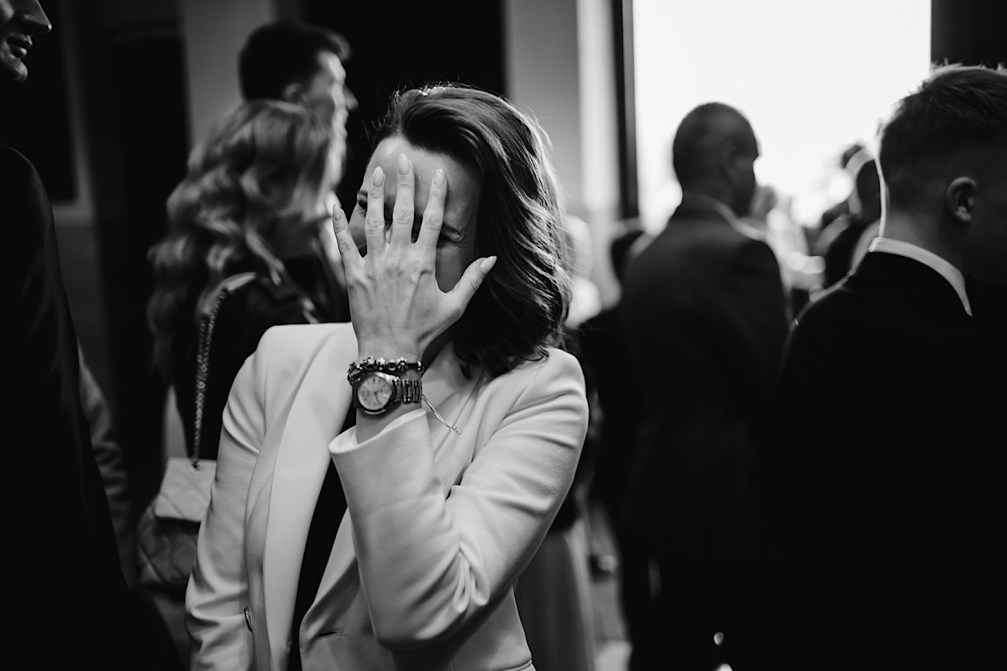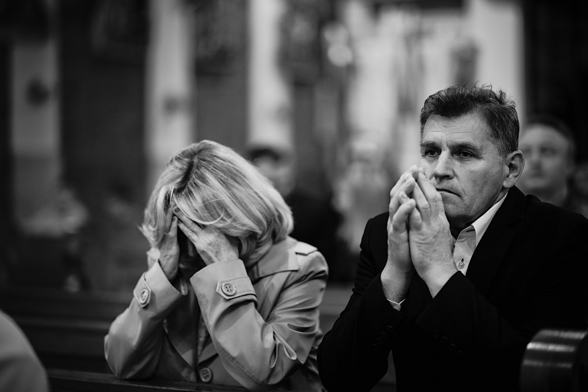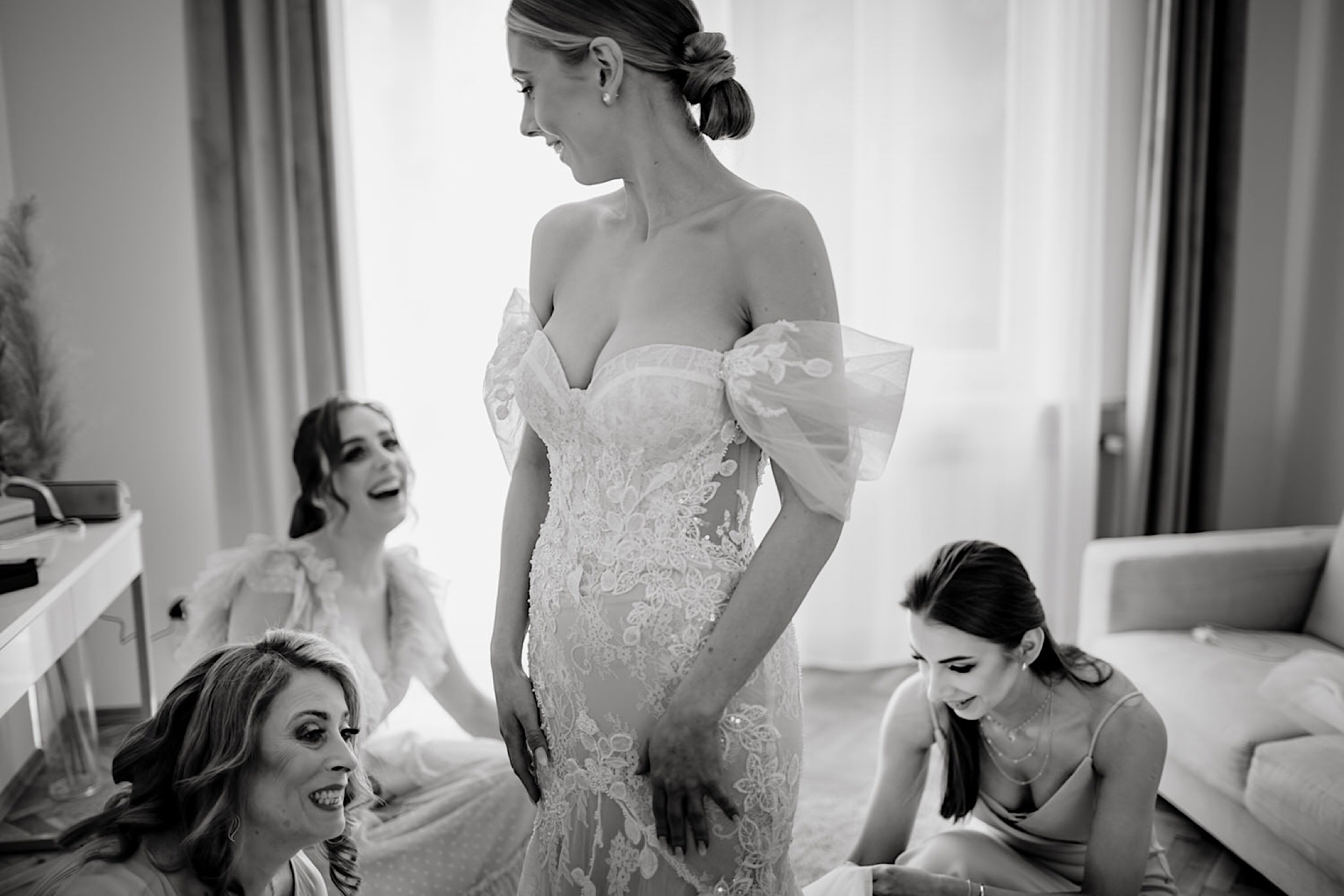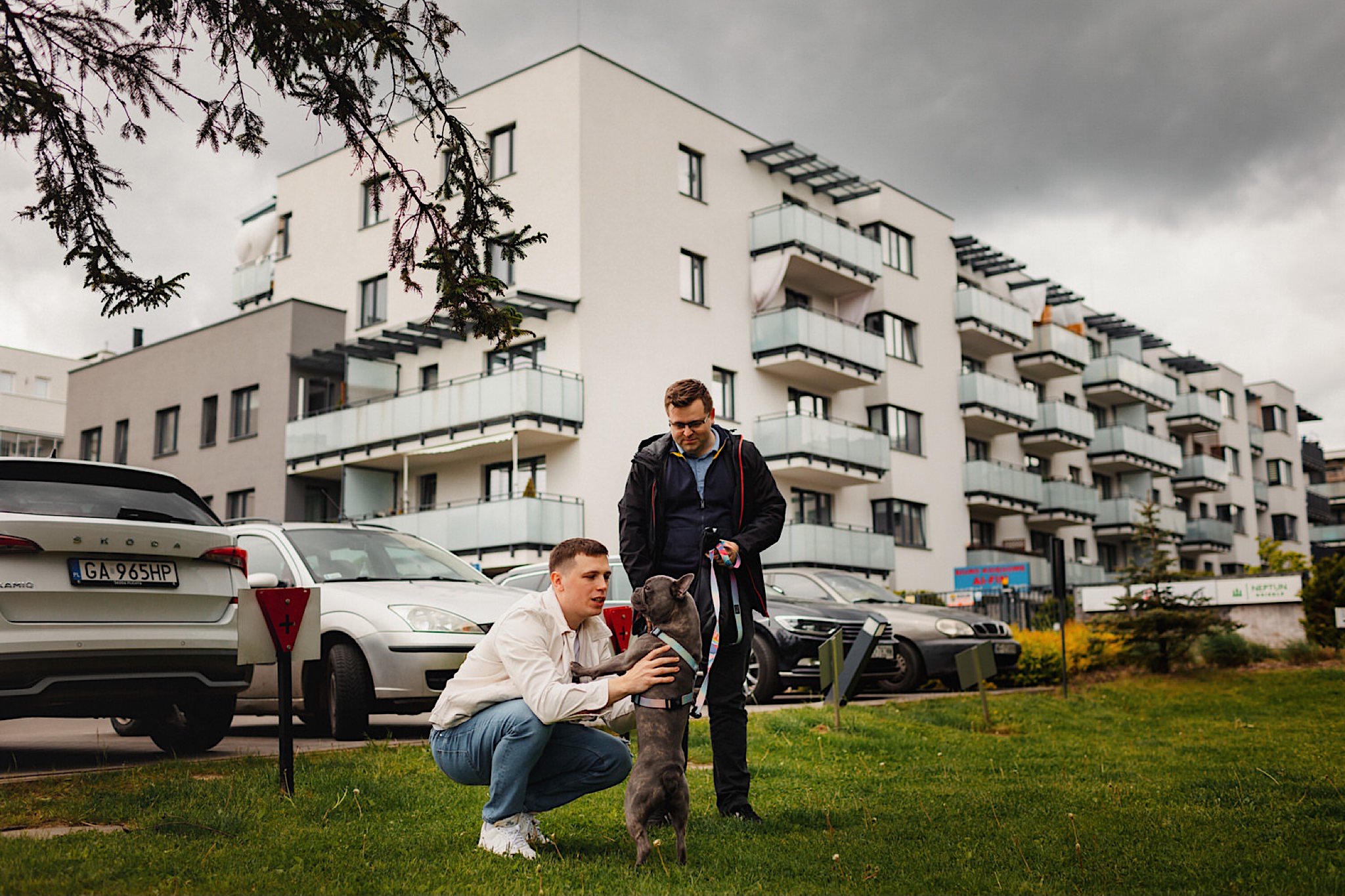 Dzień wesela rozpocząłem od przygotowań w mieszkaniu Pawła. Najbliższa rodzina z “synkiem” Dustinem na czele. Trochę wspominania starych, piłkarskich czasów, oglądanie kolekcji koszulek, prasowanko, latanie po schodach w tę i we w tę. Wszystko w luźnej i przyjaznej atmosferze. A o to żebyśmy mieli wystarczająco dużo czasu zadbał drużba, który się LEKKO spóźnił 😉 Jak już przyszedł to tak szybko ubierał Pana Młodego, że guzik w marynarce tego nie wytrzymał. Następnie przyszedł czas na wizytę w domu rodzinnym Natalii. Trzy pokolenia serdeczności i uśmiechu 🙂 Makijaż babci, historie z panieńskiego, małe problemy przy otwieraniu szampana, selfie dziewczyn z suknią w tle (szacun za kadrowanie!), konsumowanie szampejna, rapsy przy ubieraniu, kilka portretow i przyjechał Paweł. Chwile oczekiwania i przyszedł czas na jeden z najbardziej emocjonalnych first look’ow jakie widziałem (a było ich całkiem sporo). Mówią, że piłkarze to łobuzy, a wiadomo kto kocha najmocniej 🙂 Pawła na widok Natalii w sukni ślubnej rozwaliło całkowicie. Wzrusz totalny. Nie spokojniej było na błogosławieństwie.