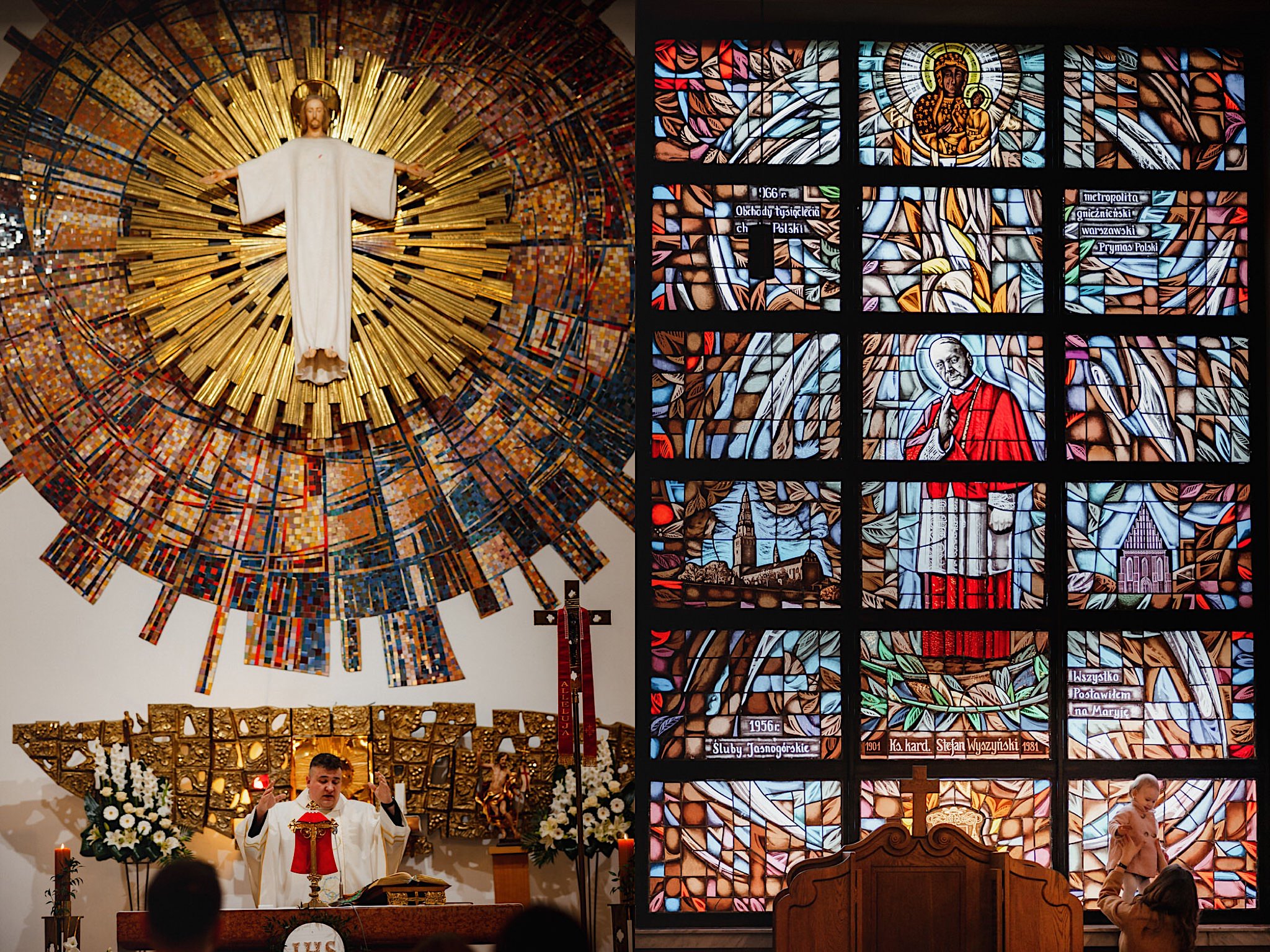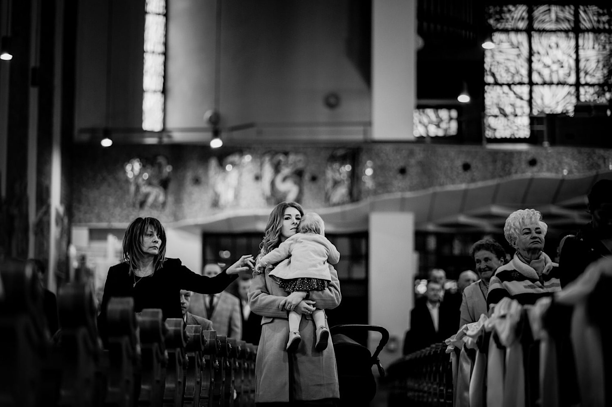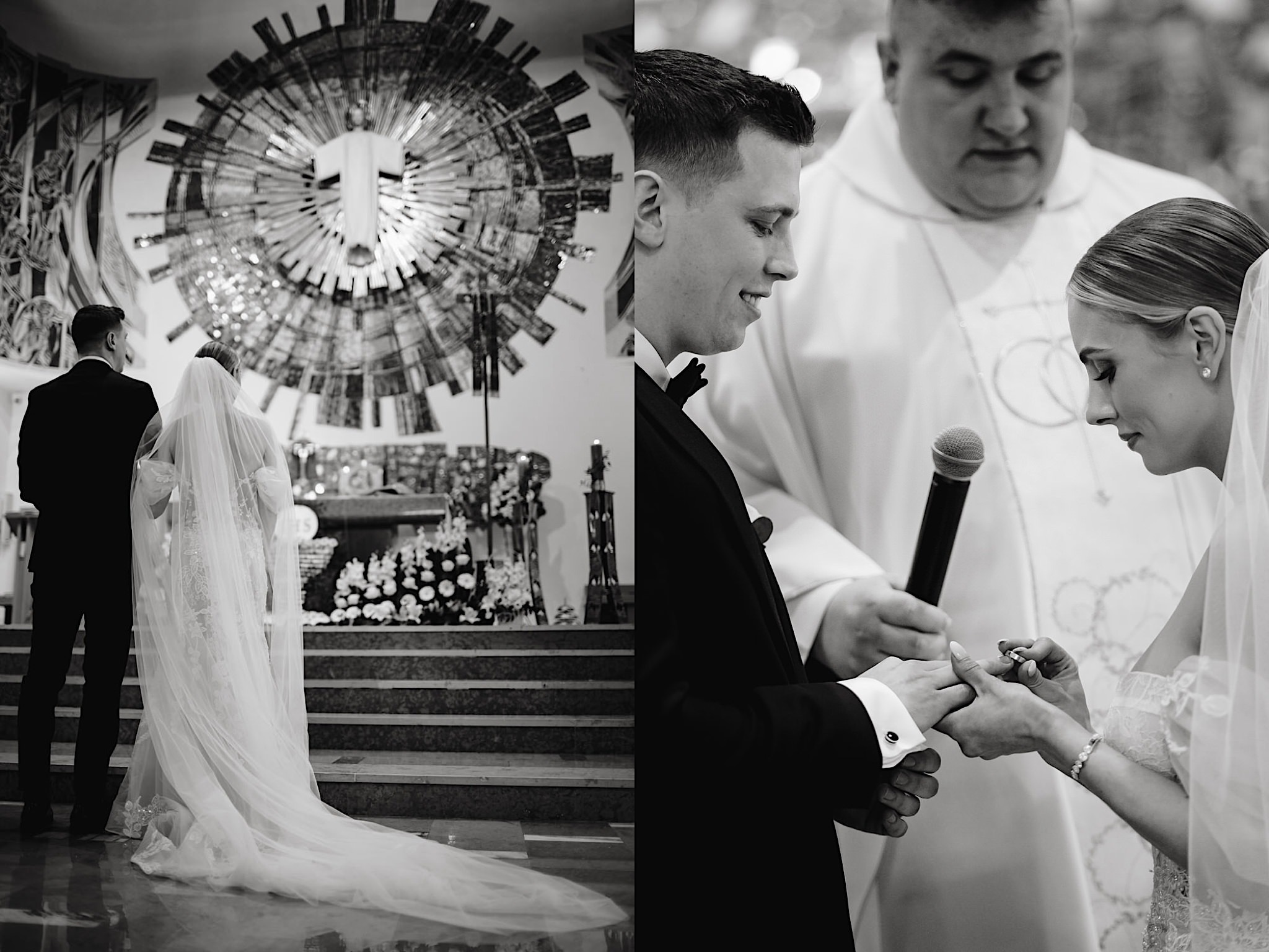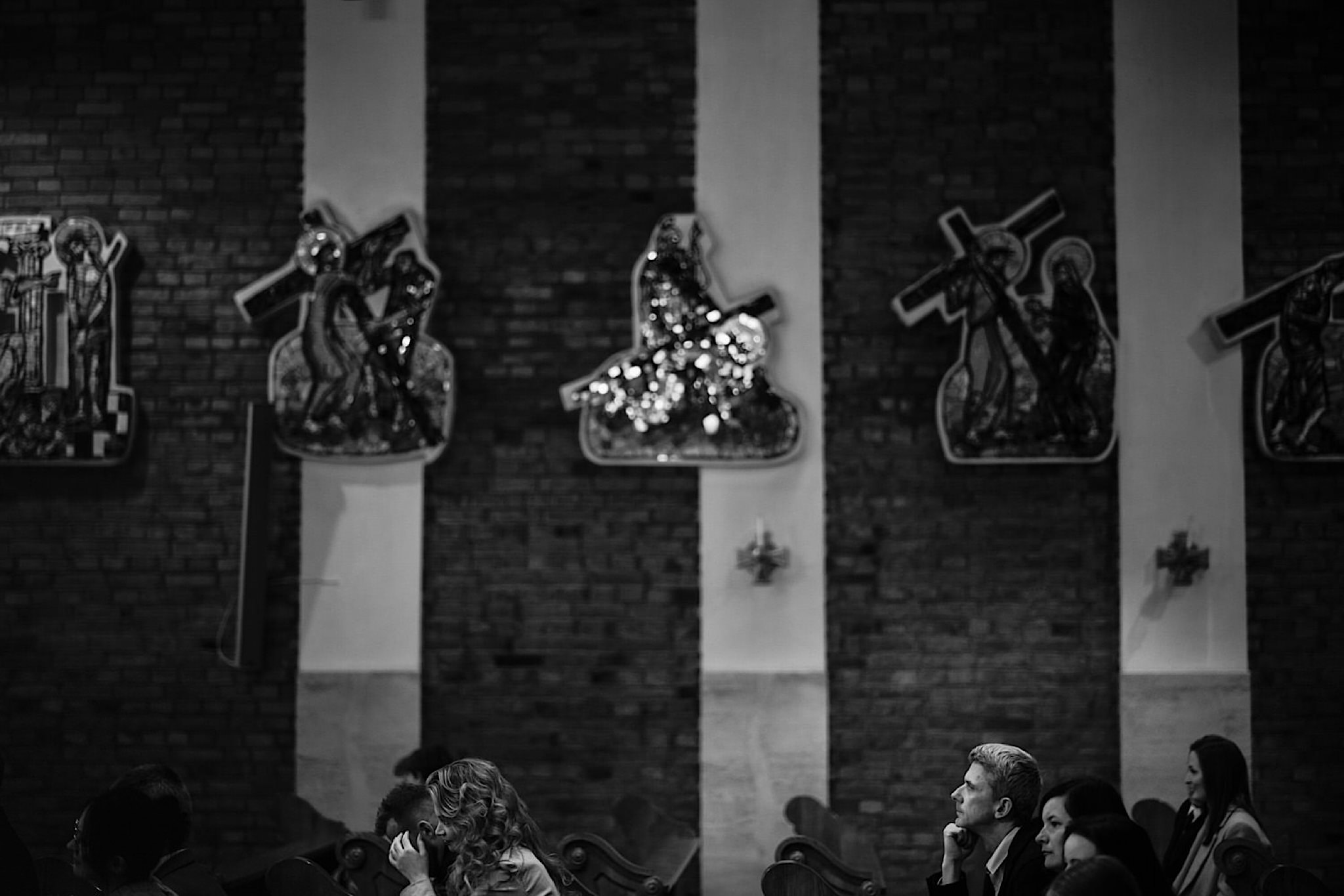 Przyszedł czas na najwazniejszy moment tego dnia czyli ceremonie, która odbyła się w Parafii Miłosierdzia Bożego w Ząbkach. Chwile przed wejściem do kościoła troszke pokropiło. Weszli do środka jak huragan, aż powyrywalo niektórym parasolki. Następnie małe kłopoty z rozwijaniem dywanu i później było już wszystko perfekcyjne! Uśmiechy, gesty, spojrzenia, całusy, brawa, emocjonalne życzenia i czas na imprezę!