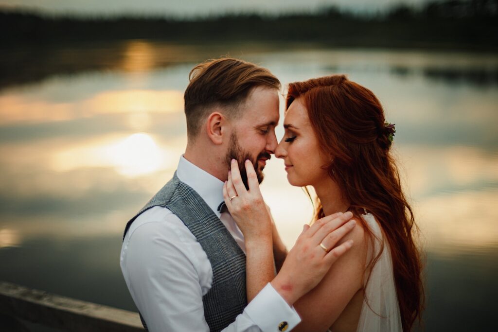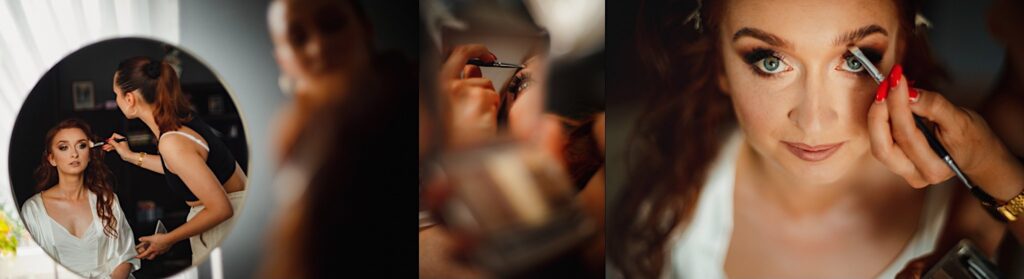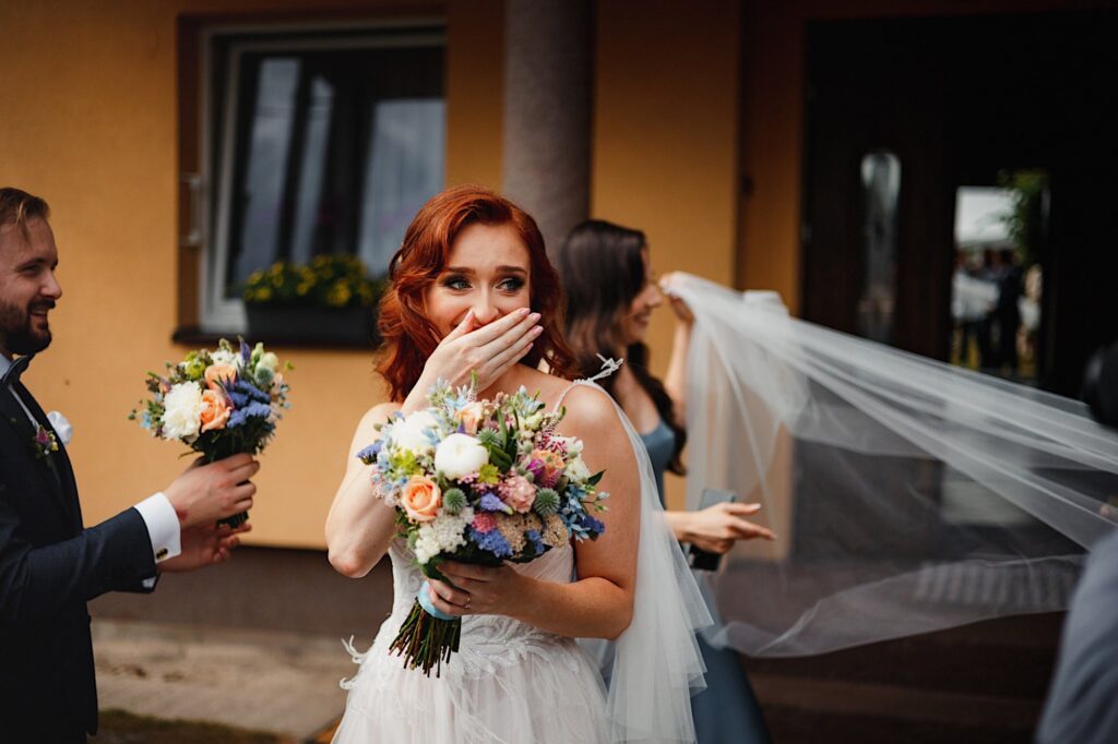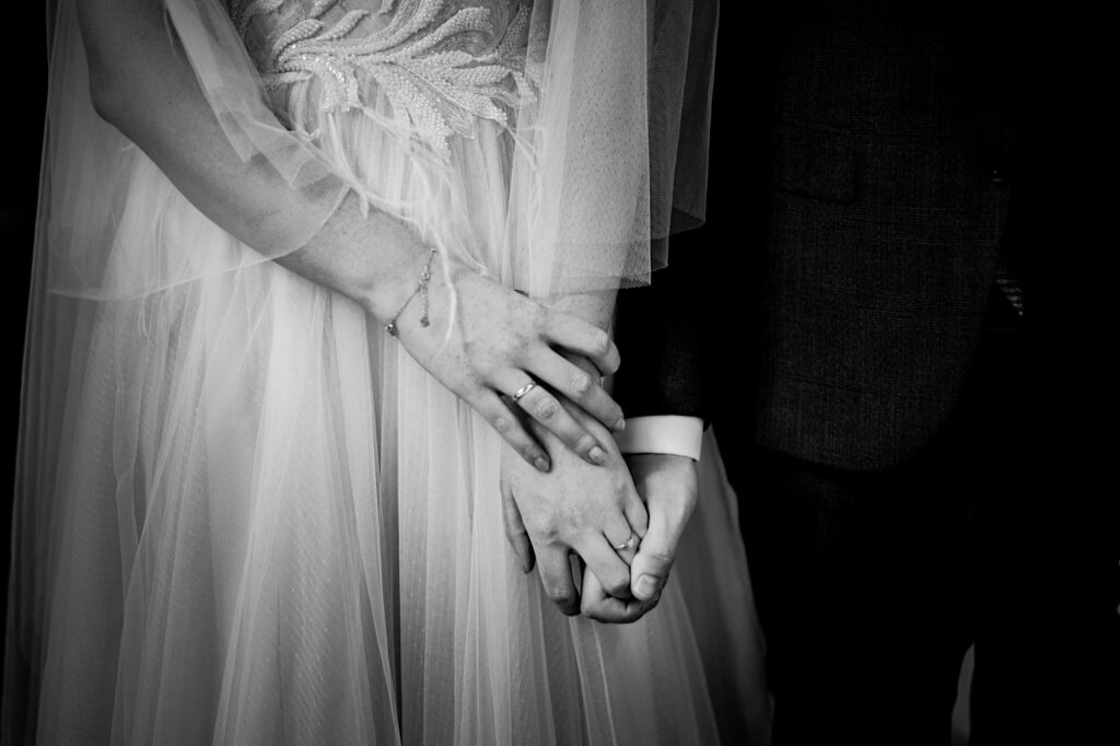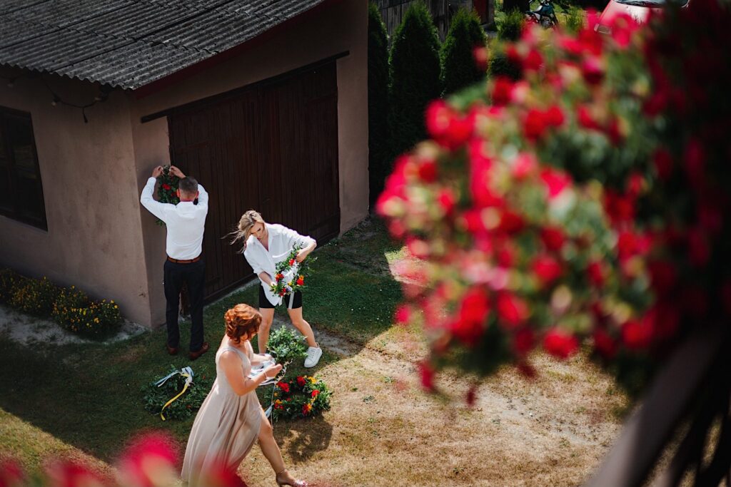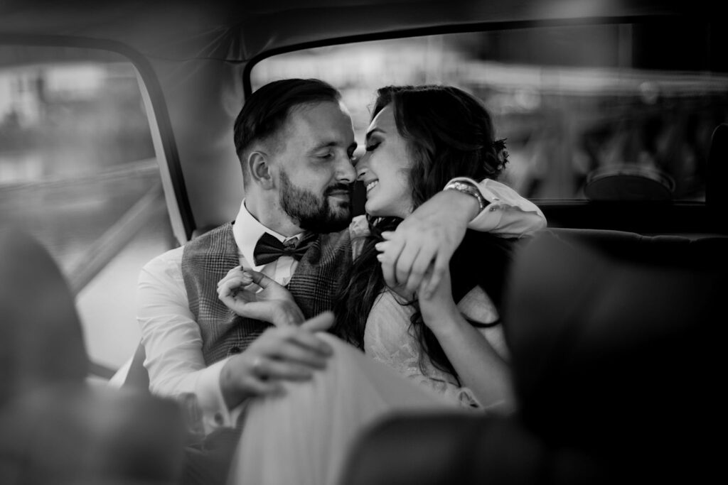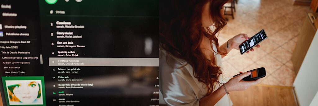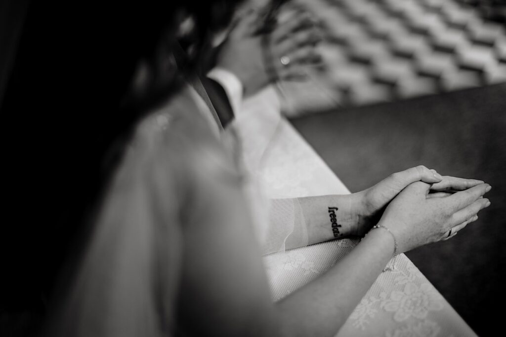 Z bohaterami tego wpisu spotkaliśmy się na sesji narzeczeńskiej. Z mojej perspektywy bardzo udanej (możecie ją obejrzeć tutaj). Miałem zatem spore oczekiwania i pędziłem do nich ponad 400km z uśmiechem na ustach. Choć ślub i wesele mieli nieopodal mnie. Już od samego początku wiedziałem, ze będzie dobrze. Wszechobecny chaos, który bardzo lubię! Wszyscy serdeczni, wyluzowani i uśmiechnięci. Było malowanko panny młodej przy playliście, która pokrywała się w 100% z moimi preferencjami muzycznymi, bieganie po schodach, pozdrawianie fotografa środkowym palcem (pozdro Anita, bez palca :p), jedzenie pizzy, pokaz mody Kubota, długo wyczekiwany first look (ale udany!) i w drogę do kościoła. Tak im się śpieszyło, że Paula po drodze zgubiła welon. Jeszcze tylko zabawna brama ustawiona przez sąsiadów, który skończył się praktycznym prezentem dla Panny Młodej 🙂 i czas na ceremonię.