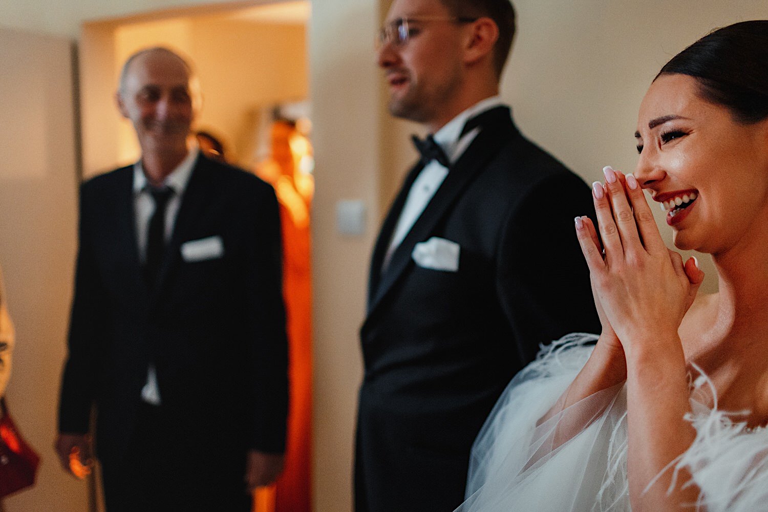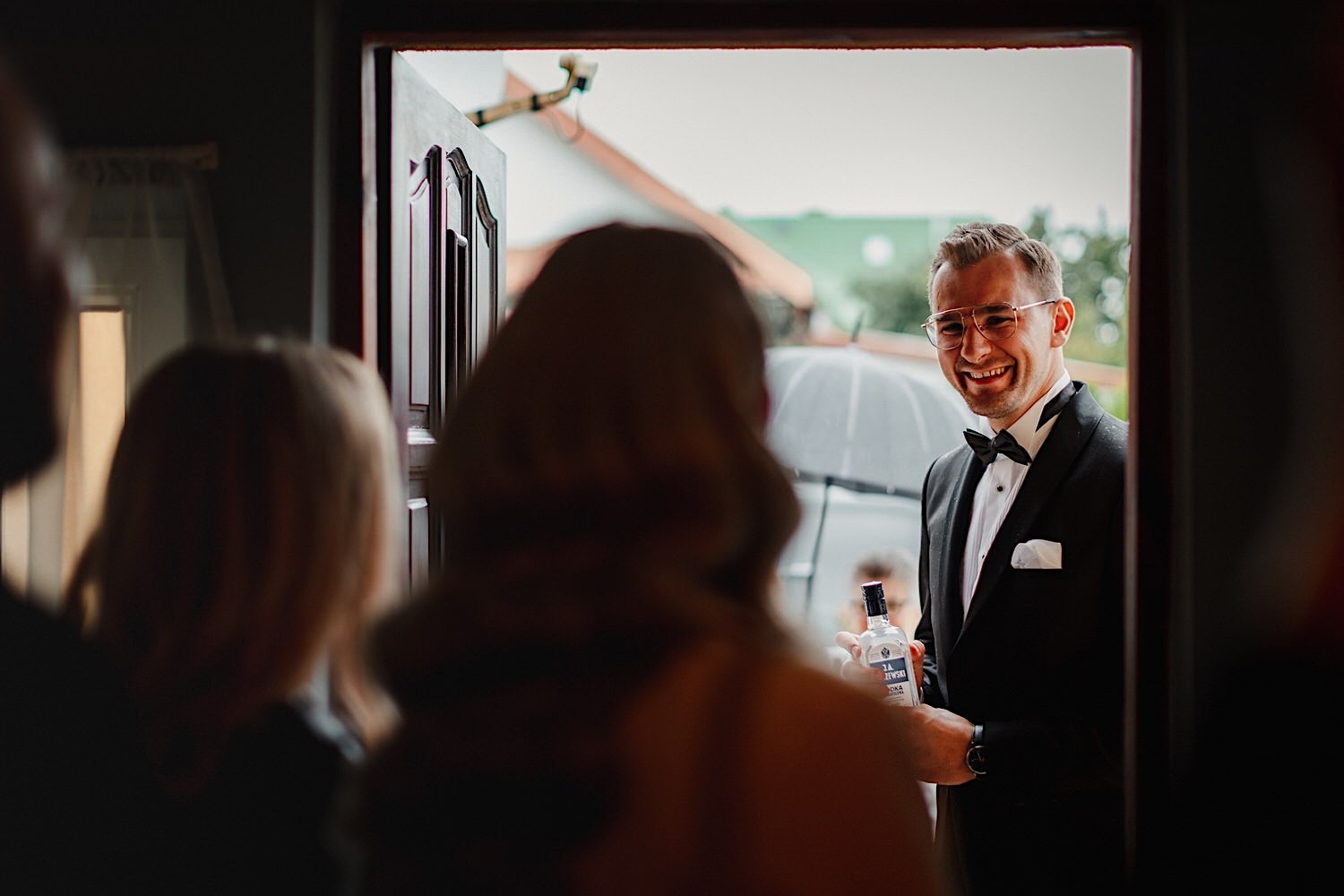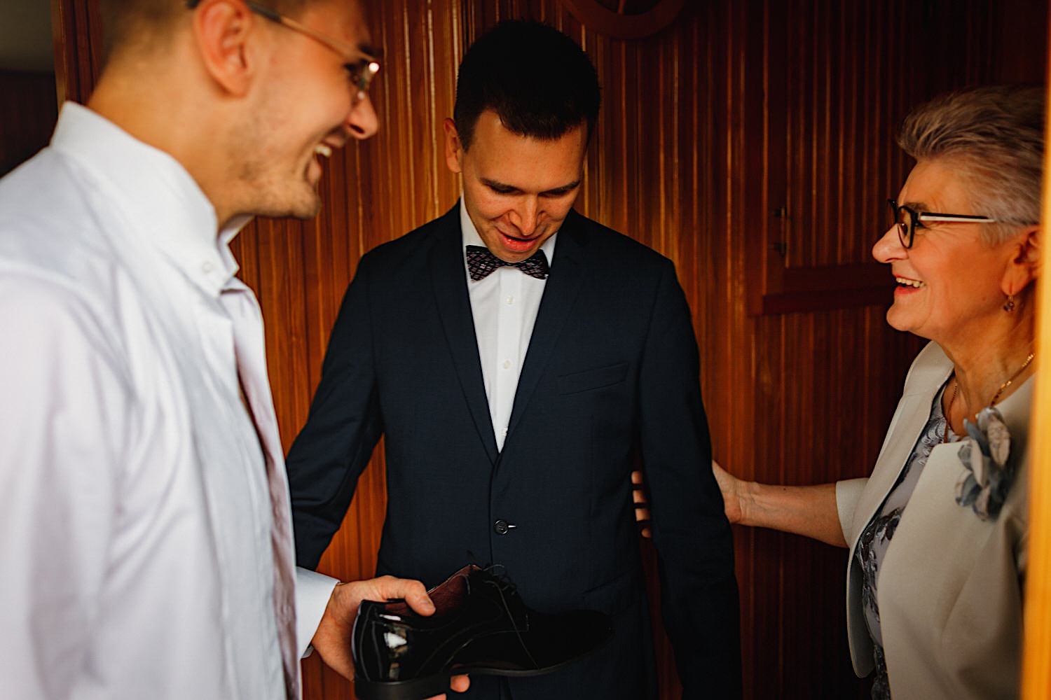 Gdzie przywitał mnie oczywiście uśmiech naszej bohaterki 🙂 Sporo rozmów z całą rodzinką, troszkę łez wzruszenia, poprawianie makijażu, ubieranko portrety i przyjechał Karol. W towarzystwie całej rodziny i… deszczu. Jak już jesteśmy przy kroplach to trochę łez spadło w trakcie błogosławieństwa.