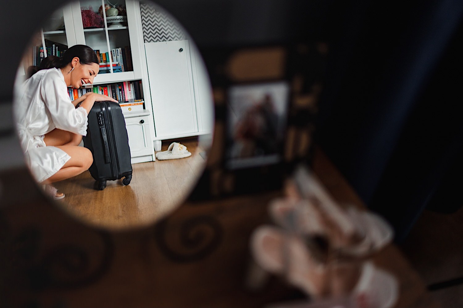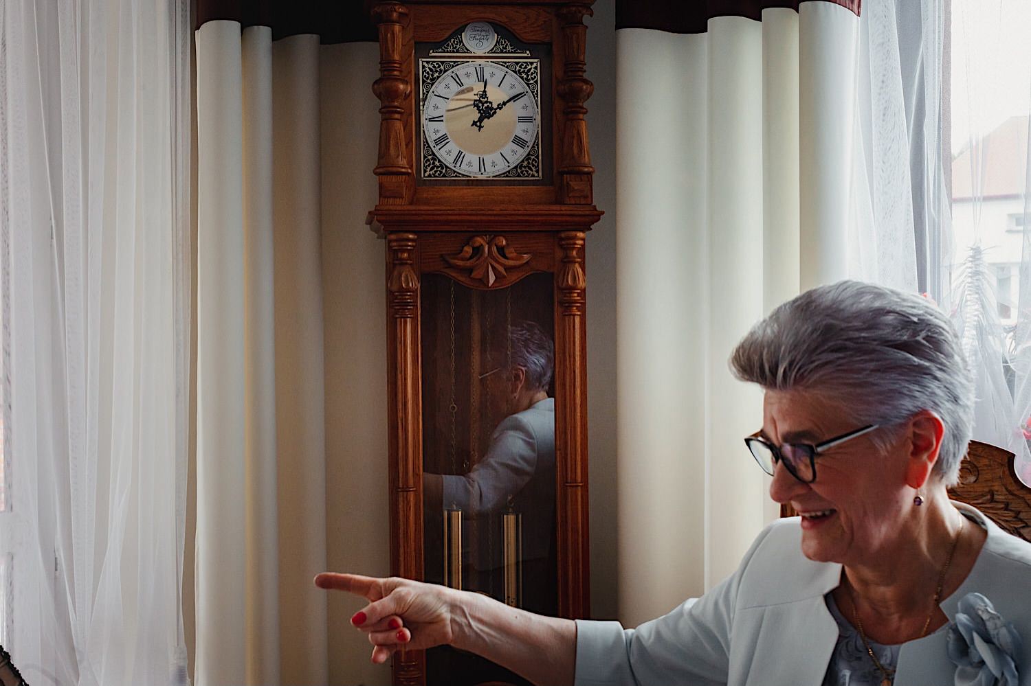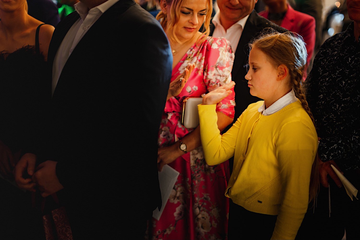 Gdzie przywitał mnie oczywiście uśmiech naszej bohaterki 🙂 Sporo rozmów z całą rodzinką, troszkę łez wzruszenia, poprawianie makijażu, ubieranko portrety i przyjechał Karol. W towarzystwie całej rodziny i… deszczu. Jak już jesteśmy przy kroplach to trochę łez spadło w trakcie błogosławieństwa.