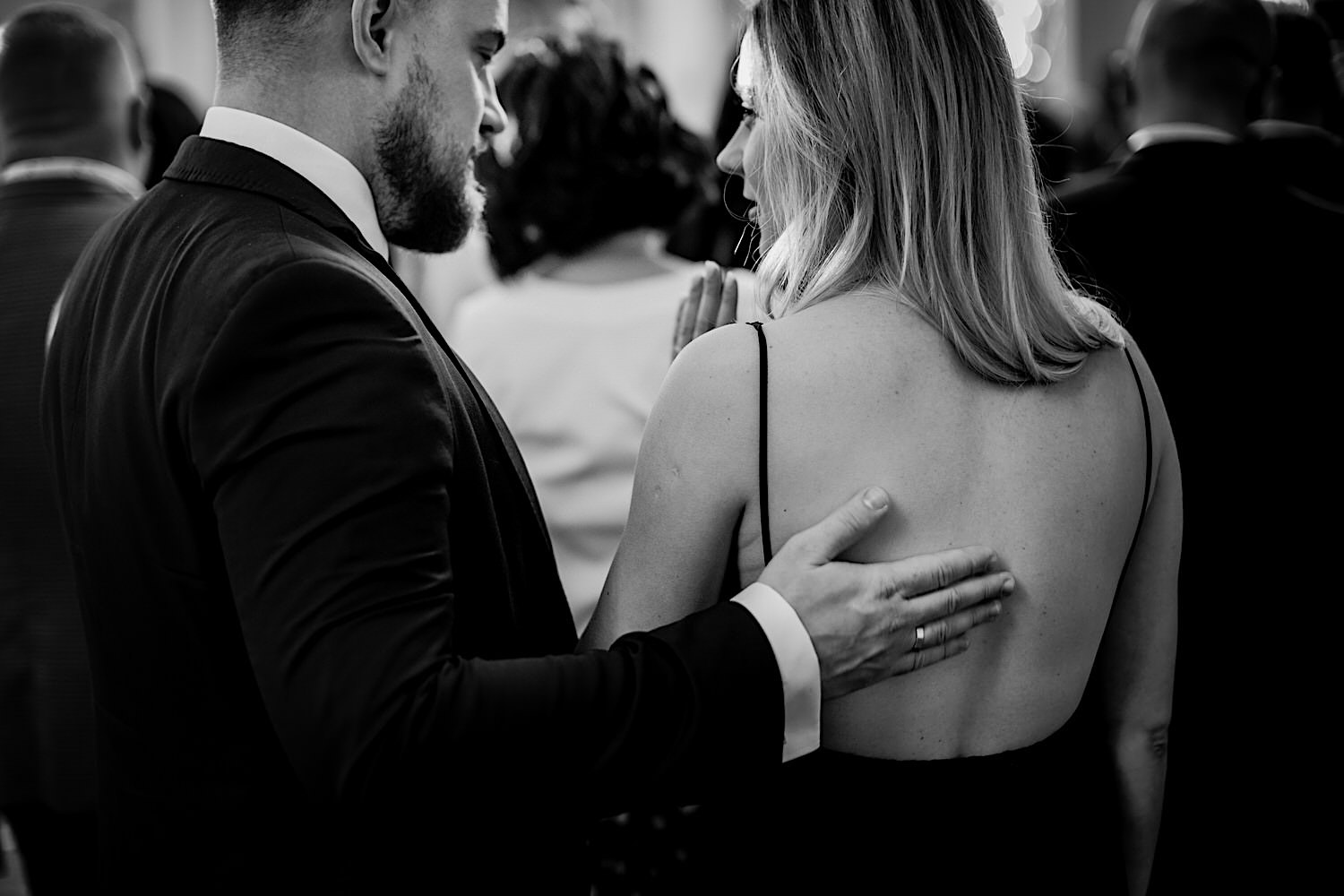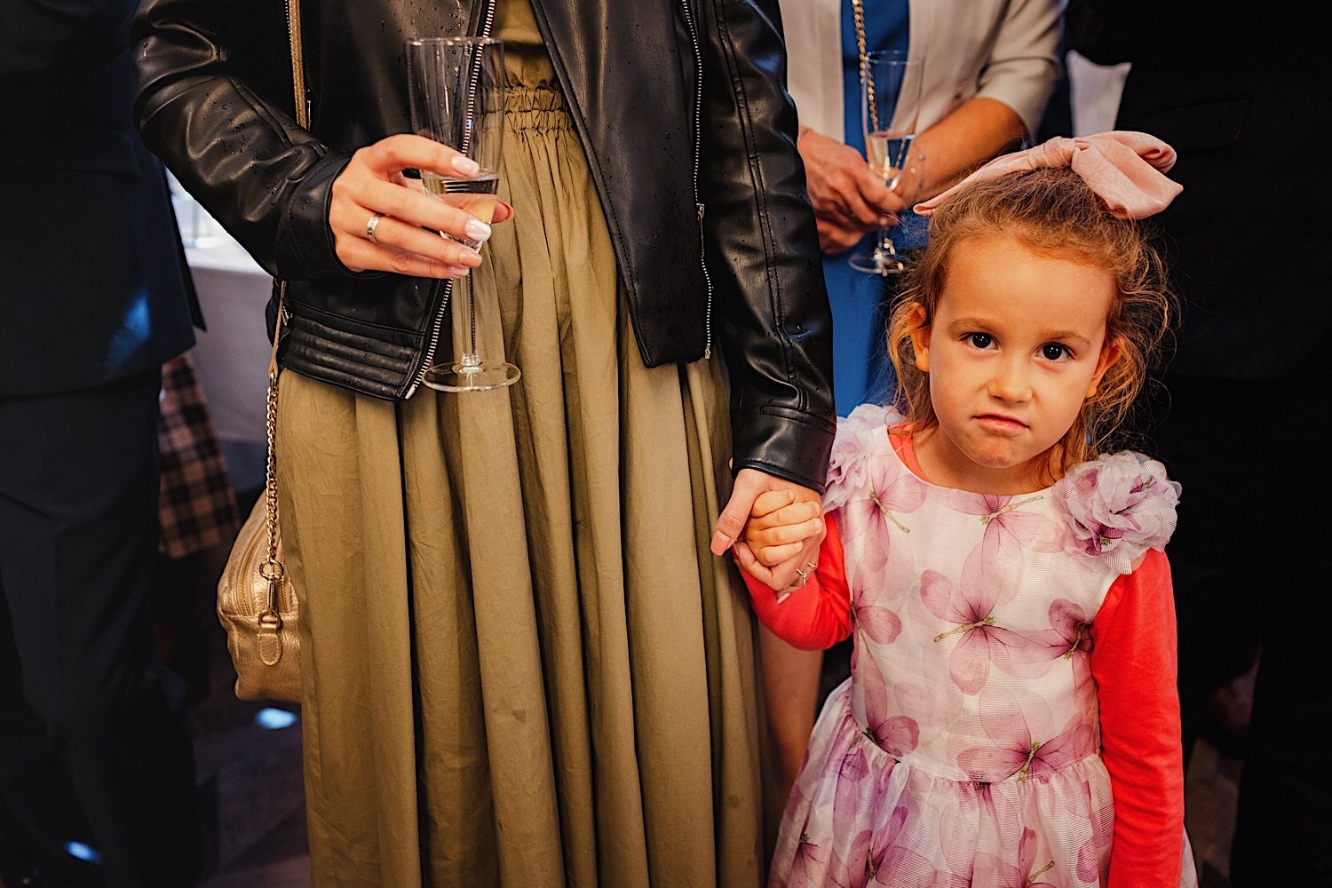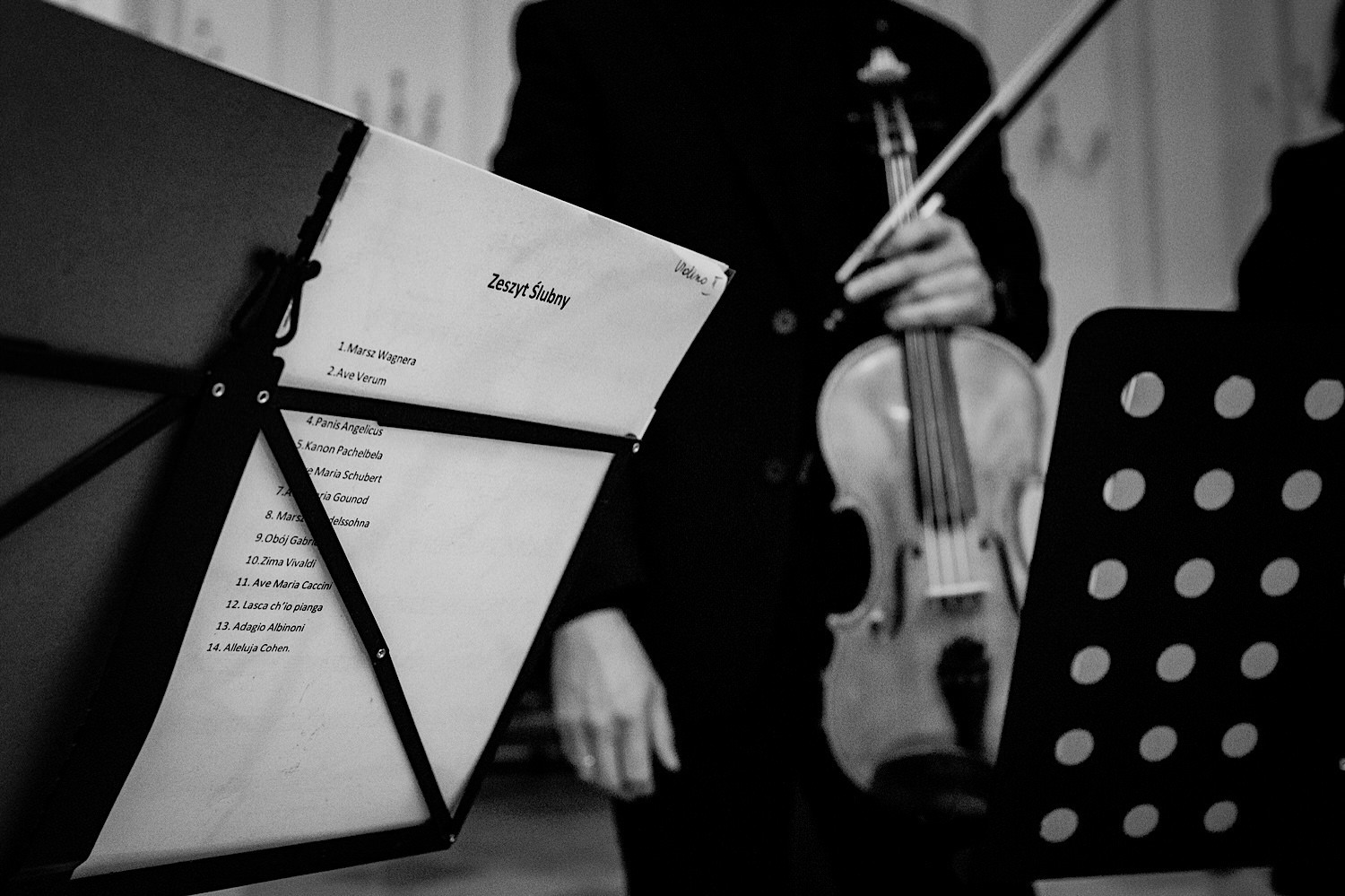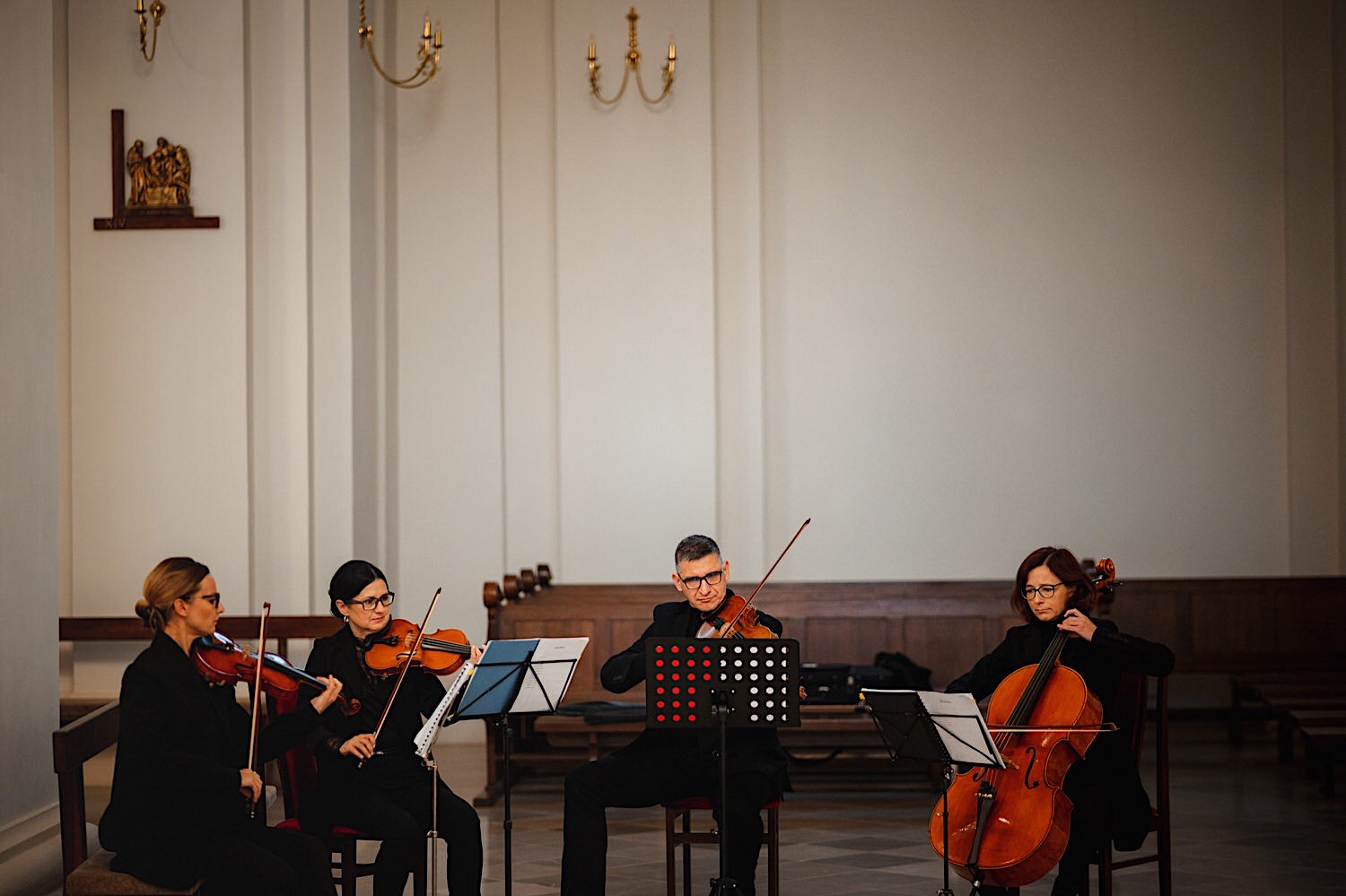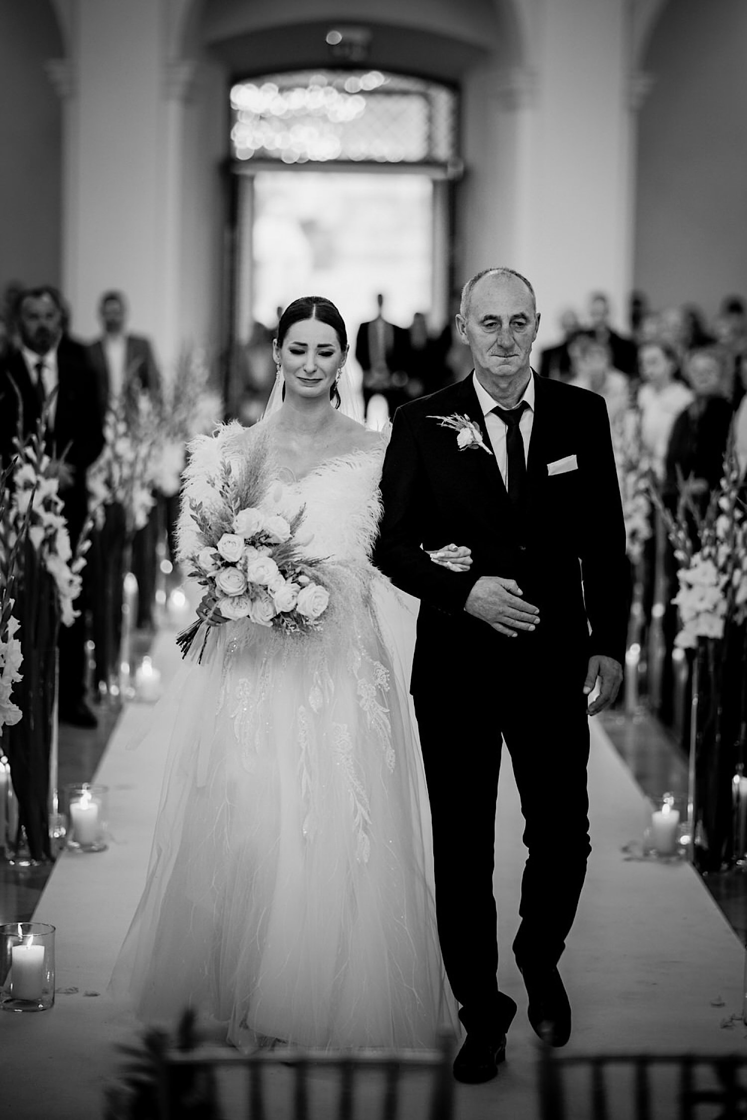 Następnie przyszedł czas na ceremonię, która odbyła się w Kościele Franciszkanów pw. Zwiastowania NMP. A rozpoczęła się od bardzo emocjonalnego wejścia Marioli z Tatusiem. Jak już wszyscy usiedli to zobaczyłem sporo znajomych i uśmiechniętych Mordeczek 🙂 O piękną muzykę, która potęgowała emocje zadbał – “Inny kwartet”. Atmosfera na przysiędze była tak podniosła, że pospadały złote bransolety. Przyszedł czas na mokre wyjście i wejście na imprezę!
