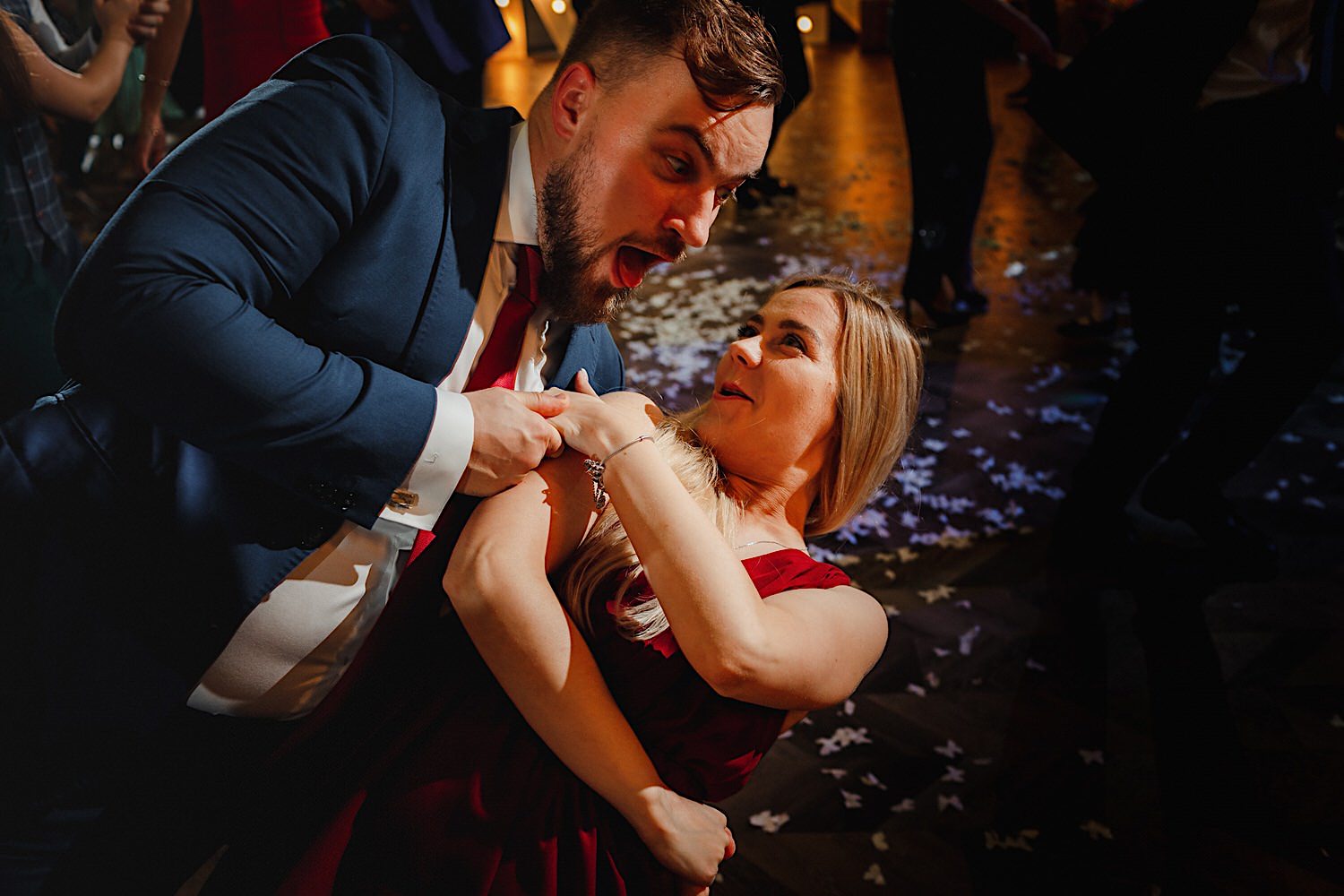 Ta odbyła się w Hotel Koronny w Zamościu, a o dobrą zabawę zadbał Zespół Modem Cover Band. Jakie było wesele? WOW! Niektórzy fruwali pod sam sufit, a i biegania na… rękach nie zabrakło. Od pisania lepszy jestem w fotografowaniu. Zobaczcie więc sami poniżej!
