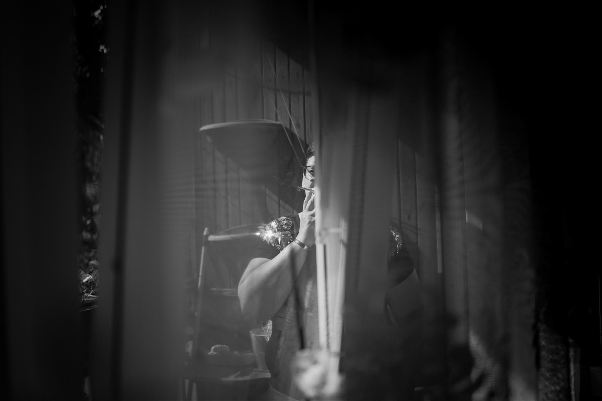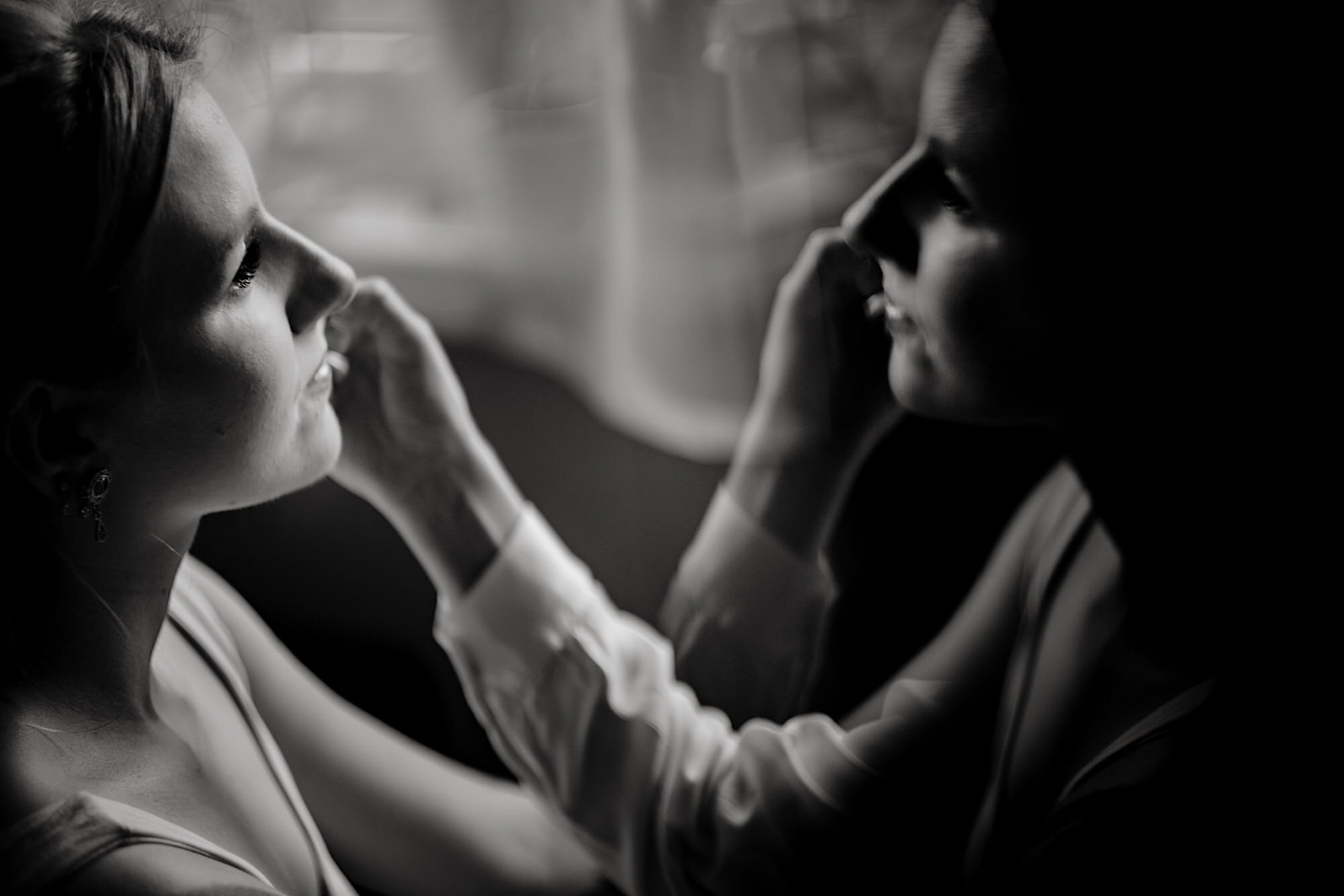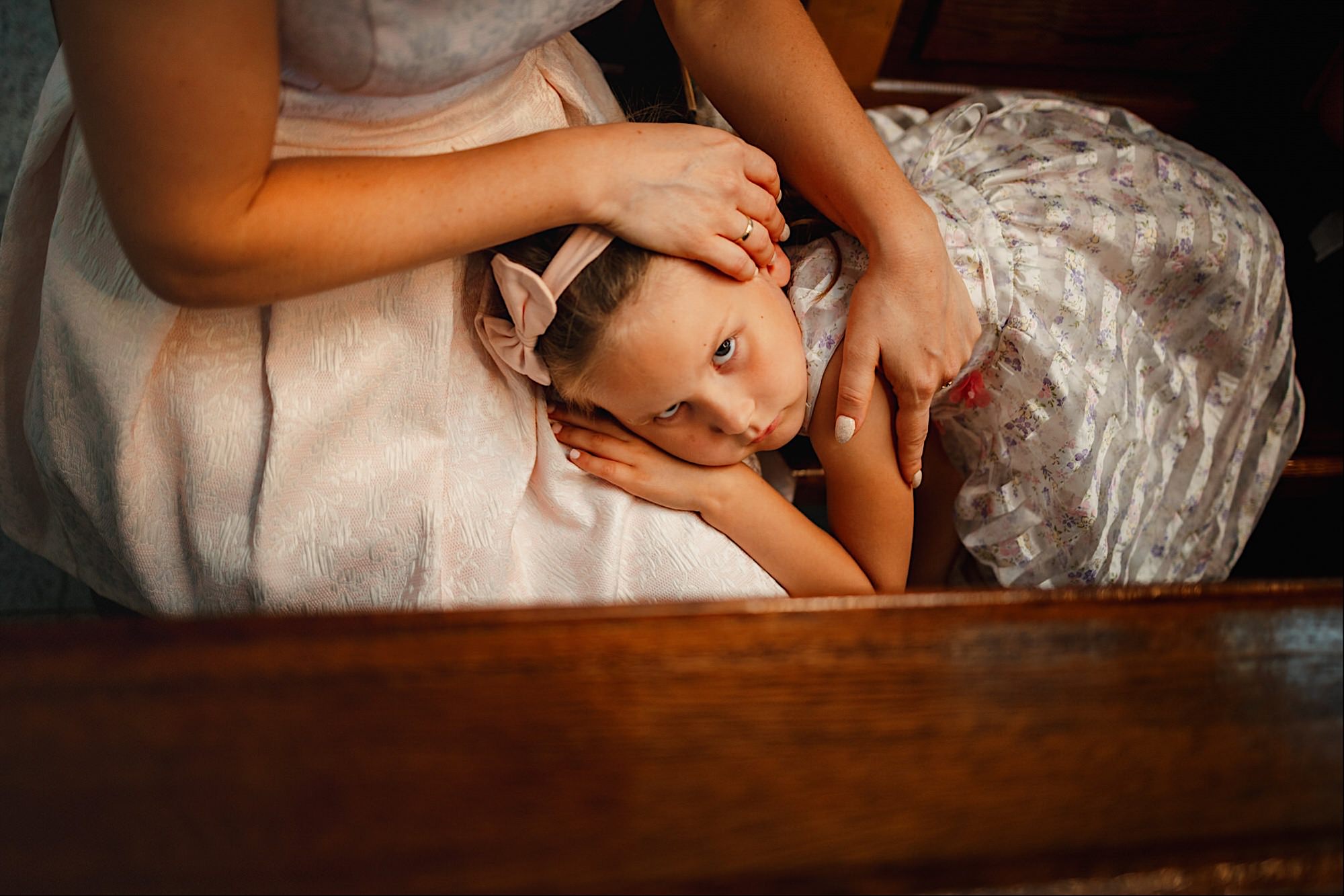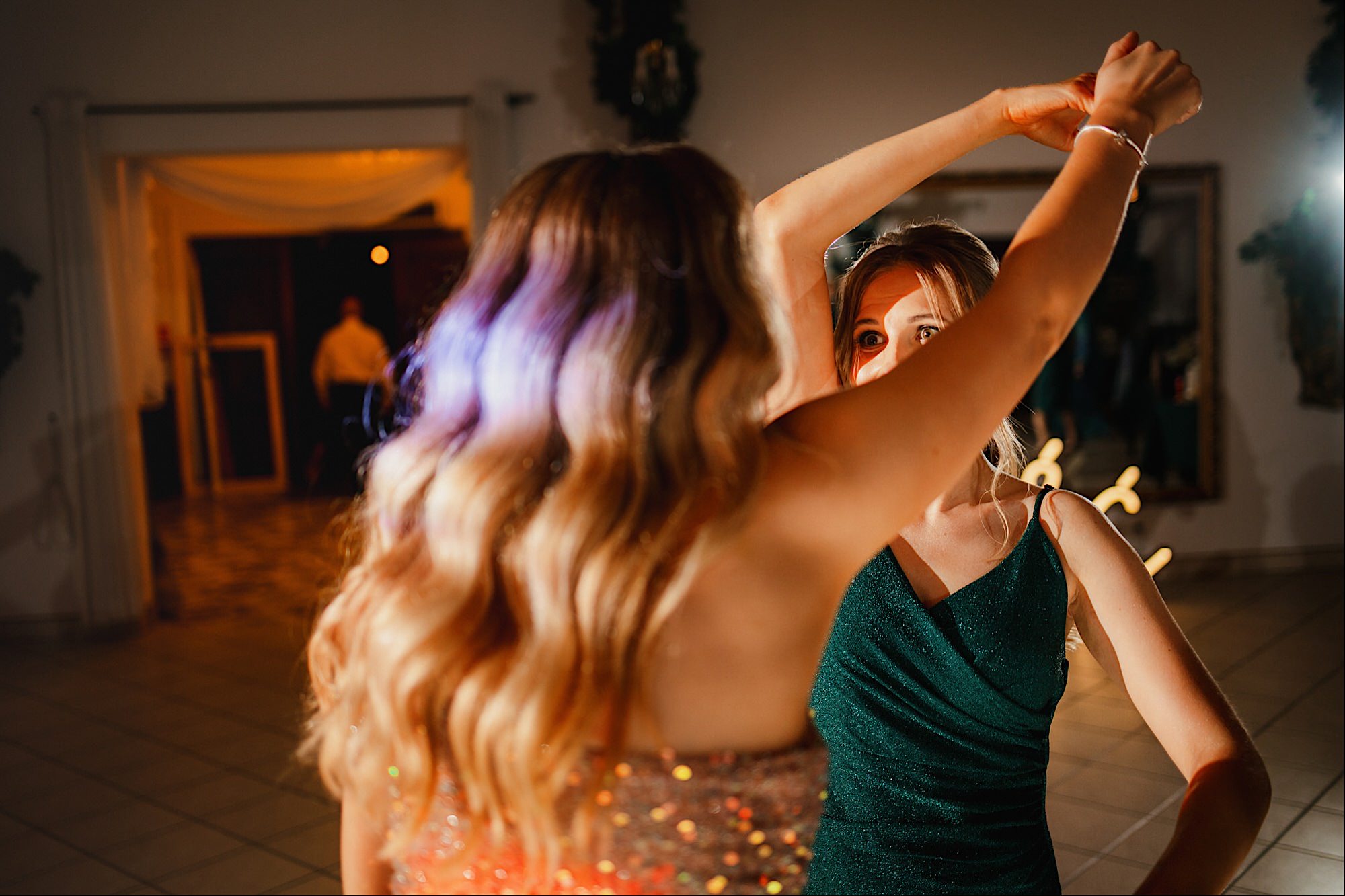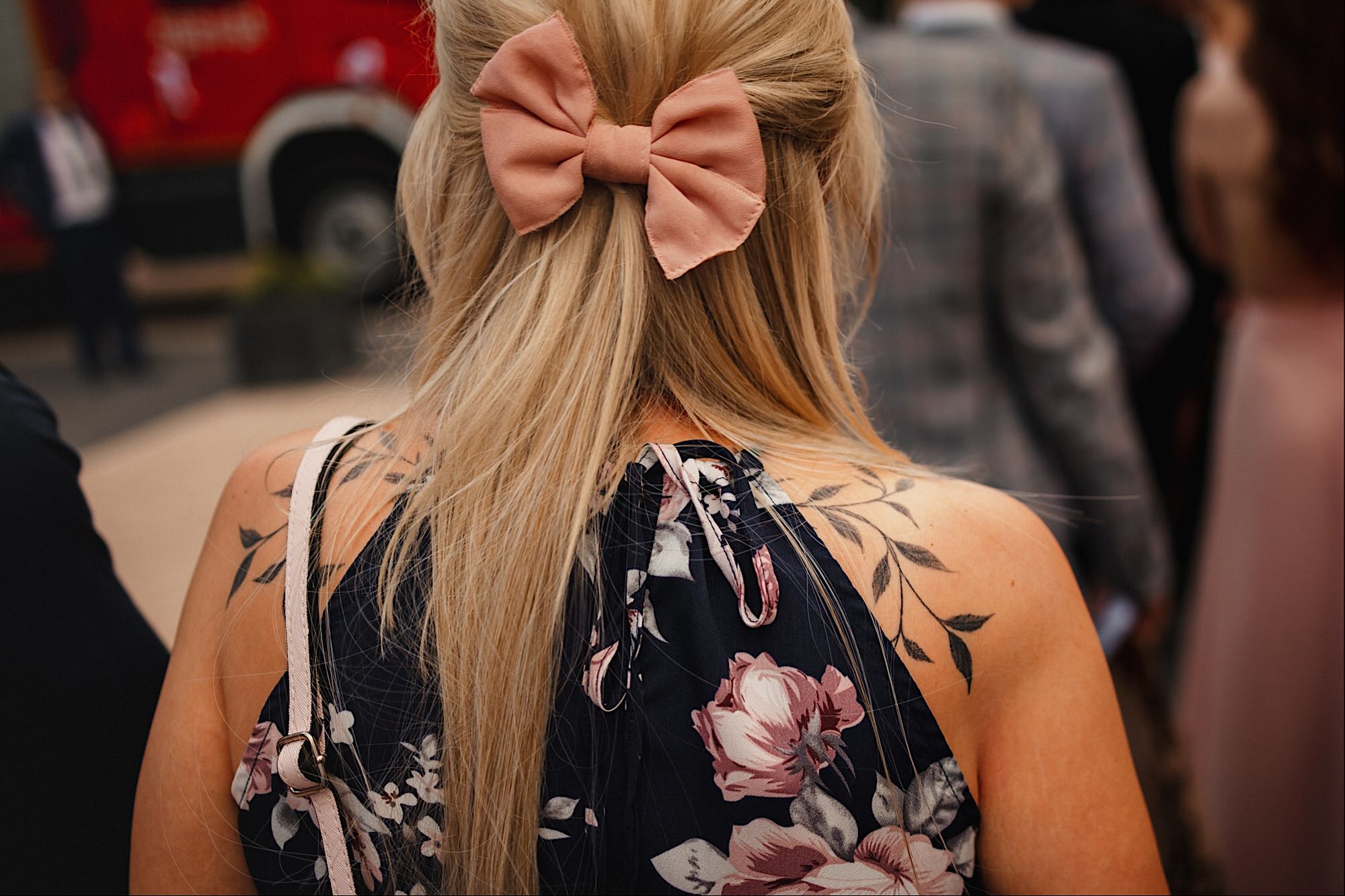 Pędziłem do nich do dalekiego (dla mnie) Pruszkowa. Pierwsze skojarzenie, wiadomo – gangsterka. Jak gangsterka to luz i zabawa. A to już całkiem blisko do naszych głównych bohaterów. Tak też było od samego początku. Sami najbliżsi, makijażystka, biegający i sikający pies (a to nie jedyne sikowaki tego dnia) czyli chaosik, który bardzo lubię 🙂 Mnóstwo śmiechu, niemniej tematów do rozmów – tatuaże, siatkówka, koszykówka, panieński… czyli wszystko co bywa bolesne, męczące ale dające finalnie sporo radościi 🙂 Był też niebieskowłosy Ninja. Kiedy ten chaos się trochę rozluźnił, zanim Maciek się ubrał mieliśmy też chwilę porozmawiać o poważniejszych tematach. To jeden z tych gości, których spotkało się kilka razy w życiu, a rozmawia się jak ze starym kumplem 🙂 Później szybka zmiana lokalizacji, równie szybkie wiązanie sukni i na sygnale do kościoła!