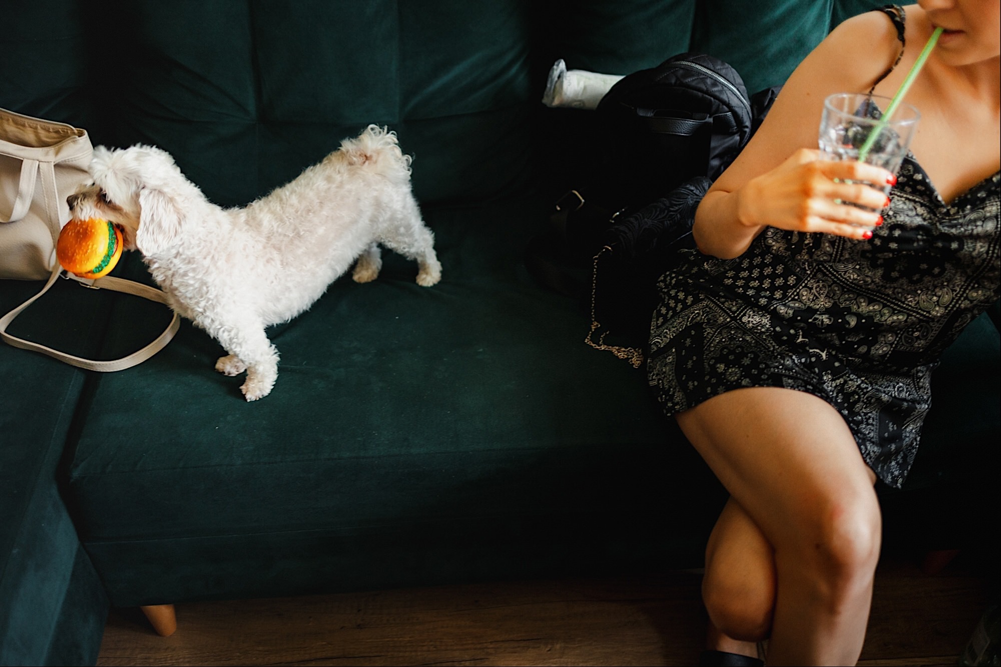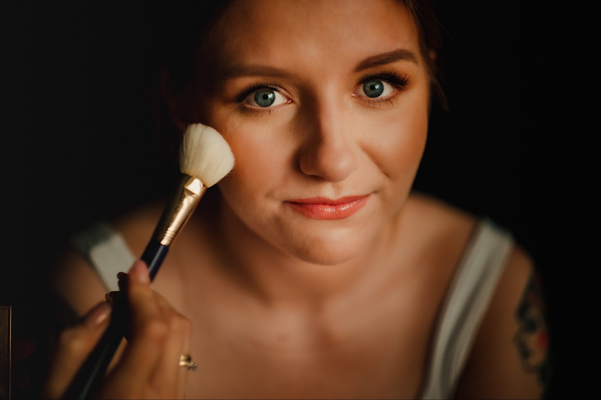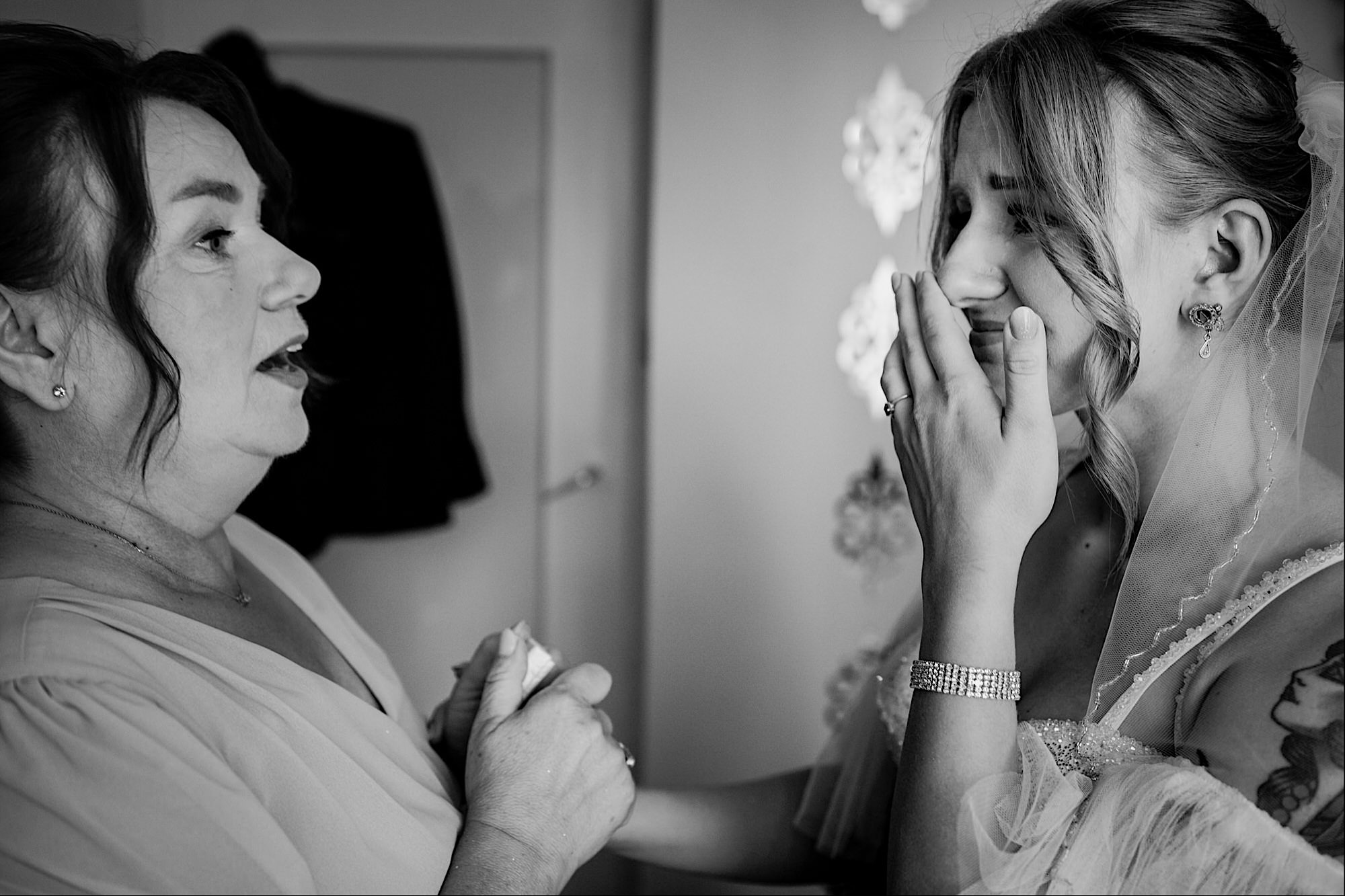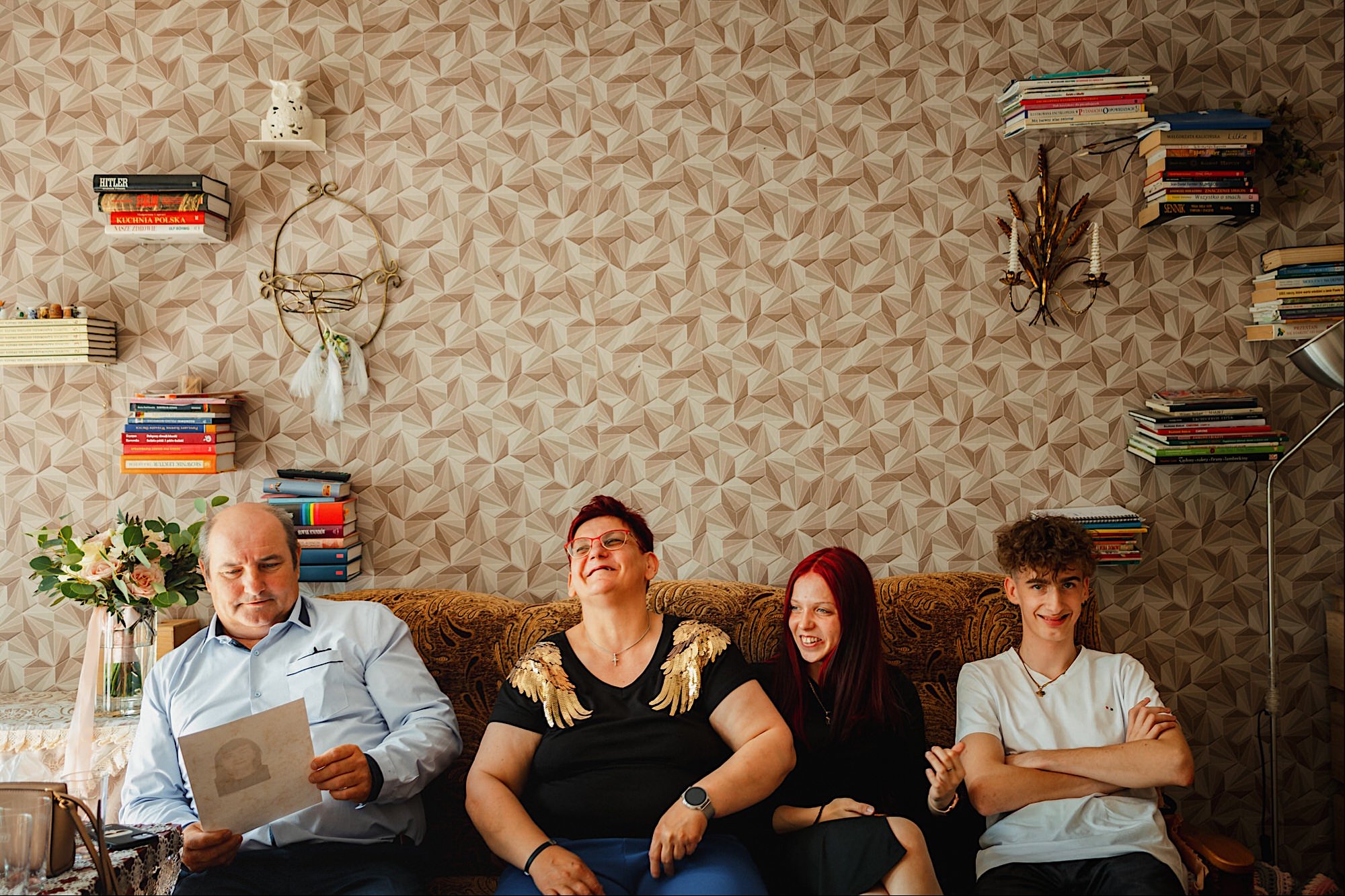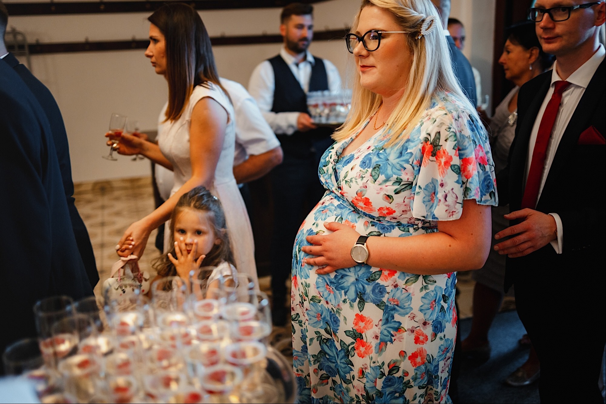 Pędziłem do nich do dalekiego (dla mnie) Pruszkowa. Pierwsze skojarzenie, wiadomo – gangsterka. Jak gangsterka to luz i zabawa. A to już całkiem blisko do naszych głównych bohaterów. Tak też było od samego początku. Sami najbliżsi, makijażystka, biegający i sikający pies (a to nie jedyne sikowaki tego dnia) czyli chaosik, który bardzo lubię 🙂 Mnóstwo śmiechu, niemniej tematów do rozmów – tatuaże, siatkówka, koszykówka, panieński… czyli wszystko co bywa bolesne, męczące ale dające finalnie sporo radościi 🙂 Był też niebieskowłosy Ninja. Kiedy ten chaos się trochę rozluźnił, zanim Maciek się ubrał mieliśmy też chwilę porozmawiać o poważniejszych tematach. To jeden z tych gości, których spotkało się kilka razy w życiu, a rozmawia się jak ze starym kumplem 🙂 Później szybka zmiana lokalizacji, równie szybkie wiązanie sukni i na sygnale do kościoła!
