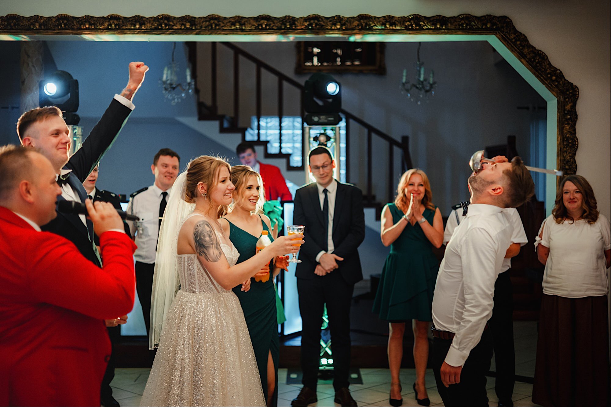 Ta odbyła się w Zajazd pod Jaworem w Pruszkowie. Zaczęło się już na zewnątrz od publicznego zapinania… spodni, przelatujących samolotów i wozów strażackich na sygnale. A później było jeszcze ciekawiej!