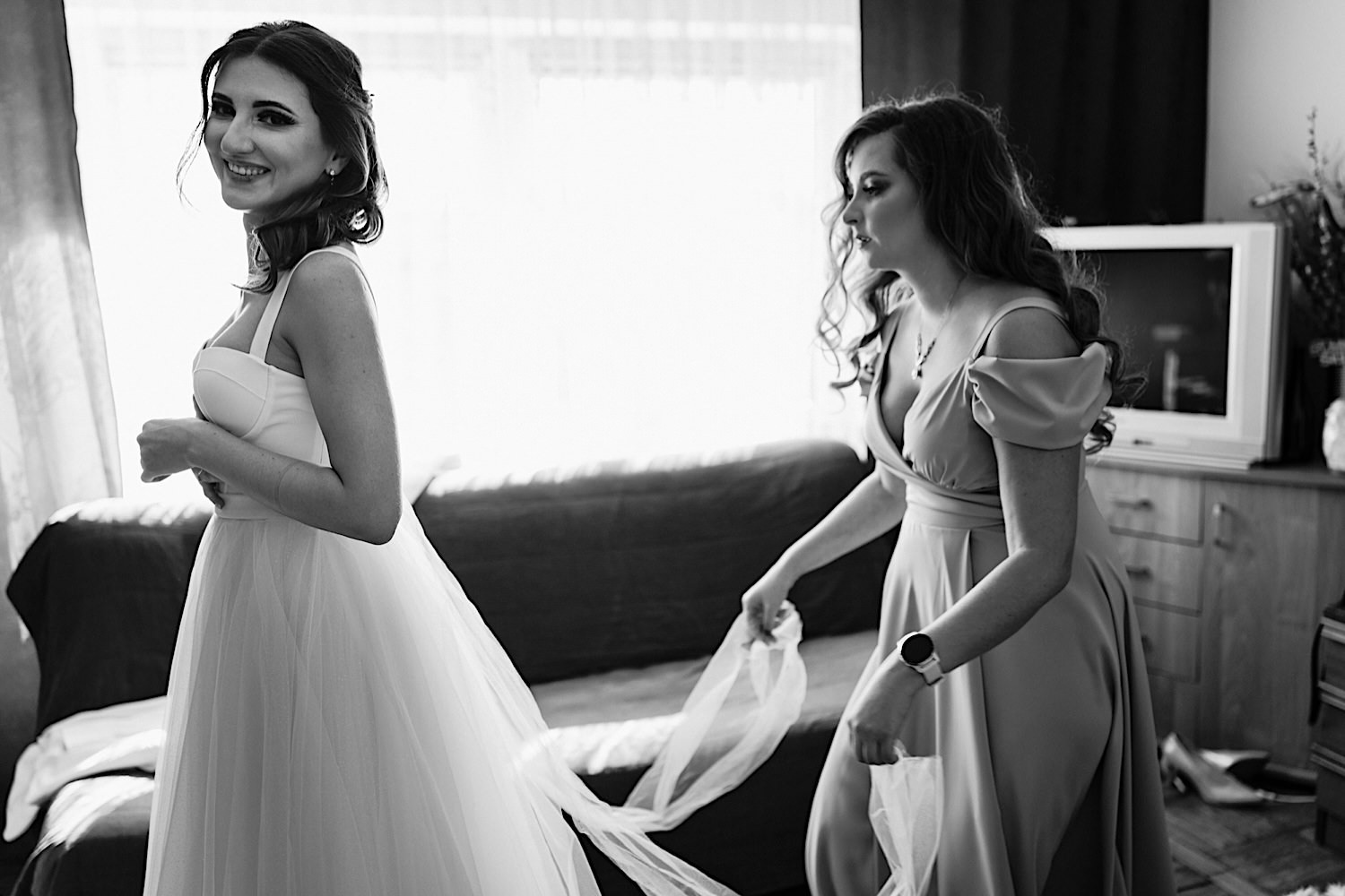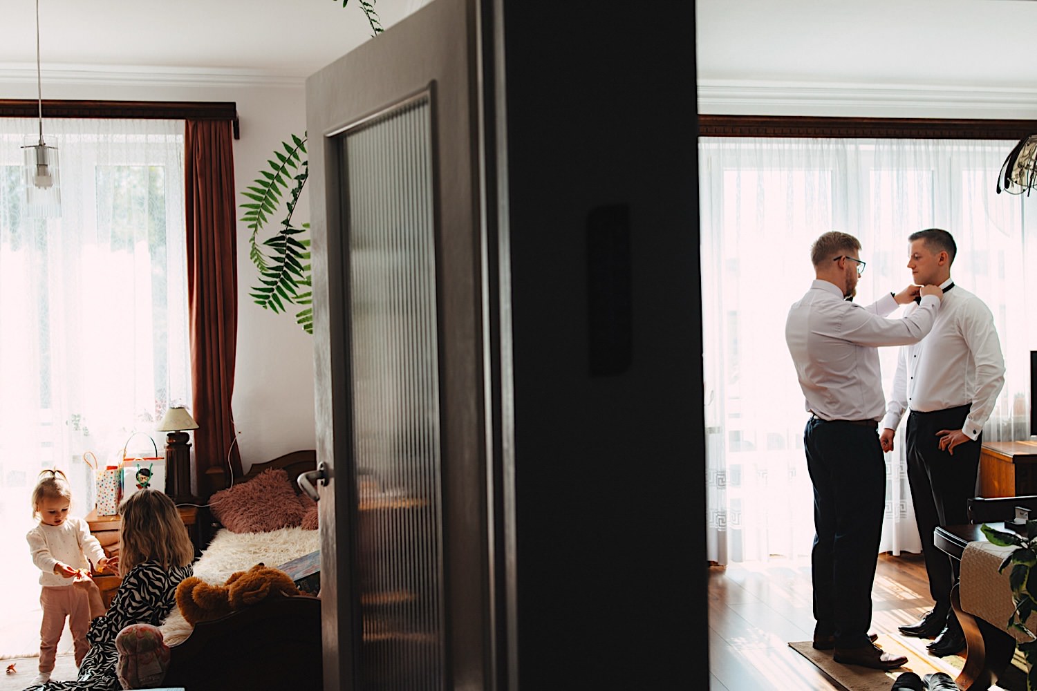 Poznaliśmy się kilka lat temu na ślubie siostry Janka. Wtedy jeszcze nie wiedzieli, że kilka kliknięć później też wylądują przede mną, tylko w roli głównej. To jedna z tych par, którym uśmiech nie schodzi z twarzy całymi dniami. I to był właśnie taki dzień. Pełen radości, luzu i dobrej energii, którą zarażali wszystkich dookoła. Tacy ludzie to czyste złoto – i dla fotografa, i dla świata.