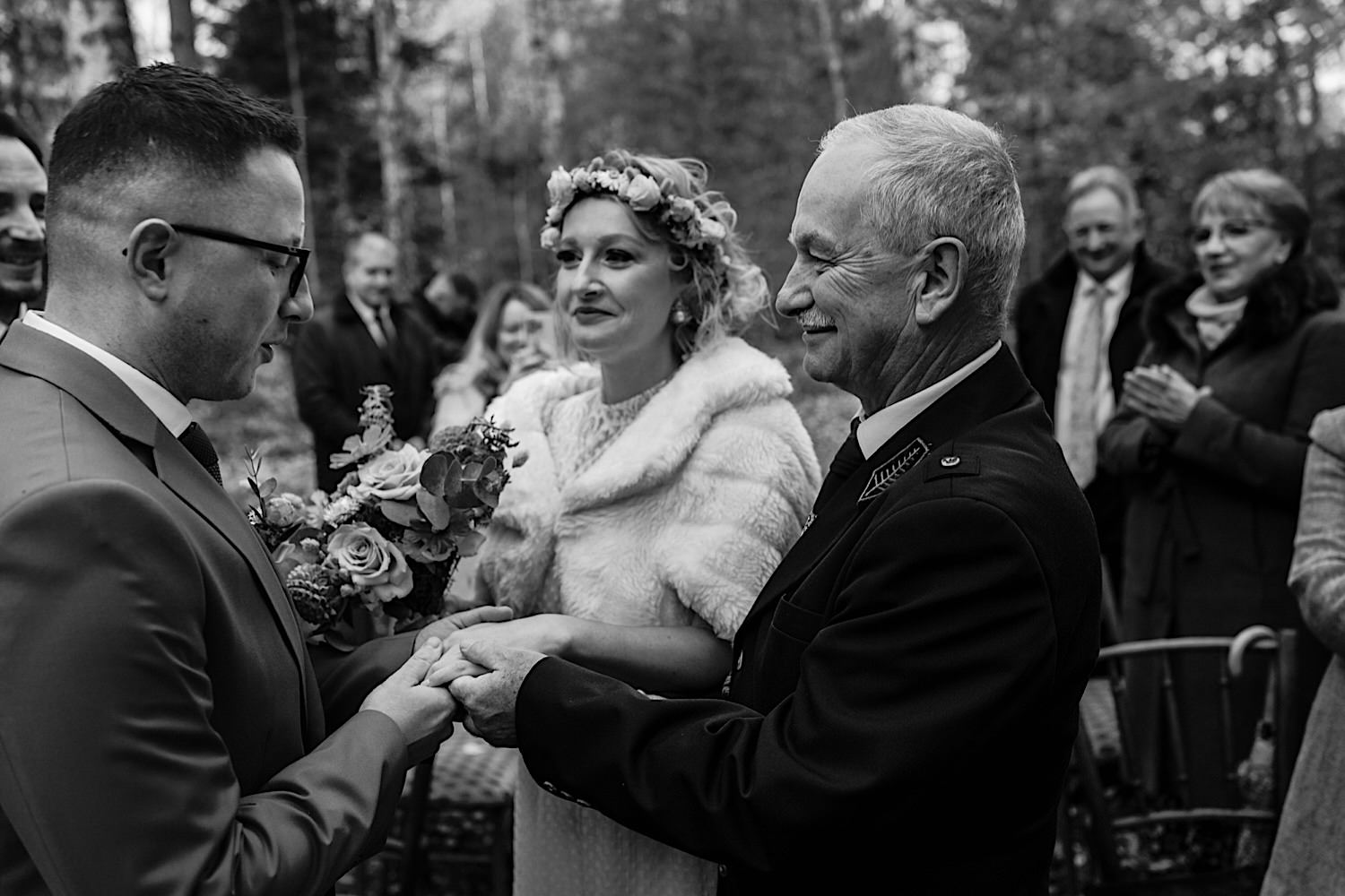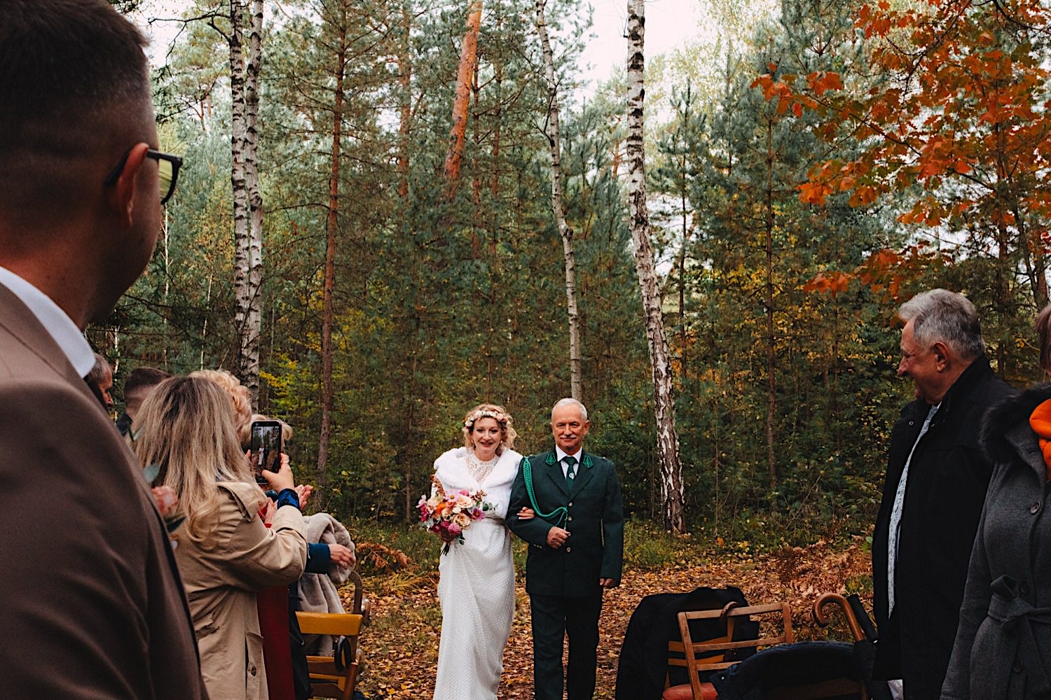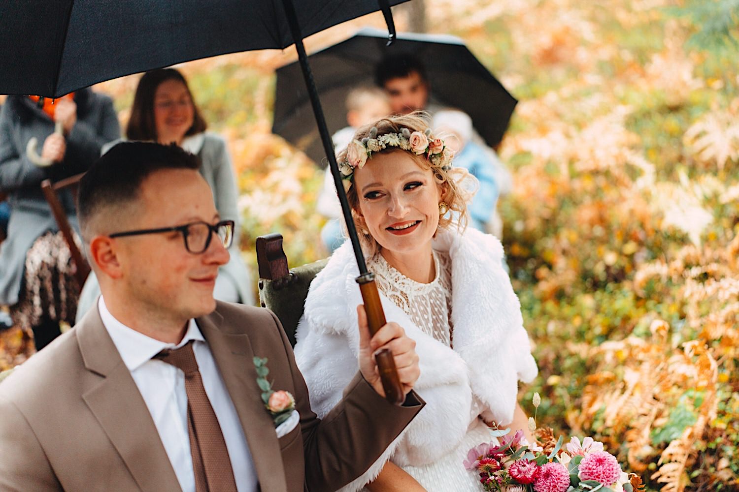 Dokładnie taki był też ich ślub. Intymny, totalnie po swojemu. Las zamiast sali, najbliżsi zamiast tłumów, jesień zamiast letnich banałów. Do tego lekki deszczyk, który stwierdził, że też chce być częścią historii, ale przynajmniej miał tyle kultury, żeby w niczym finalnie nie przeszkodzić.