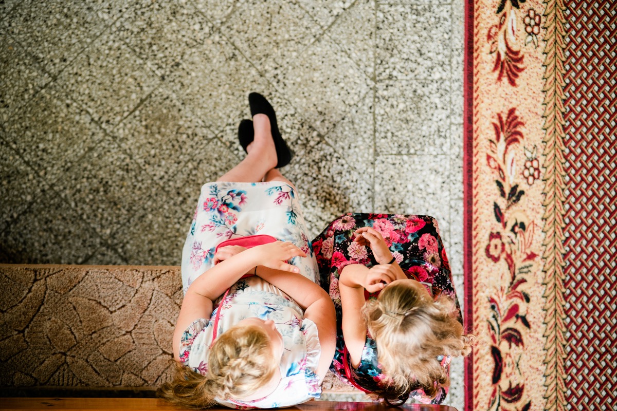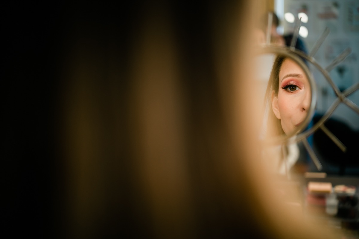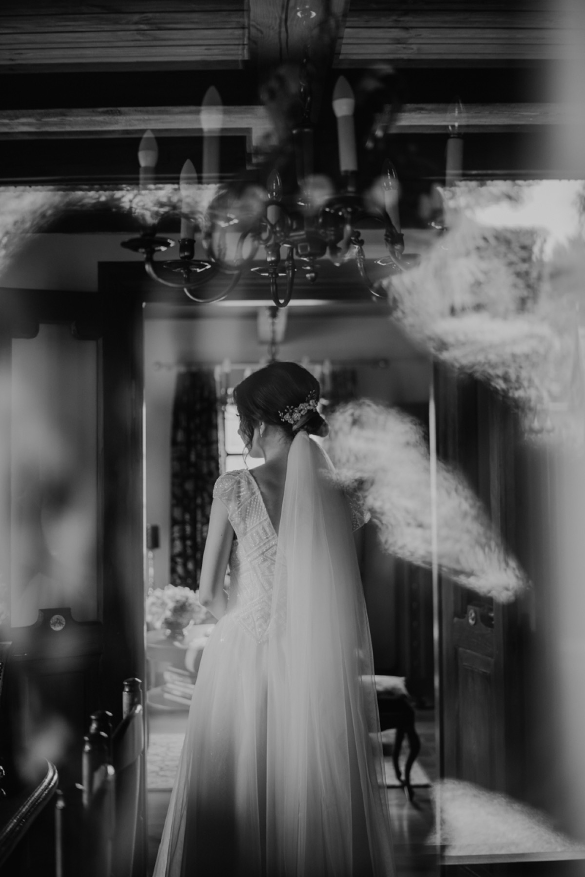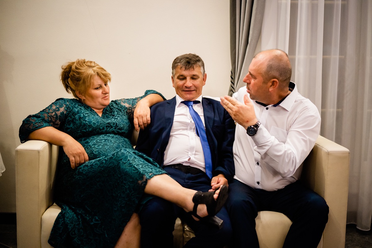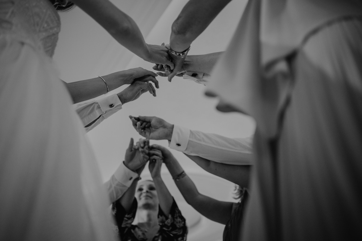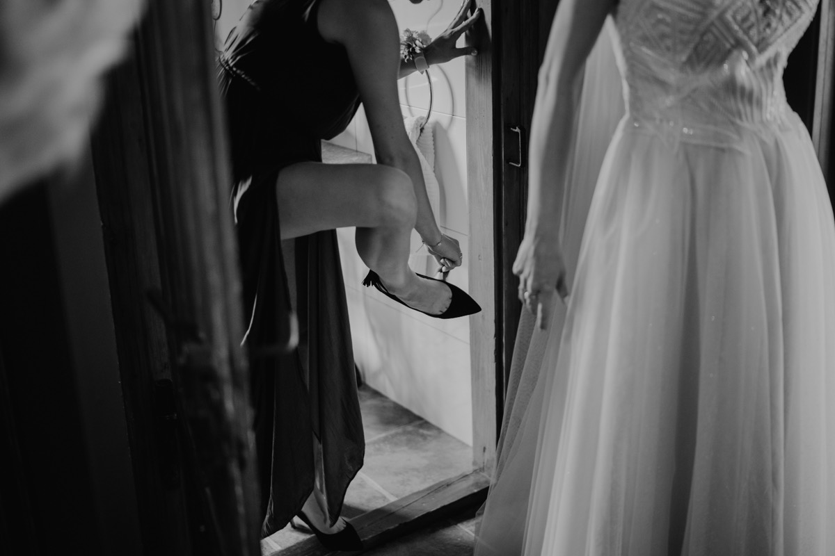 Przygotowania zaczęliśmy skoro świt, od mejkapu Ani w salonie urody – Kejt Maluje. Luźna, przyjazna atmosfera, pozwoliła nastroić się mega pozytywnie na resztę dnia i dać realną nadzieję na ciekawy reportaż. Kilka godzin odpoczynku i zawitałem u Szymona. Tam niemal cała rodzina, kilka pokoleń z uroczymi dziadkami na czele. Trochę śmiechów, ubierania, rozluźniaczy i Szymek gotowy! Do Ani udałem się ich mostkiem miłości. Mostek zarówno metaforyczny jak i dosłowny. Stworzonym przez nich samych, symbolizujący ich uczucie i łączący dwa podwórka. A jak wyglądały przygotowania u Ani? Tak jak jej dom – niezwykle klimatycznie, ciepło i rodzinnie:) Na miejscu okazało się, że świat jest mały. Mama Ani uczyła mnie języka niemieckiego w szkole, a na ścianie wśród wielu rodzinnych zdjęć wisiało to Ani i Szymona mojego autorstwa. Byłem fotografem na ich studniówce. Wiedziałem, że skądś znam te mordki 🙂 Trochę deszczu, kilka szybkich kanapeczek, ubieranie, dwa portrety i… przybył ten jeden jedyny. W asyście całej rodziny z pannami pod pachami 🙂 Zatrąbił – nie klaksonem, a prawdziwą trąbą! Przeciął wstęgę i ruszył do ukochanej. Następnie miał miejsce najbardziej wzruszający first look jaki miałem okazje zobaczyć. Łezka zakręciła się nie tylko narzeczonym ale chyba wszystkim obecnym. Jak dobrze, że mogłem schować się za aparatem i dalej udawać niewzruszonego twardziela 🙂