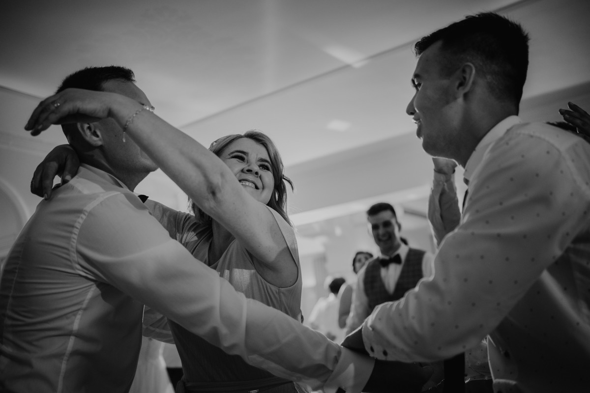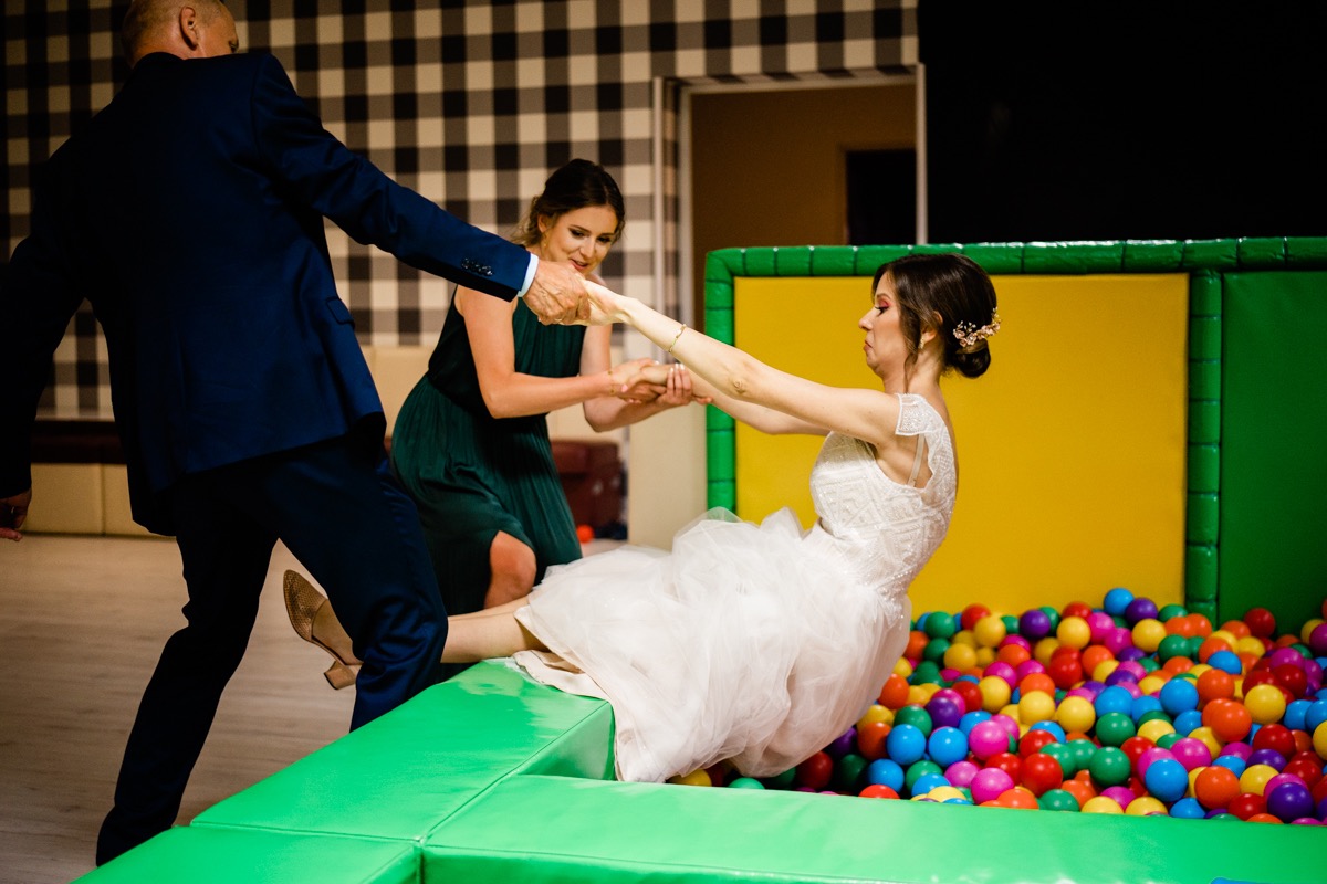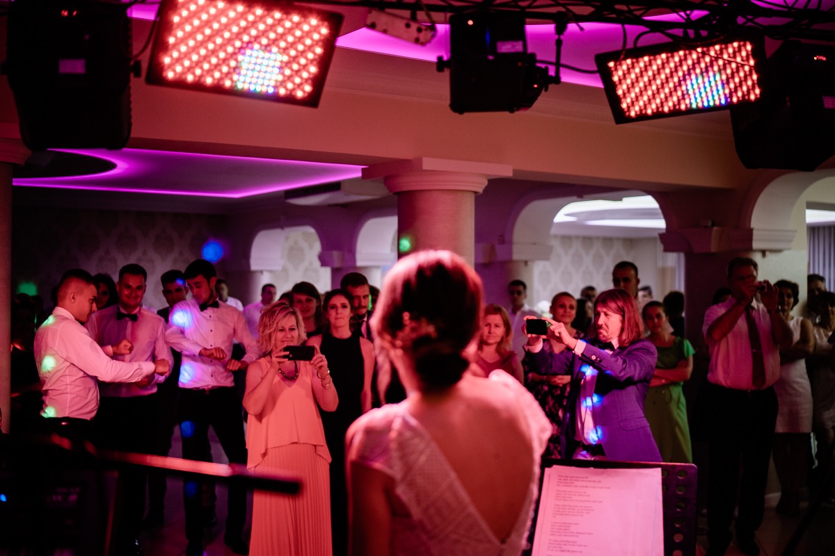 Ta odbyła się w Hotelu Antoni w Tomaszowie Lubelskim. Przy muzyce zespołu Quantes. O wystrój i klimat zadbały FZ – dekoracje ślubne, a słodkości dostarczyła ulubiona Ciastkarnia Paluszyński. Jaka była zabawa weselna? Koncertowa! Metaforycznie i dosłownie. Dzikie pląsy, których jeden staw skokowy nie wytrzymał 🙁 Nurkowanie Ani w basenie – z dwóch możliwych na szczęście dla sukni wybrała ten z kulkami 🙂 i Ważny rodzinny koncert z Panna Młodą jako wokalistką na czele. I wreszcie nie przedłużając… zapraszam do oglądania 🙂