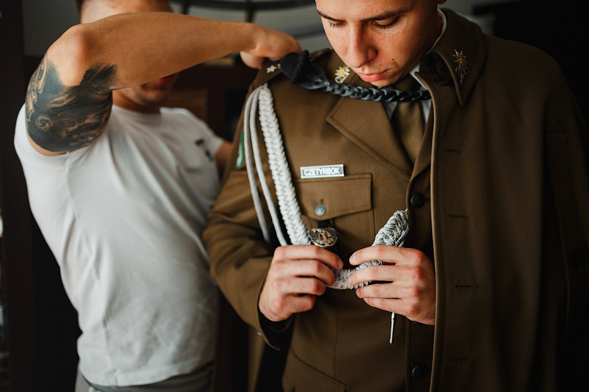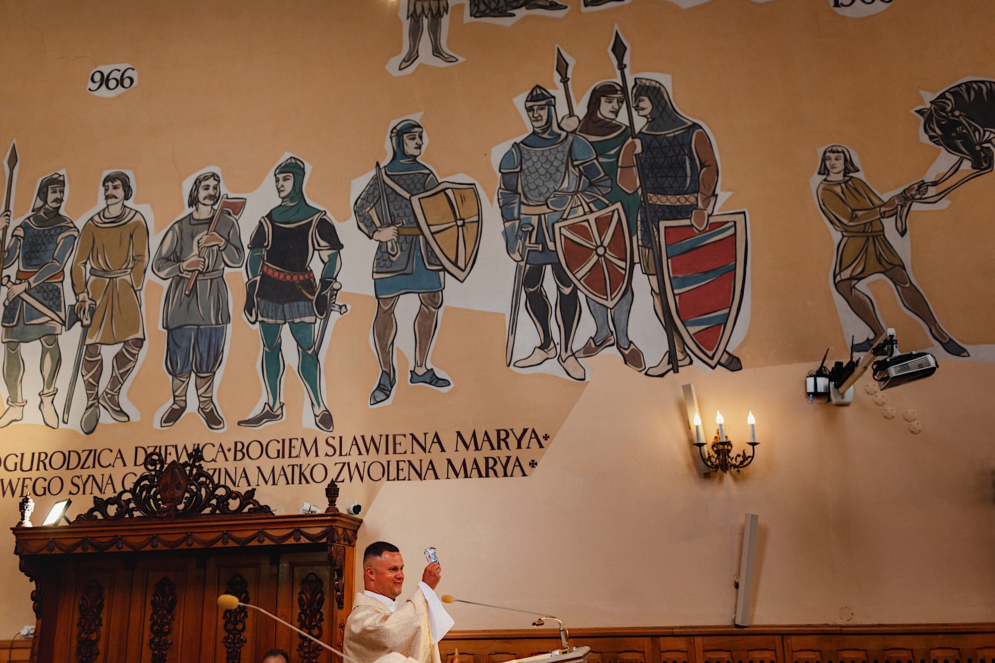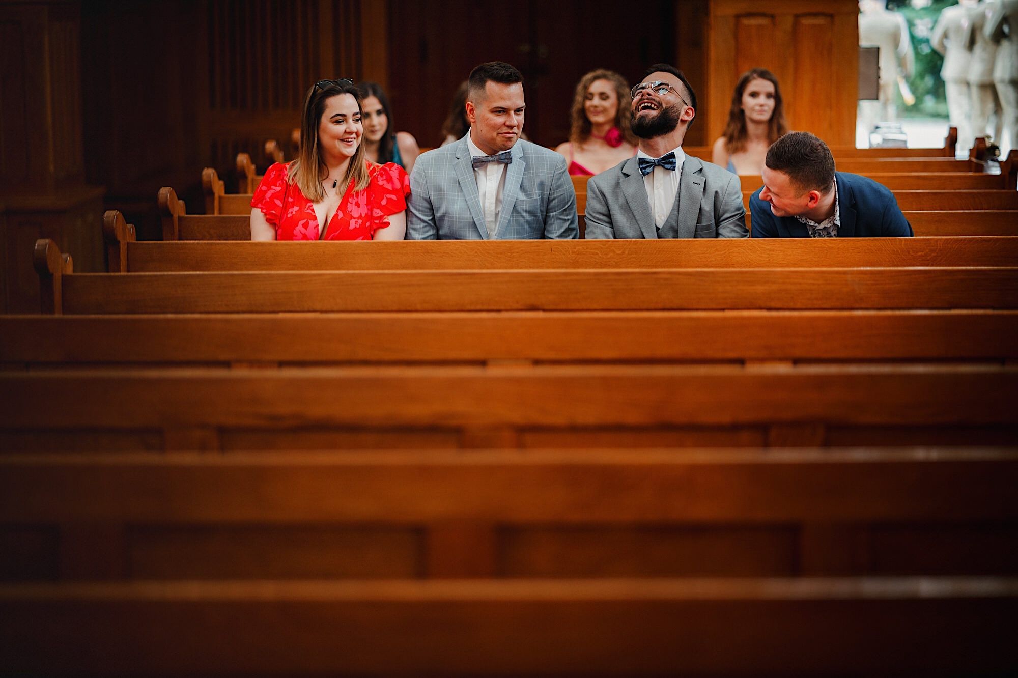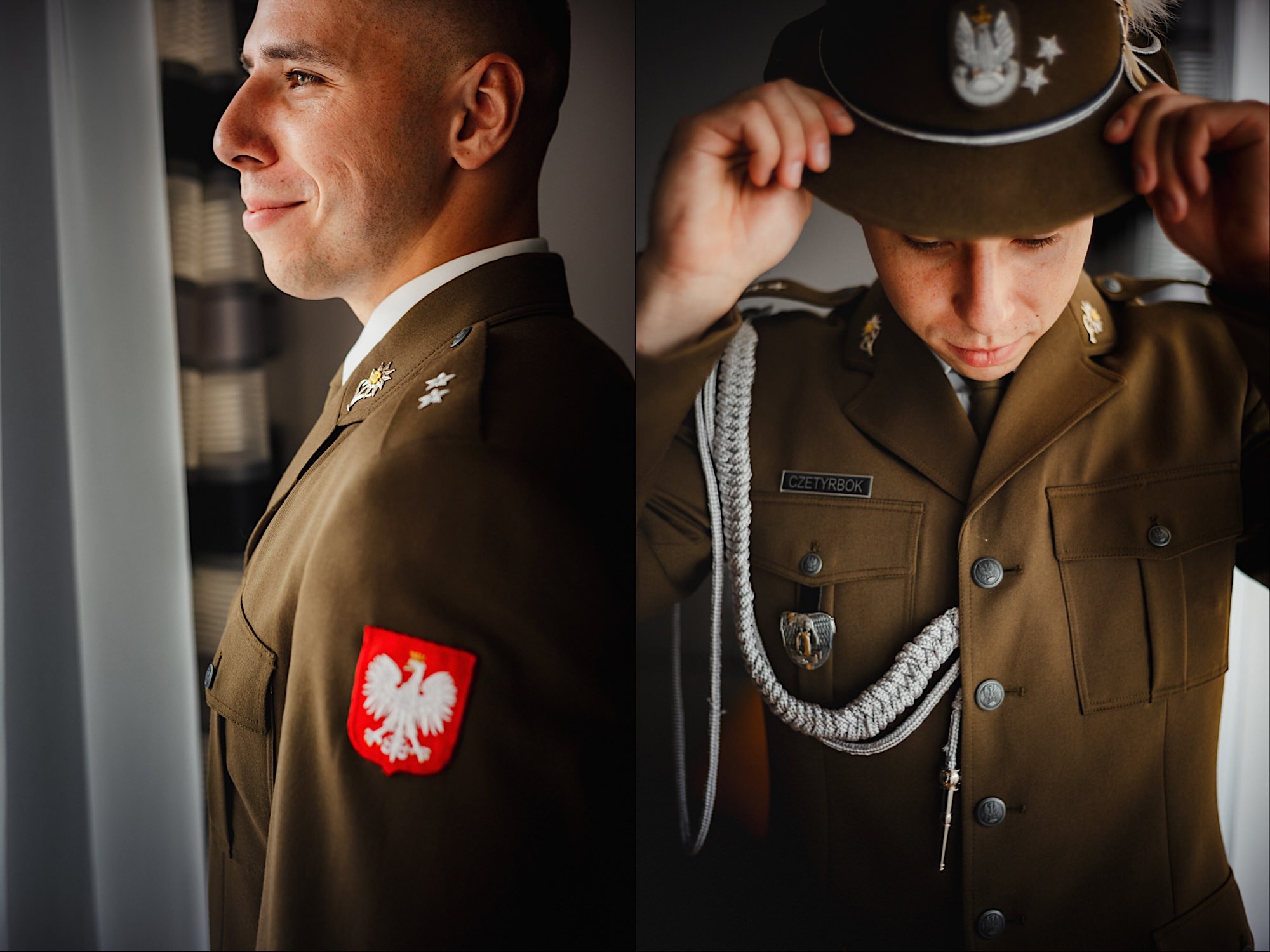 Ta odbyła się w Parafii Wojskowo – Cywilnej pw Matki Bożej Królowej Polski w Rzeszowie. Sebastian zobaczył Igę dopiero przed Ołtarzem w towarzystwie wielu mundurów i swoich łez wzruszenia. Piękne to było! Uwielbiam takie kontrasty. Wspominałem już, że to twardziel z dobrym i wrażliwym serduszkiem? Taki jaki początek, taka cała msza. Uśmiechy na zmianę z chwilami wzruszenia. Cudo! A po ceremonii…