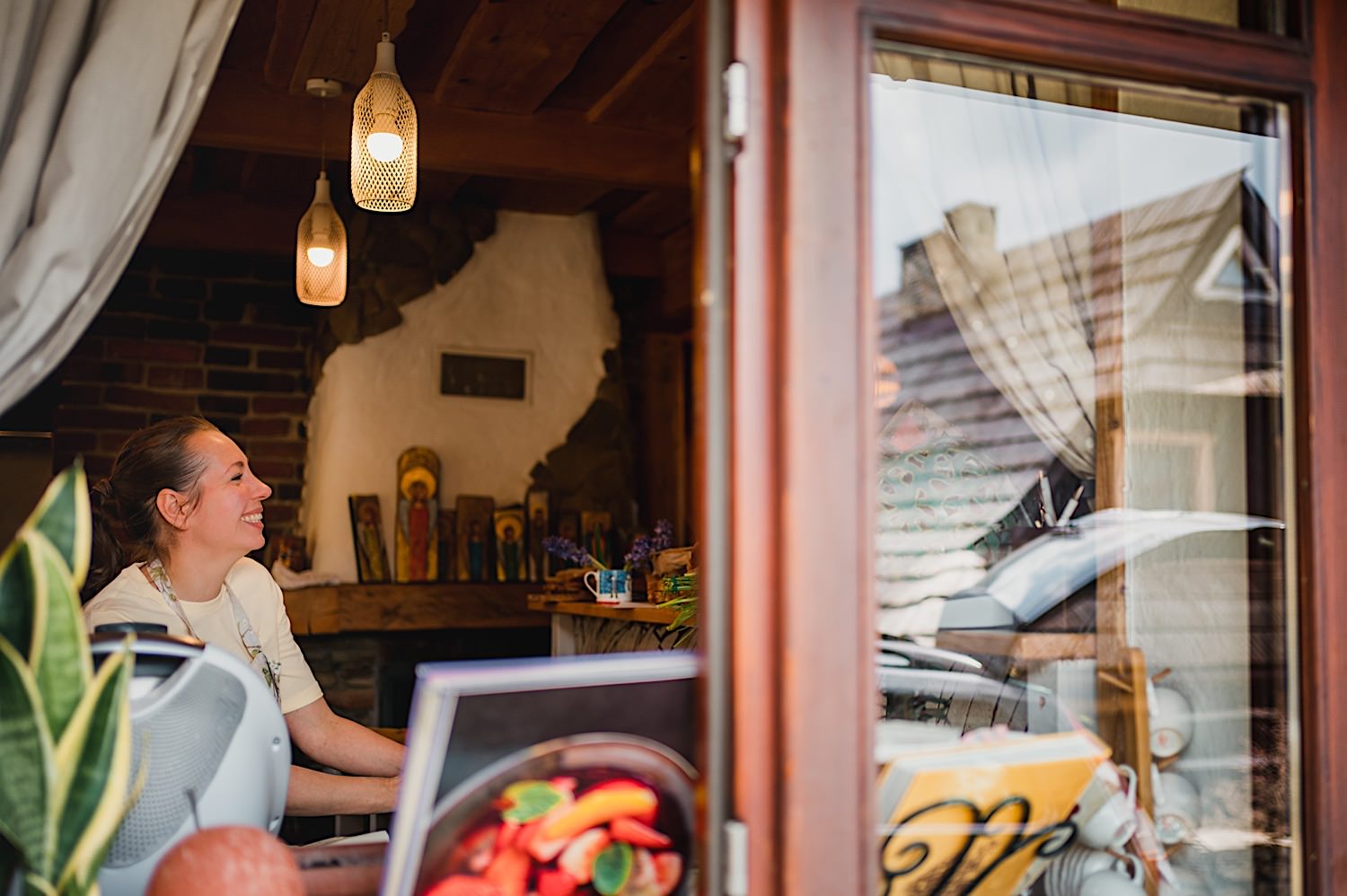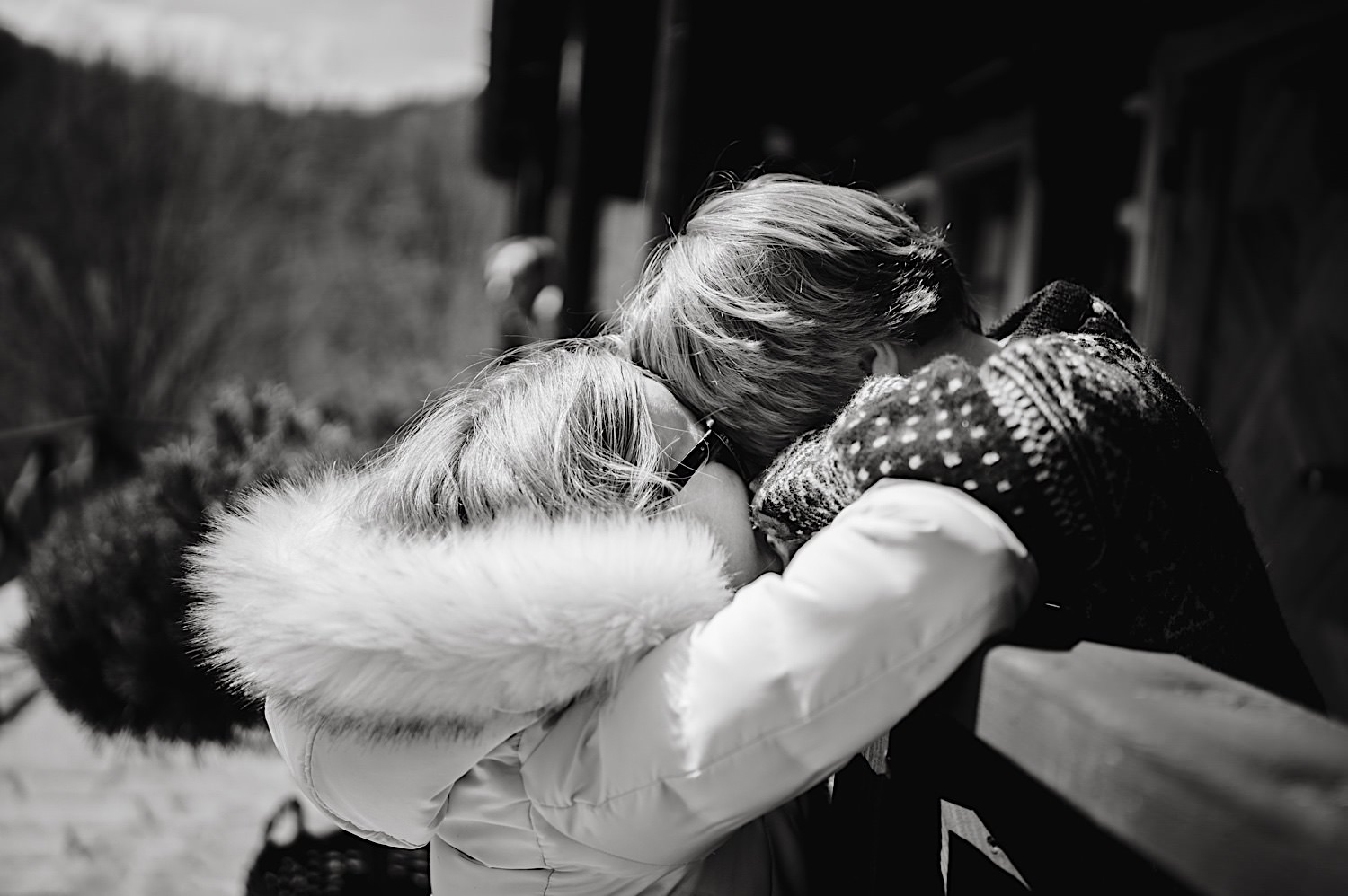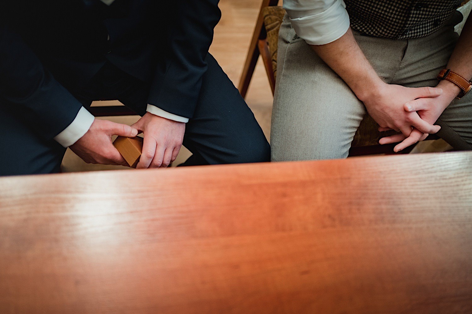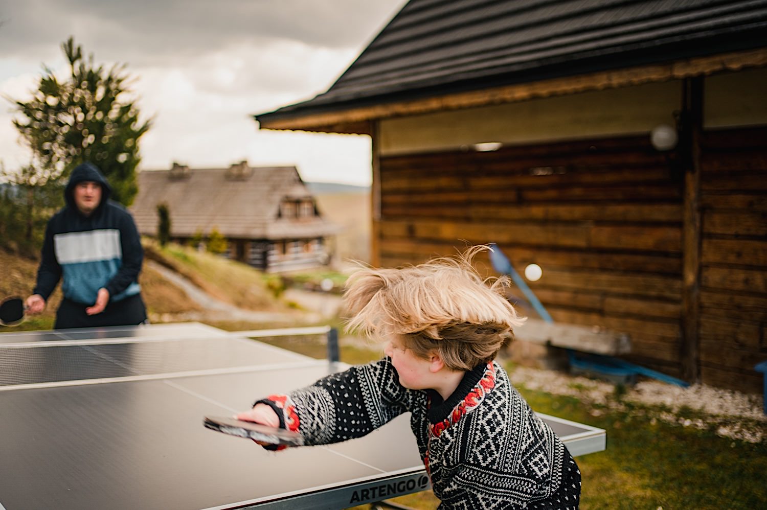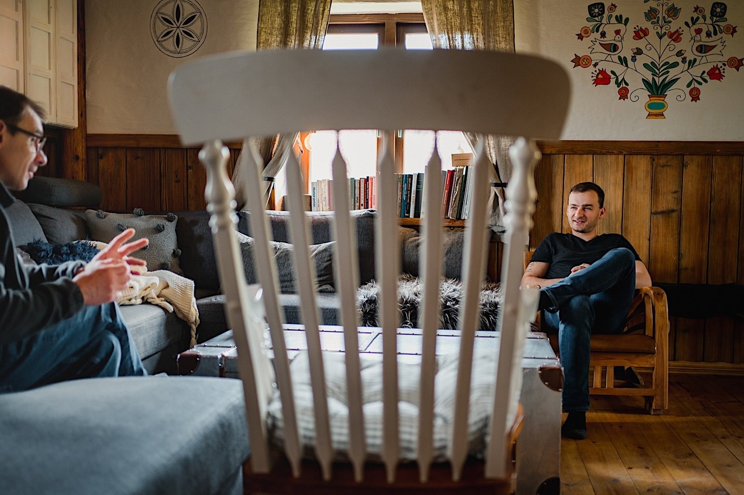 Na końcu (dosłownie!) długiej i krętej drogi ujrzałem bramę Maciejewki. Z daleka czuć niepowtarzalny Bieszczadzki klimat, który stworzyli niezwykle uśmiechnięci, gościnni i pełni pasji właścieciele. Zewsząd czuć rodzinną, przyjazną atmosferę. Po pokonaniu kilku (nastu) schodków spotkałem roześmianą i wyluzowaną bandę. Jeszcze bez dwójki najważniejszych bohaterów. Sporo rozmów, żartów, rodzinnej rywalizacji w tenisa stołowego (przecież nie napiszę ping-ponga we wpisie o absolwencie AWFu!). Ola z Markiem chcieli mieć lepsze wejście dlatego kazali na siebie trooooszkę poczekać. Takie też mieli 🙂 Ekspresowe ubieranie i w drogę do Urzędy Stanu Cywilnego w Baligrodzie. Tam przemiła Pani, która poprowadziła ceremonię w świetnej atmosferze 🙂 Obrączki na palce, kilka formalnych fotek i powrót do Maciejewki. Na miejscu czekała już rodzina i najbliżsi przyjaciele. Toast, emocjonalne życzenia, wegetariański pyszny obiadek, chwila strachu (chciał mnie zjeść przeuroczy pies, który jak zobaczył gościa z aparatami to pomylił mnie chyba z transformersem) i korzystając z pięknych i malowniczych okoliczności ruszyliśmy na 30 minutową sesję. Liska na sesji już miałem, tym razem przyszła pora na Żubry i to nie te na butelce, a prawdziwe! Troszkę przytulania, wygłupów, biegania i powrót do gości, którzy czekali już przy grillu. A tam jak przez cały dzień. Na luzie, bez zbędnej napinki, z wszechobecnym uśmiechem. Wyczekałem pierwszych tańców i na tym mój udział w tym pięknym i wyjątkowym wydarzeniu się skończył.